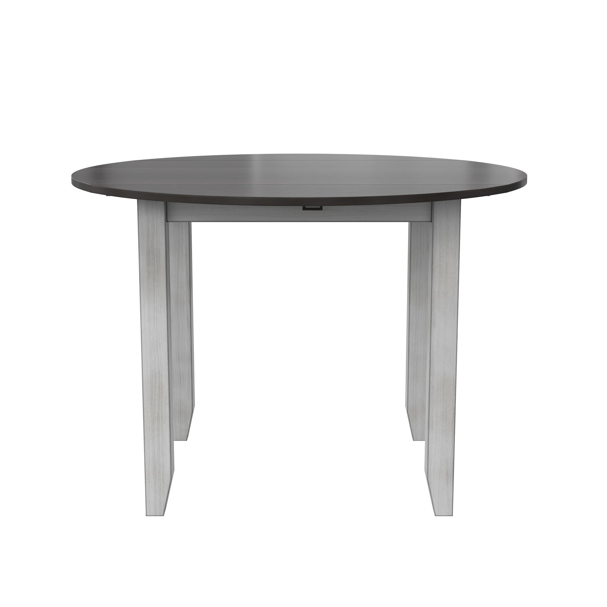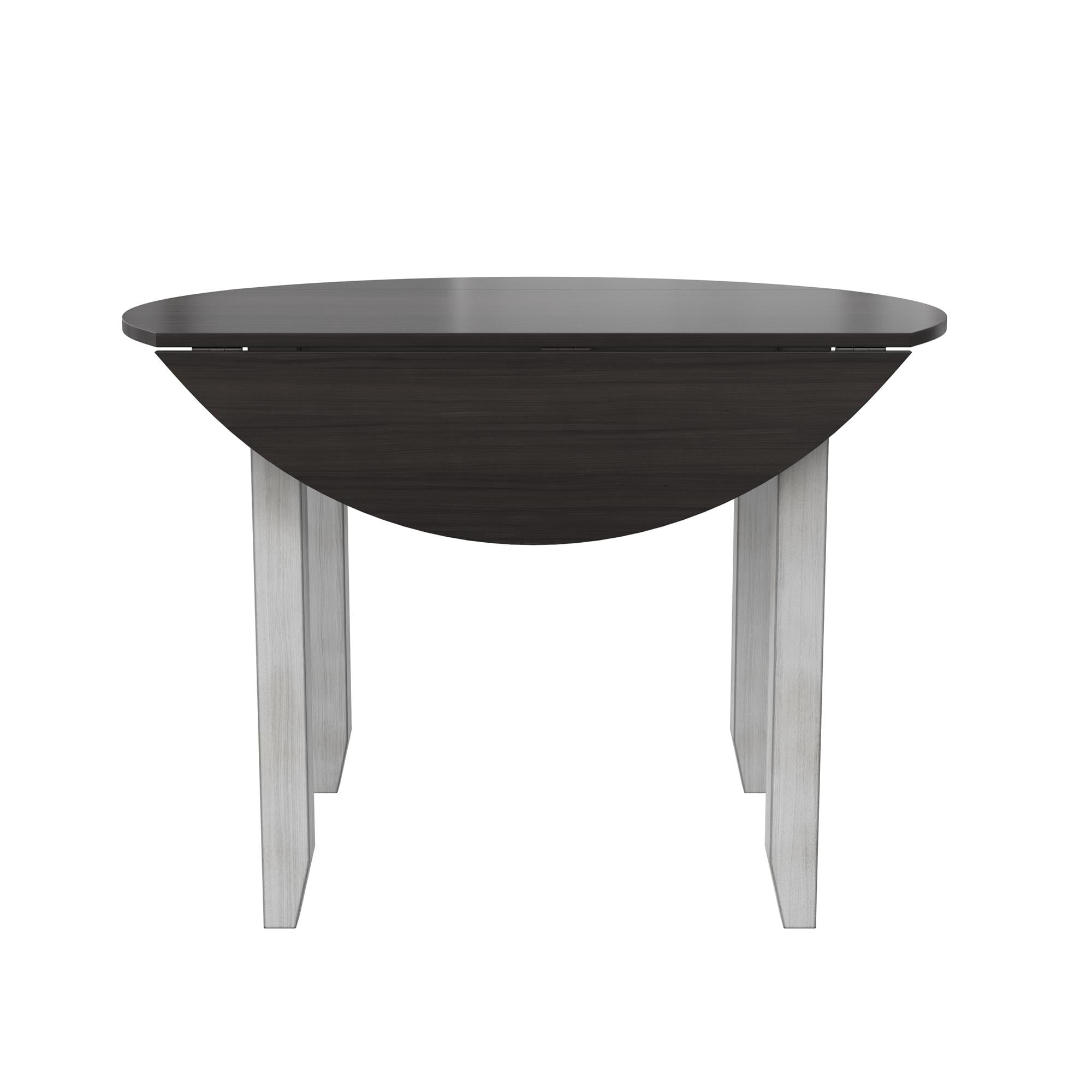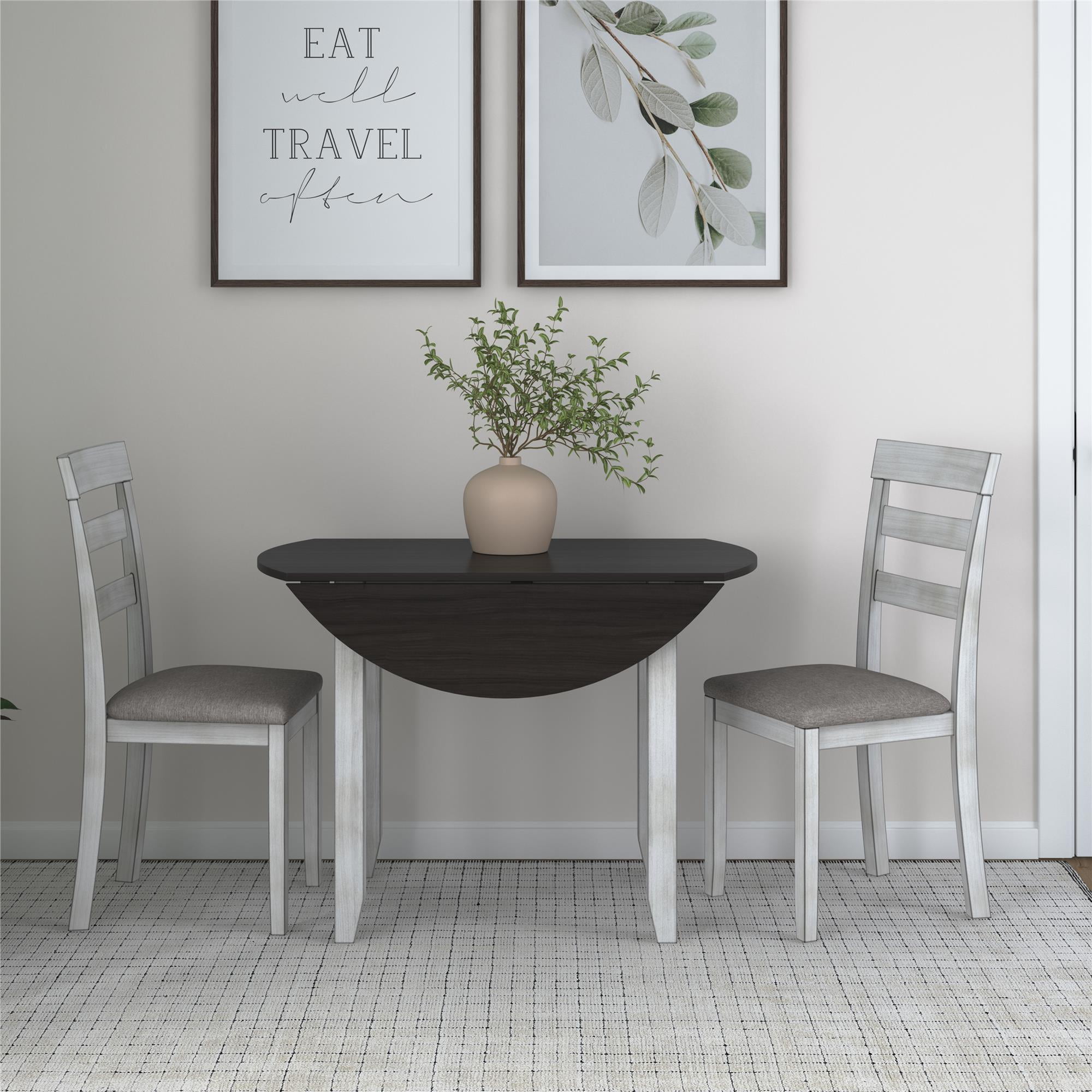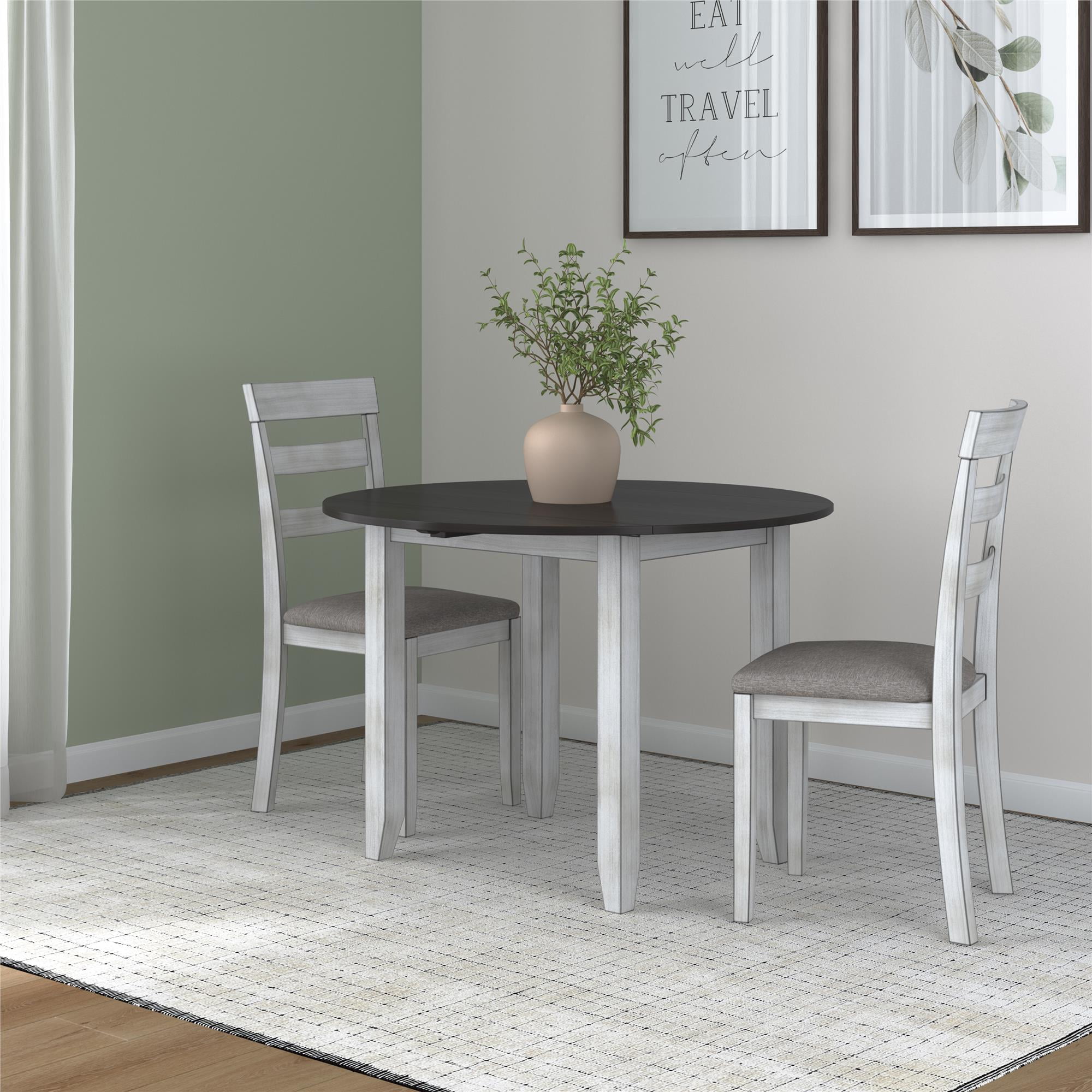 DHP Jersey 3-Piece Drop Leaf Wood Dining Set with Round Table and 2 Chairs, Brown/Oyster White Shell
