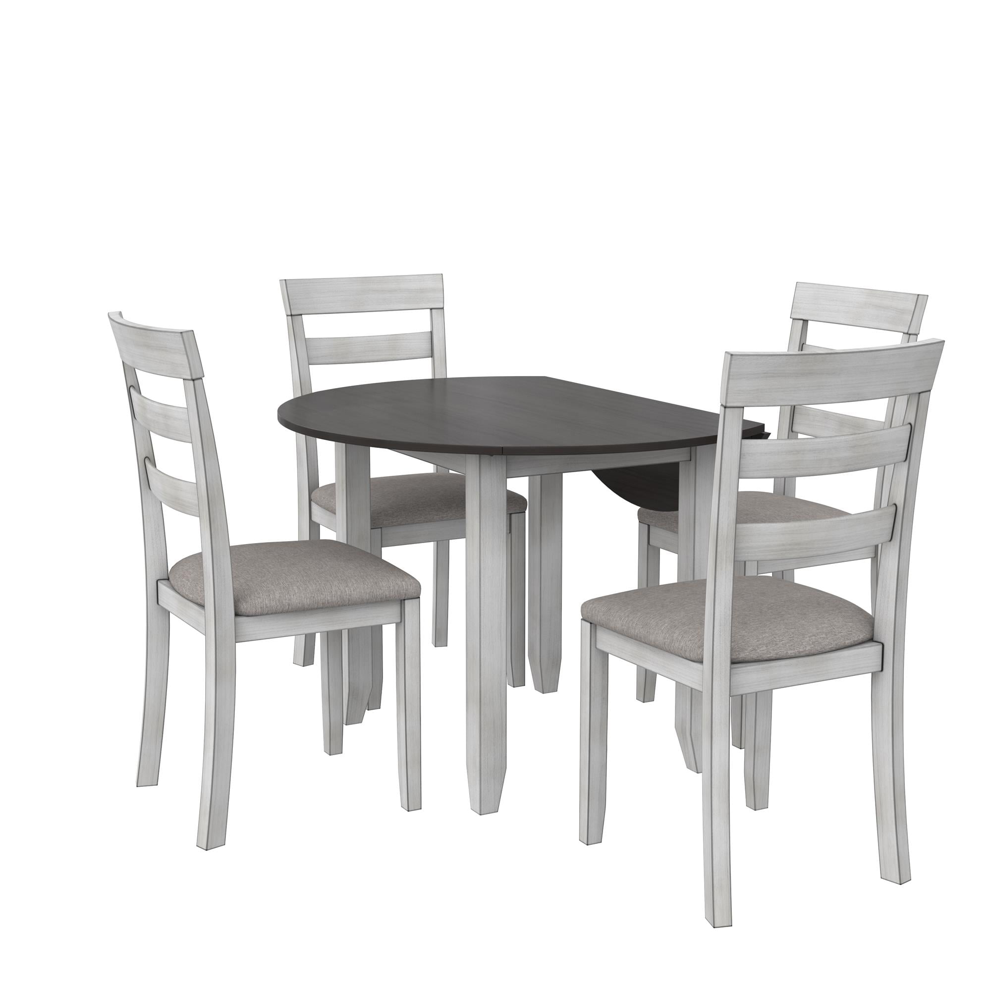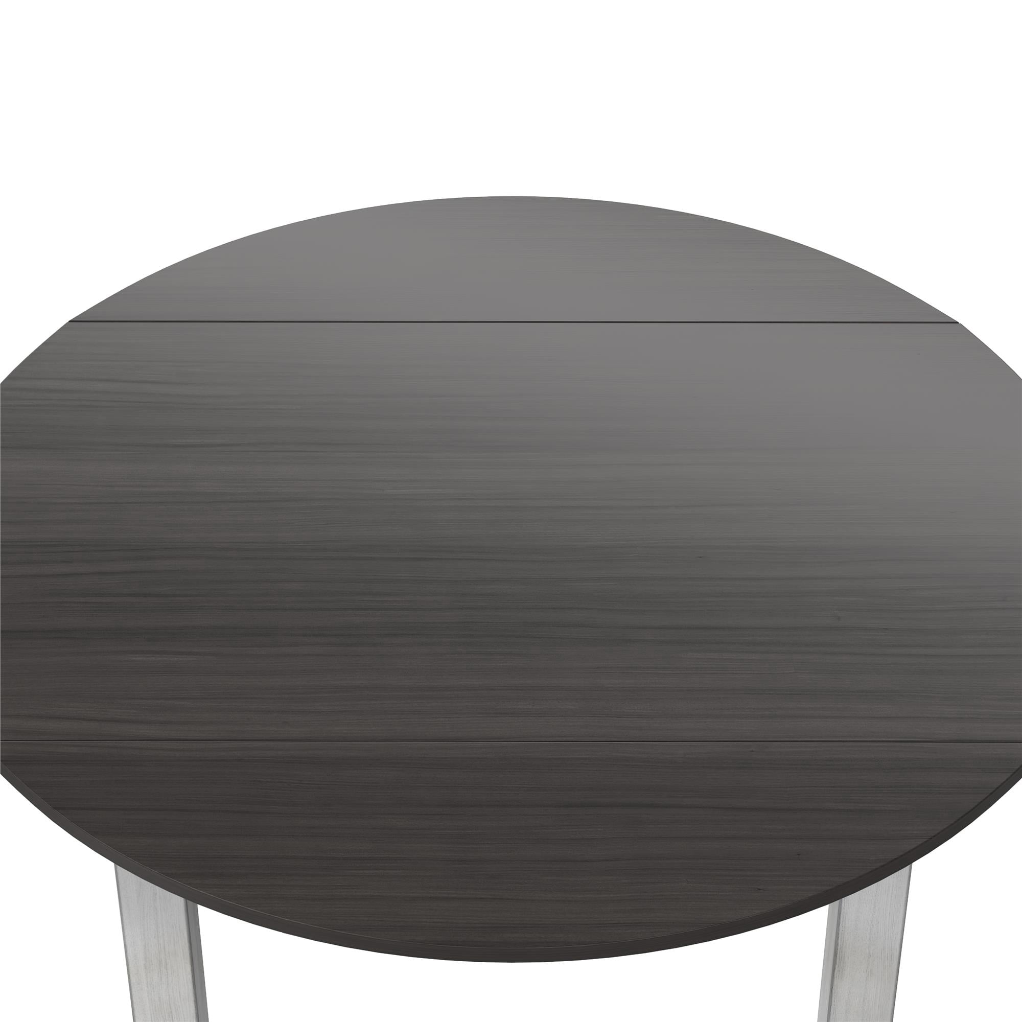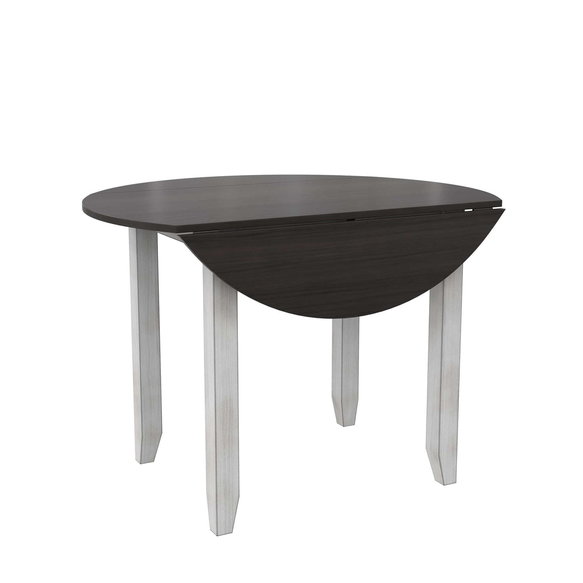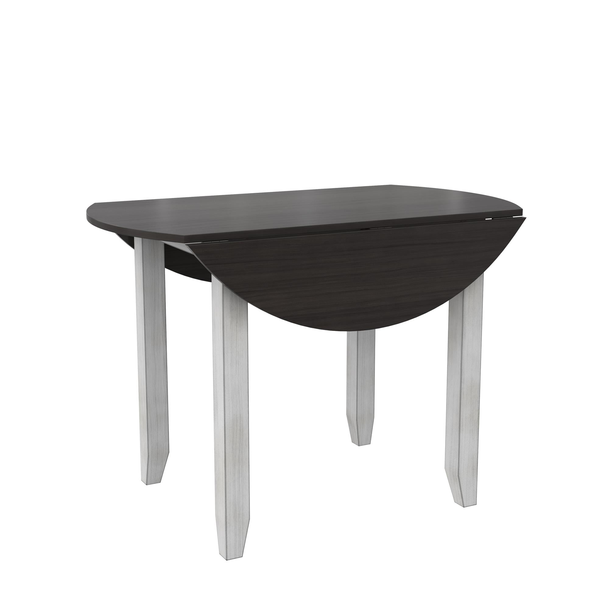 DHP Jersey 3-Piece Drop Leaf Wood Dining Set with Round Table and 2 Chairs, Brown/Oyster White Shell