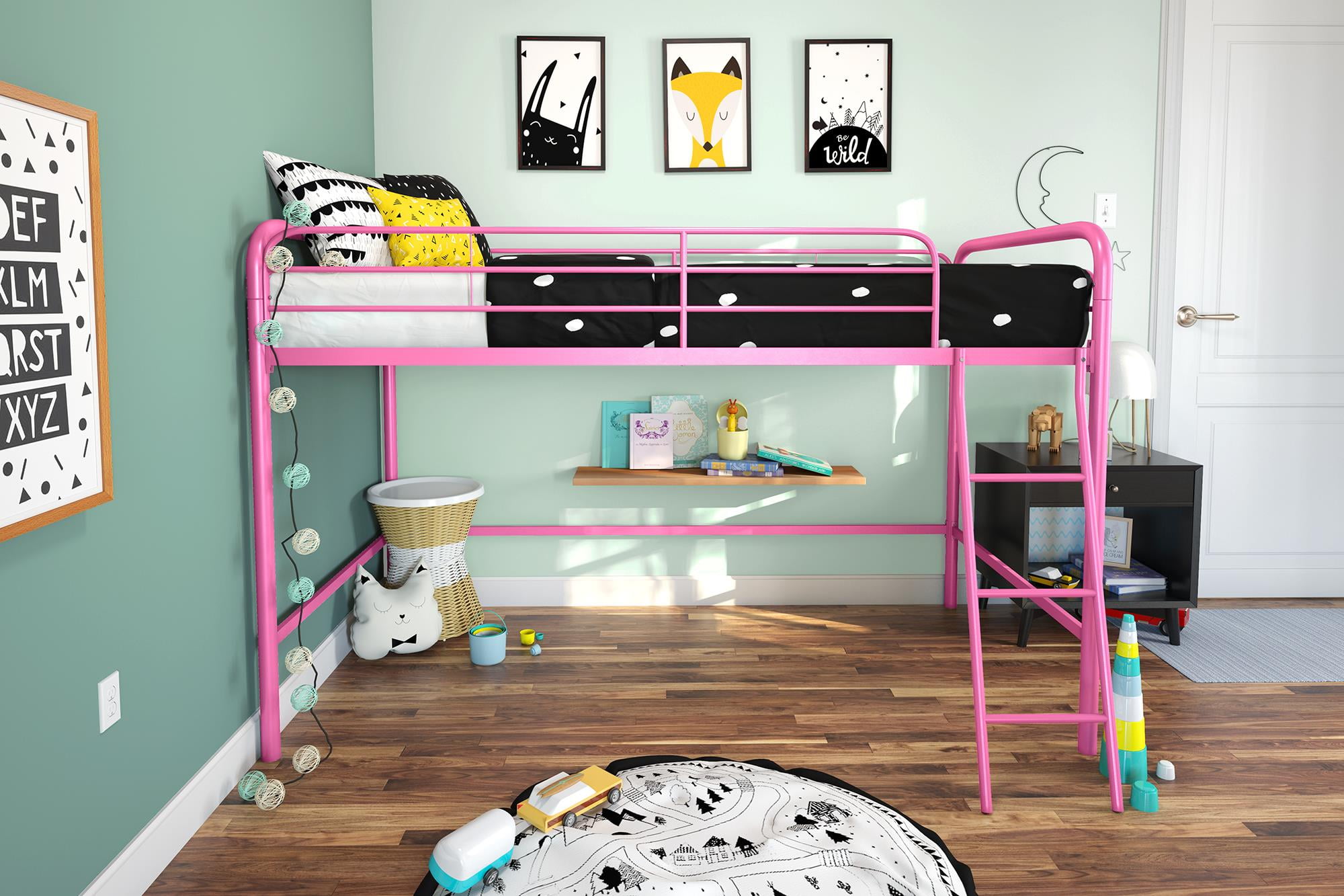 The DHP Jett Junior Twin Metal Loft Bed is the perfect space-saving solution for your home. This loft bed is versatile and multifunctional with an under-bed area that can be used to create a playroom or a study area for your child. The frame is made out of sturdy metal, which makes it durable and solid through years of use. What’s more, the bed includes metal slats which means there is no need for an additional foundation. Children must be at least 6 years old to use the top bunk.