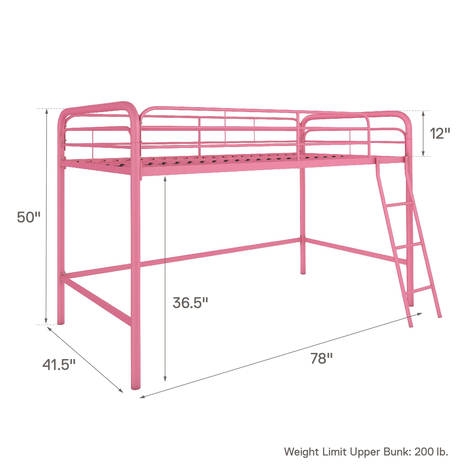 DHP Jett Junior Twin Metal Loft Bed, Pink