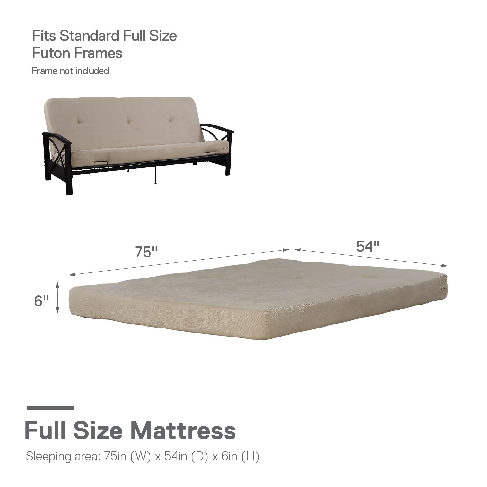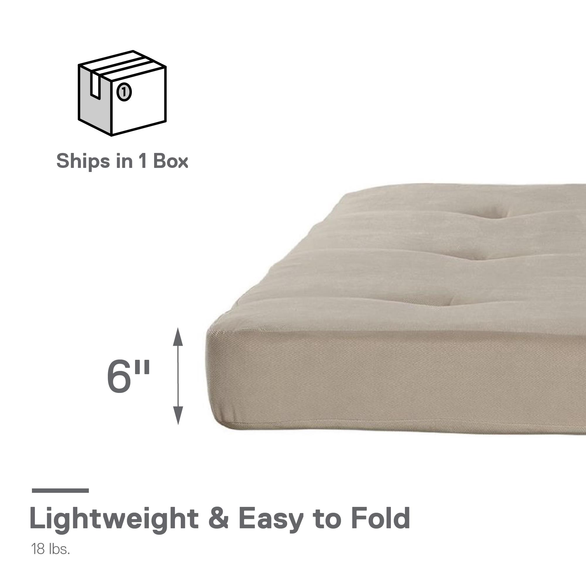 DHP Kali 6-inch Futon Mattress with Tufted Cover and Recycled Polyester Fill, Full, Tan Microfiber (Frame not Included)