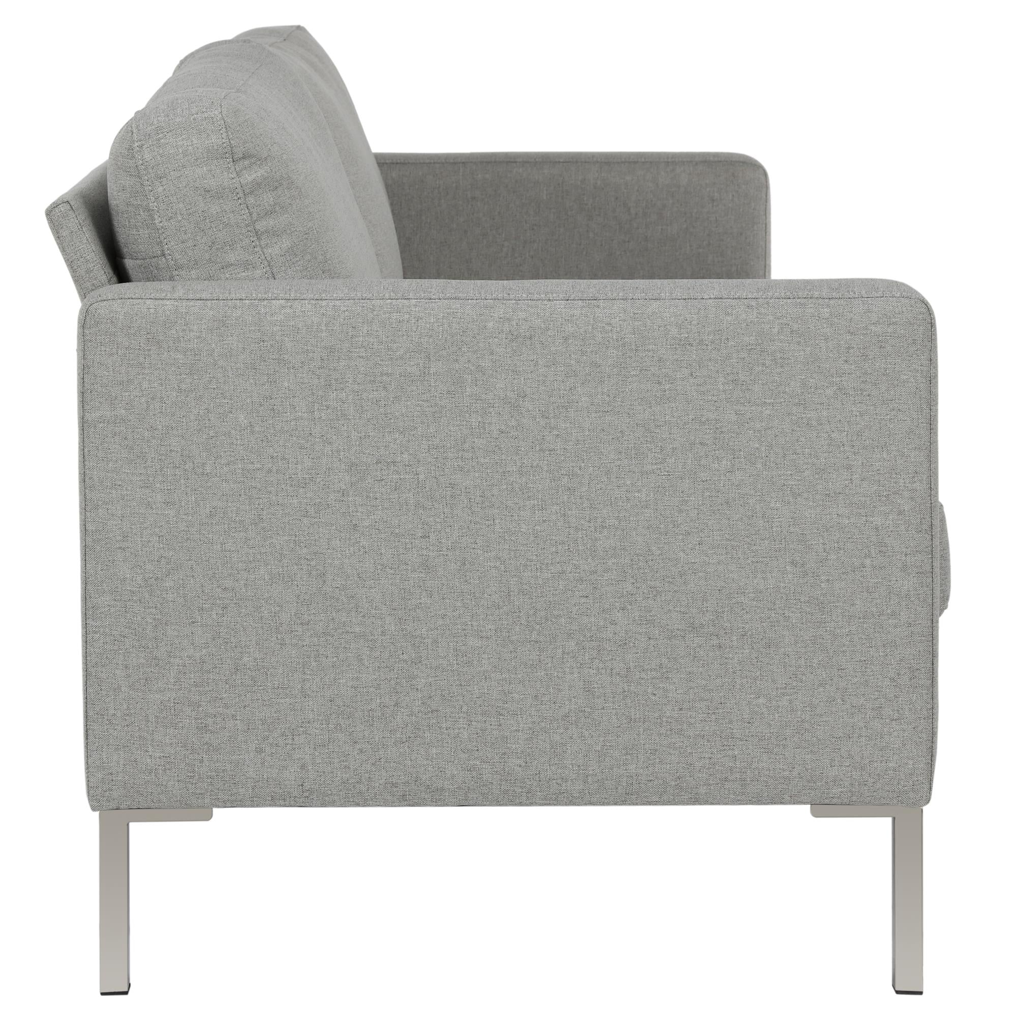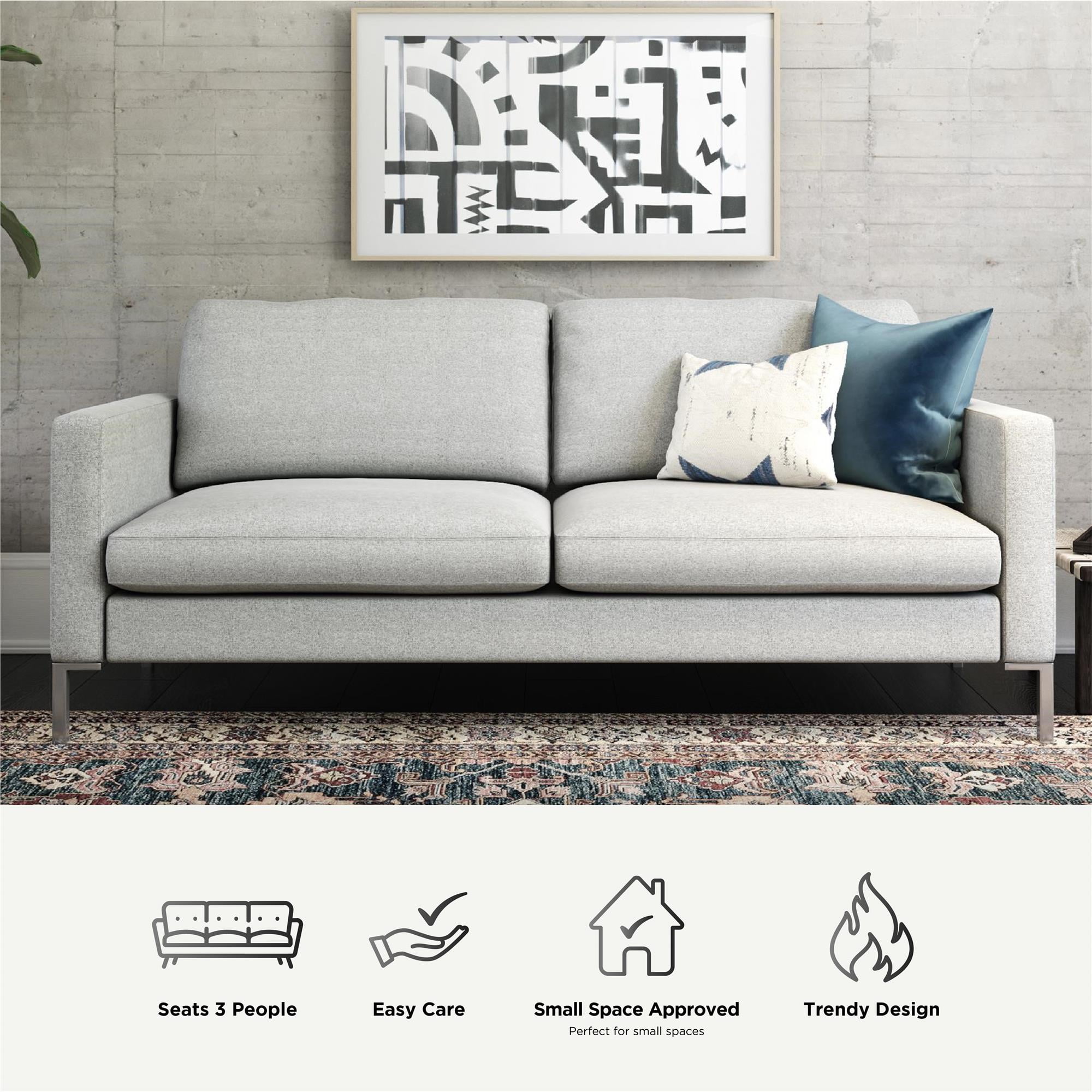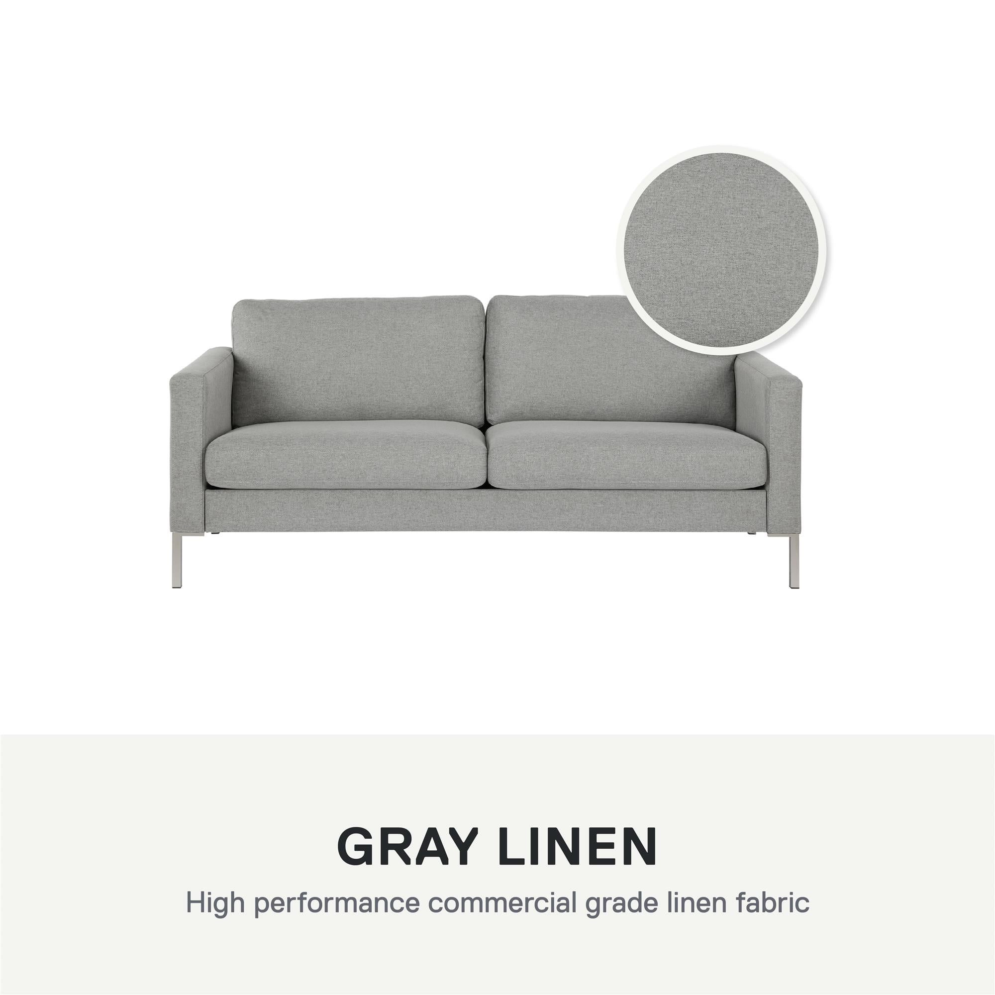 PLUSH PADDING: Our condo sofa features a cozy backrest and 6-inch-deep seat cushions filled with high-density foam that retain their shape. Designed to foster everyday comfort in your living room, the upholstered couch projects modern style perfectly UNDENIABLE SUPPORT: The 3-seater sofa includes pocketed coil layered seating, a steel back frame, and stainless-steel legs to make sure that you and your guests are always fully supported without worrying about sagging or sinking down in your seat MULTIFUNCTIONAL ADVANTAGE: Aside from residential usage in your home, this contemporary couch carries a versatile look allowing for adaptable use across various industries including education, hospitality, or commercial office space settings LOW MAINTENANCE: Covered in High Performance 905 Wind Chime linen look fabric that is water and stain resistant, the upholstery has undergone 100,000 double rub testing for material durability and is easy-to-clean using water-based cleaning agents