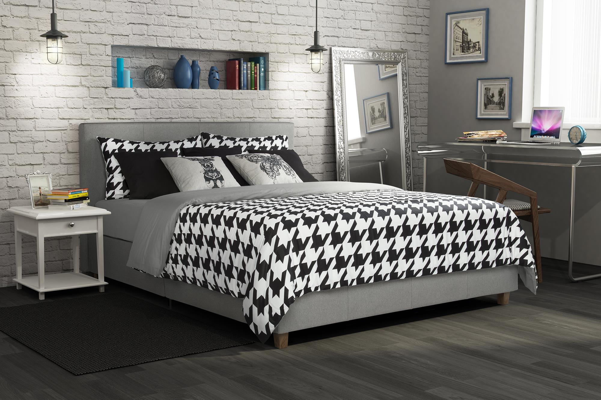 DHP Maddie Upholstered Linen Queen Bed, Gray