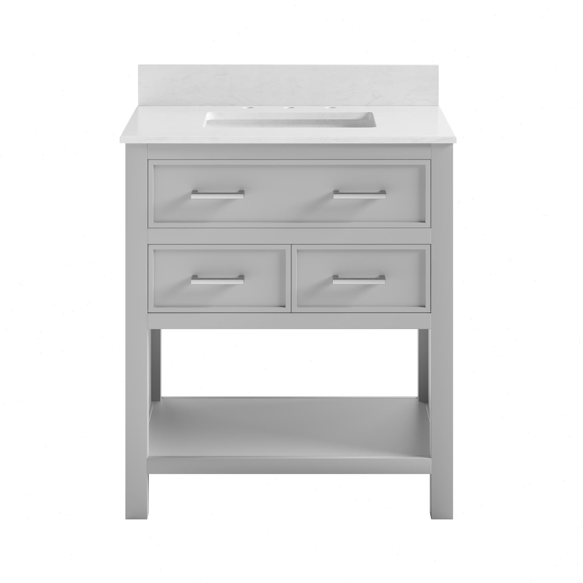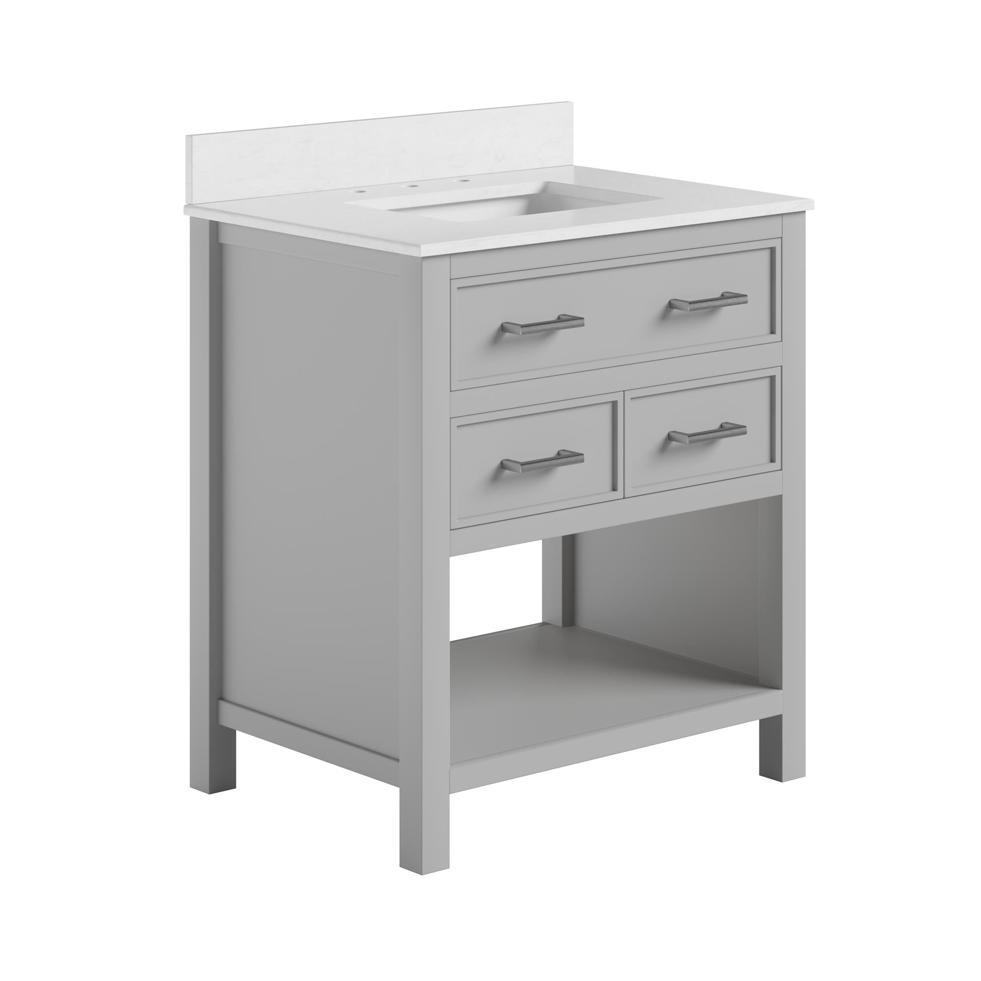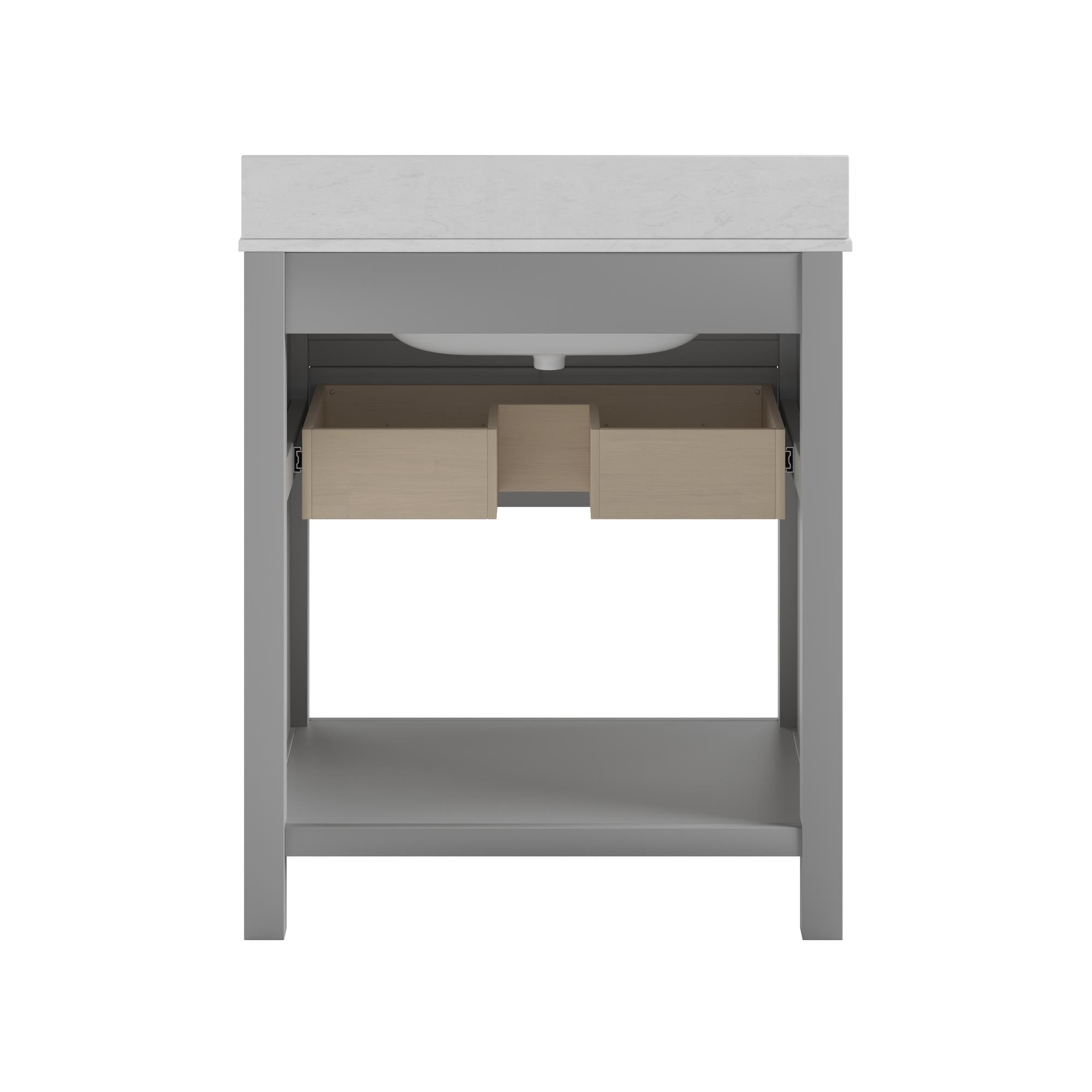 DHP Maine 30 Inch Bathroom Vanity with Carrera Countertop and Rectangular Ceramic Sink, Gray/Silver