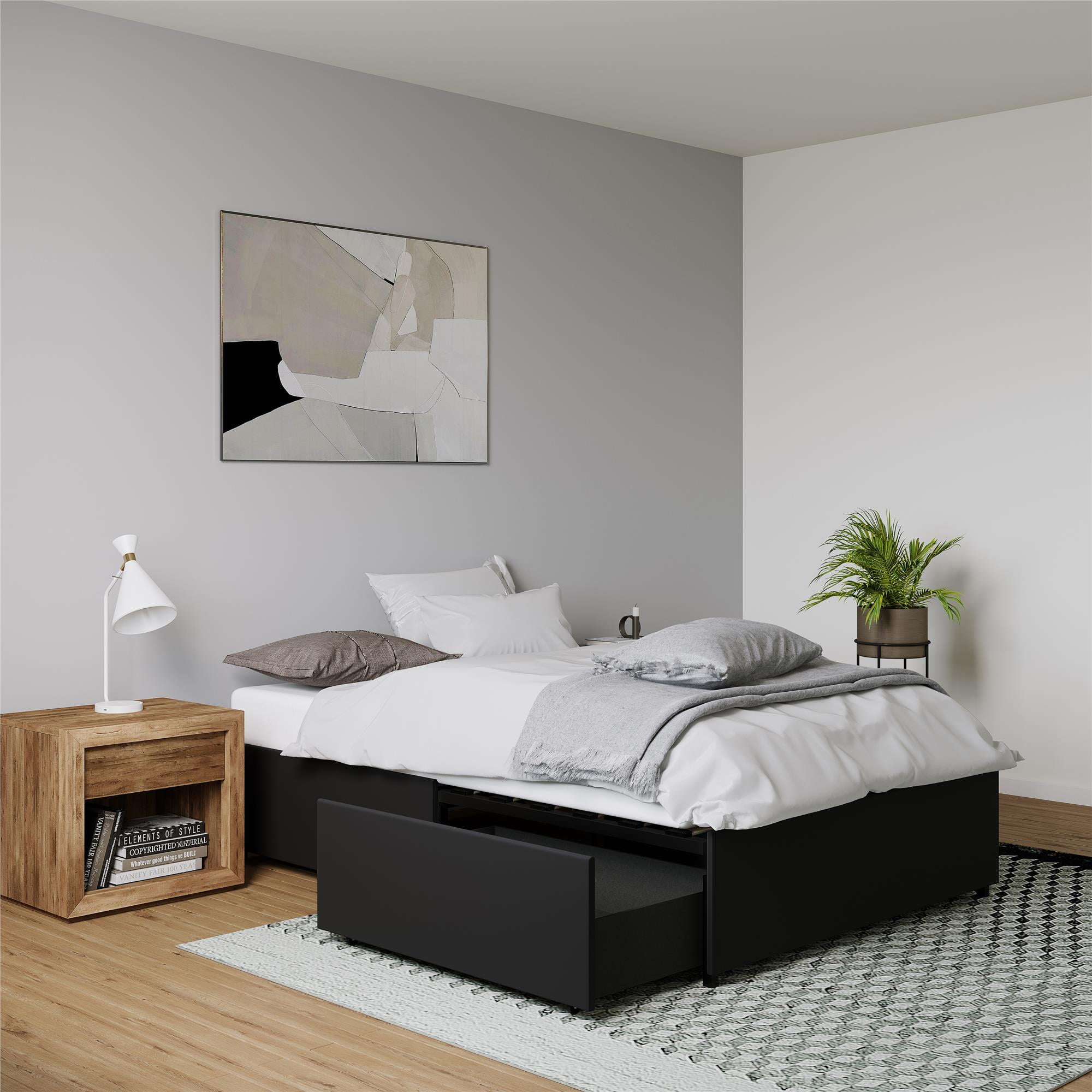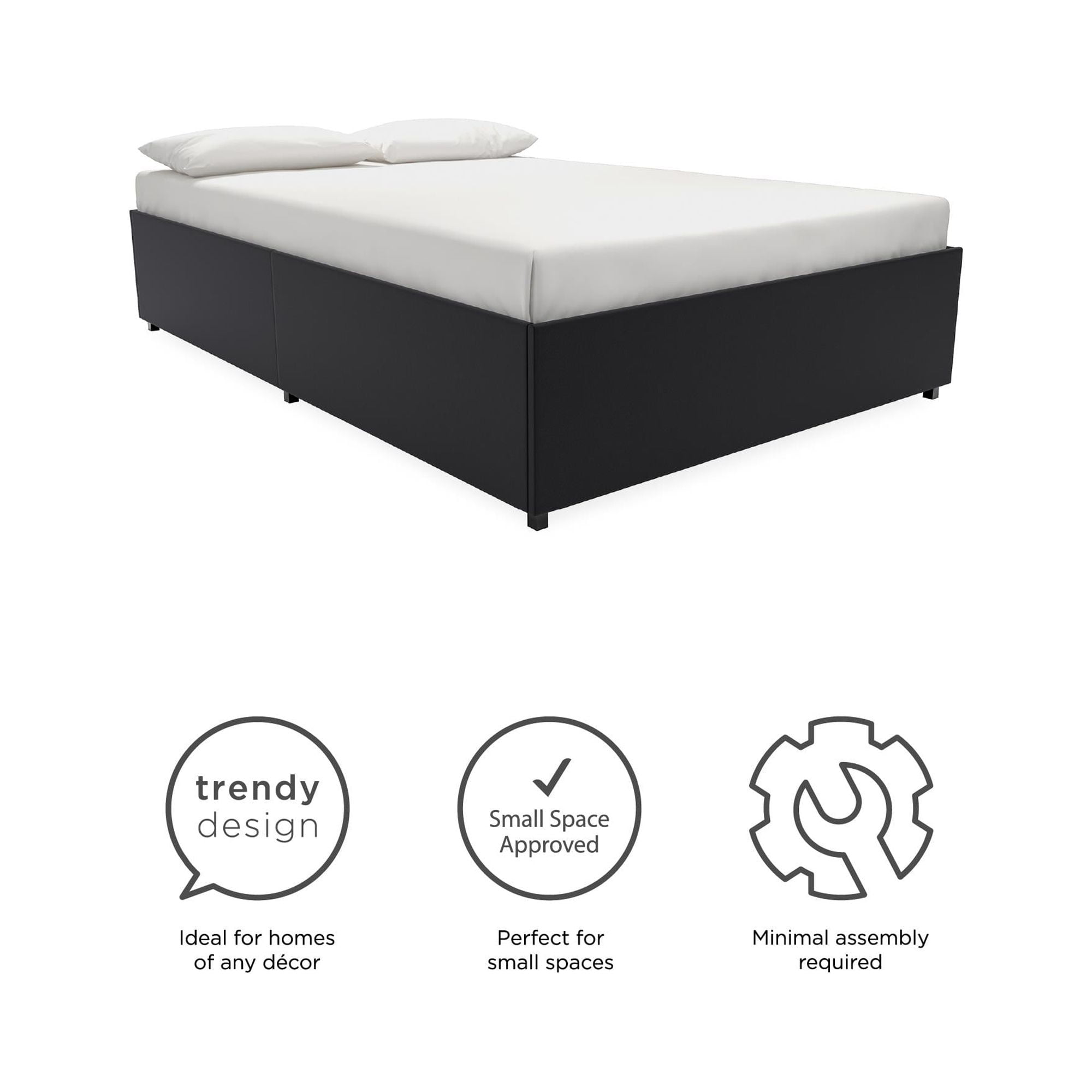 DHP Maven Platform Bed with Storage, Full, Black Faux leather