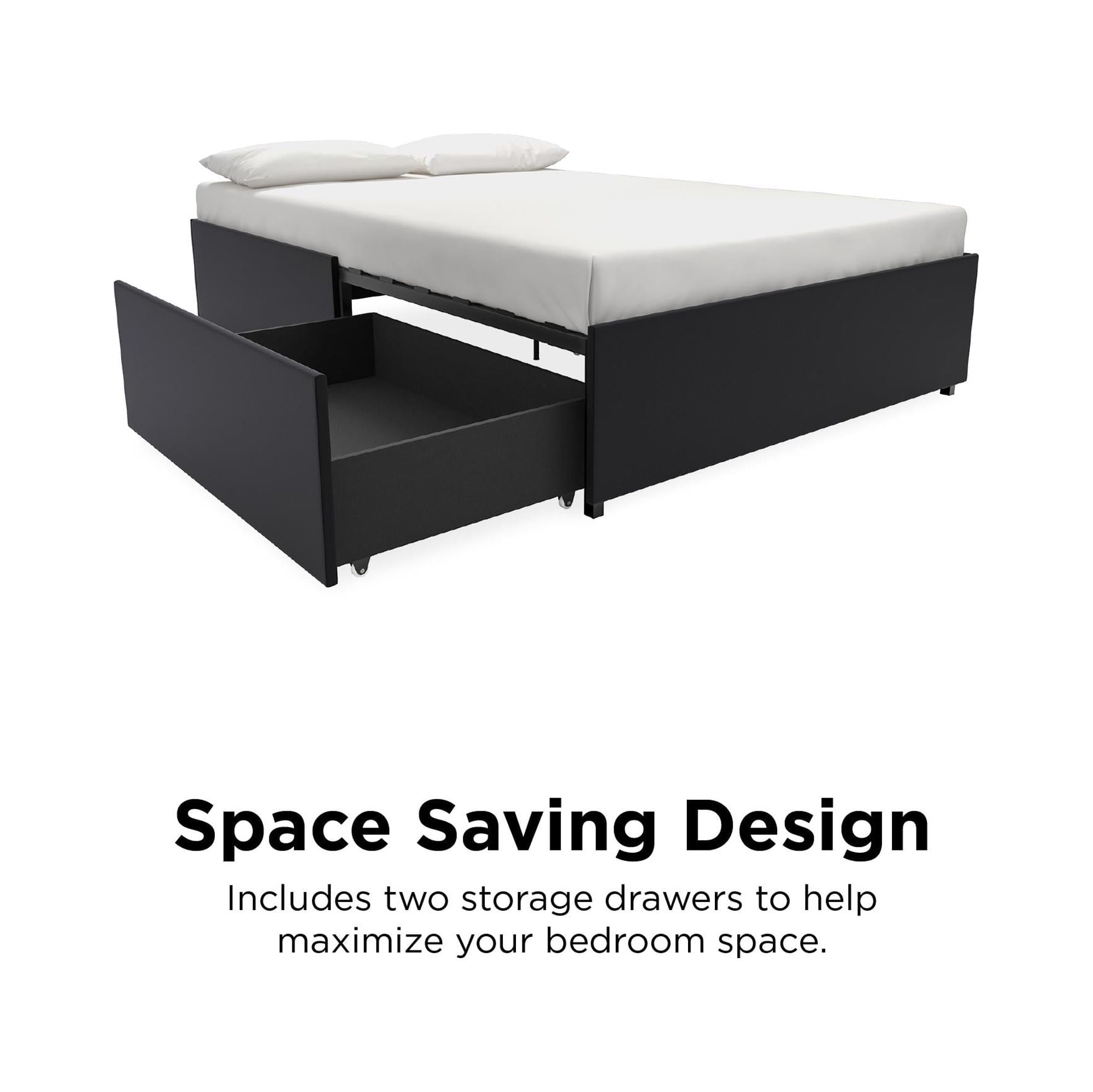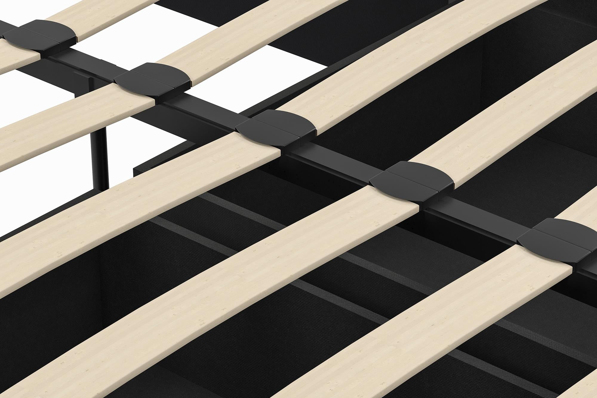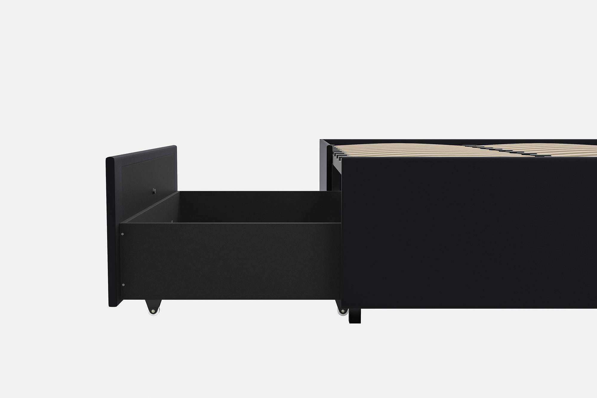Modern low profile design with clean lines Perfect for small bedrooms as it comes with two roll-out drawers for additional storage Bentwood slat system provides great ventilation. Slat bases allow air to pass freely beneath your bed, keeping your mattress fresher – mattress sold separately Very good back support with excellent pressure distribution. The slats adapt to weight exerted to them, providing you with the right amount of support, box spring not required