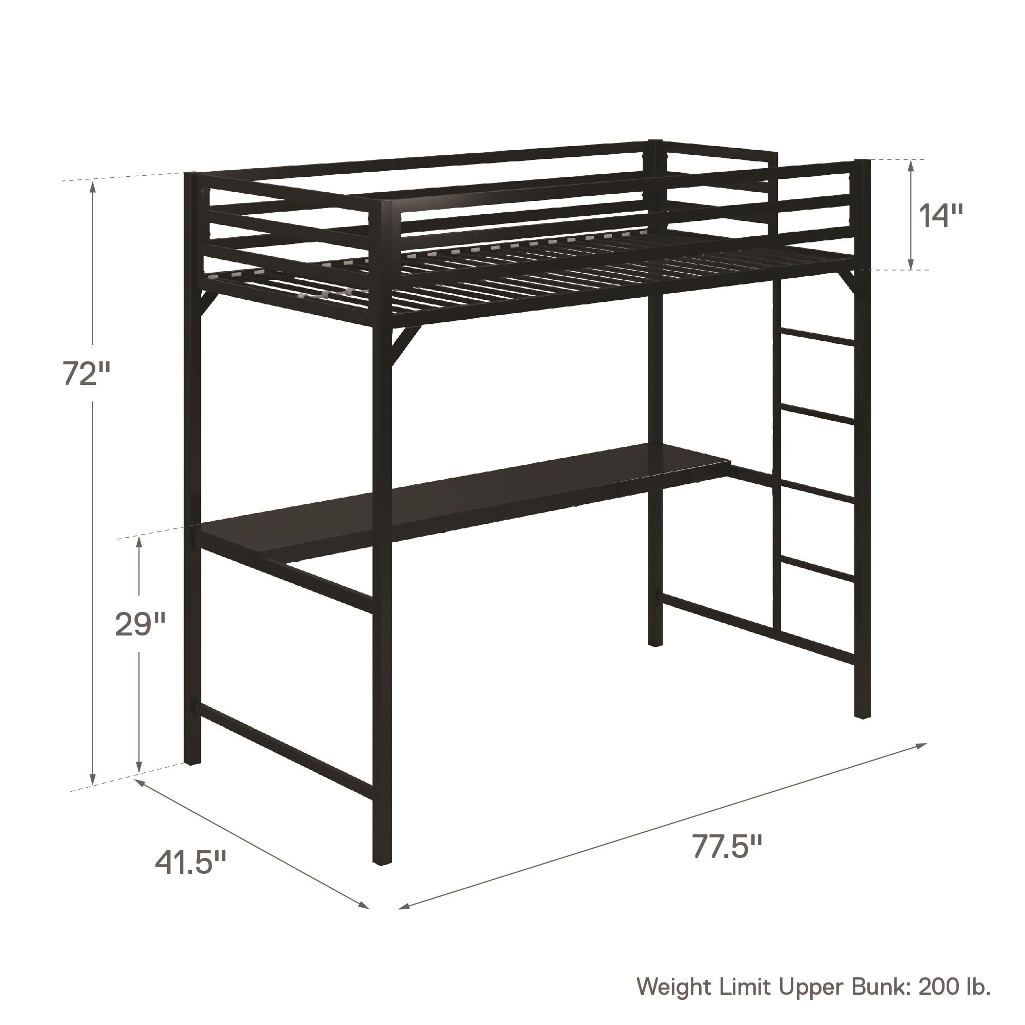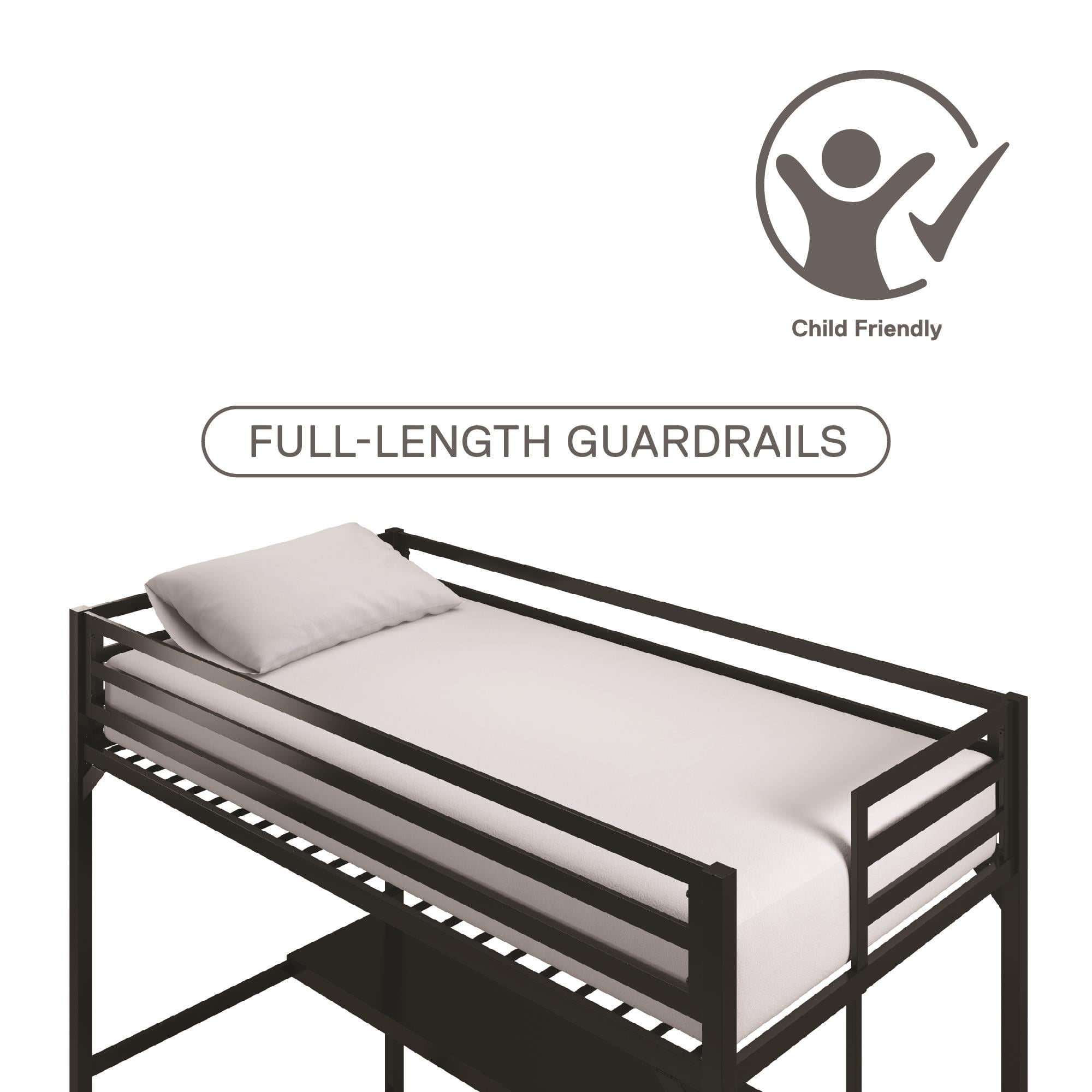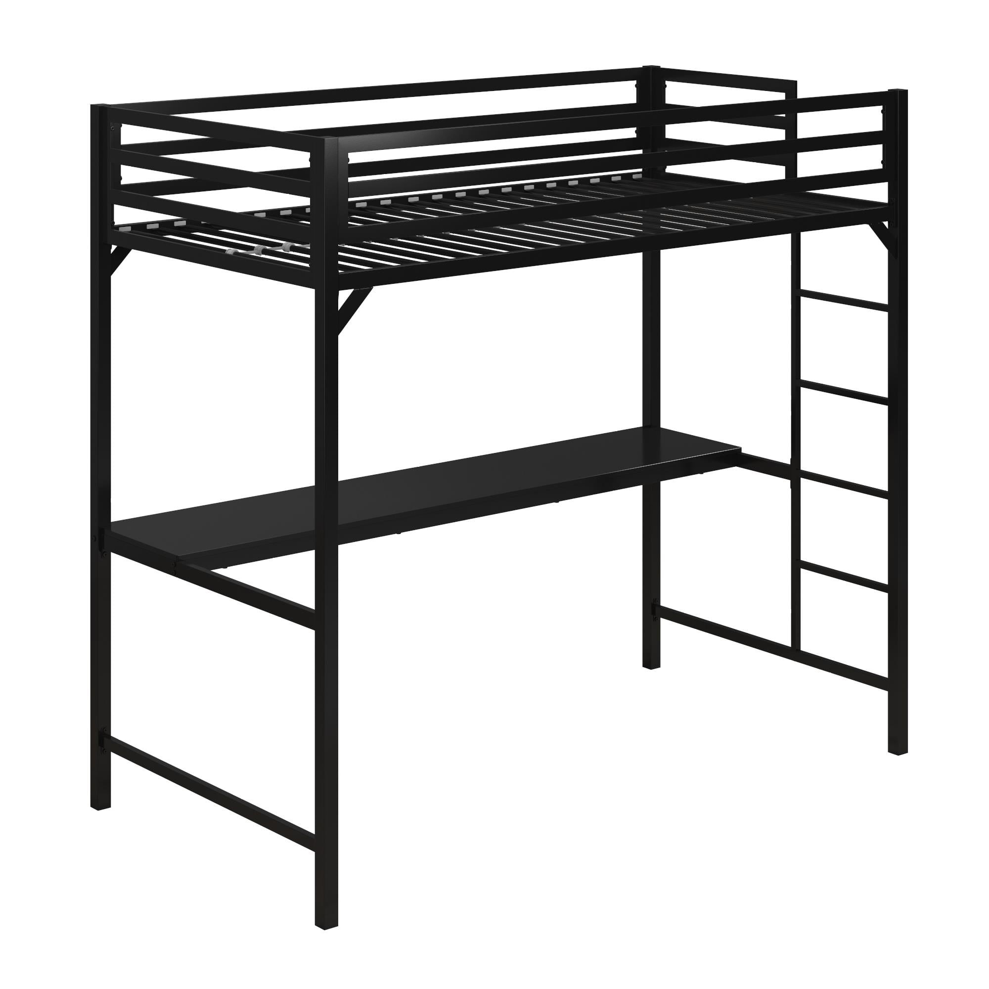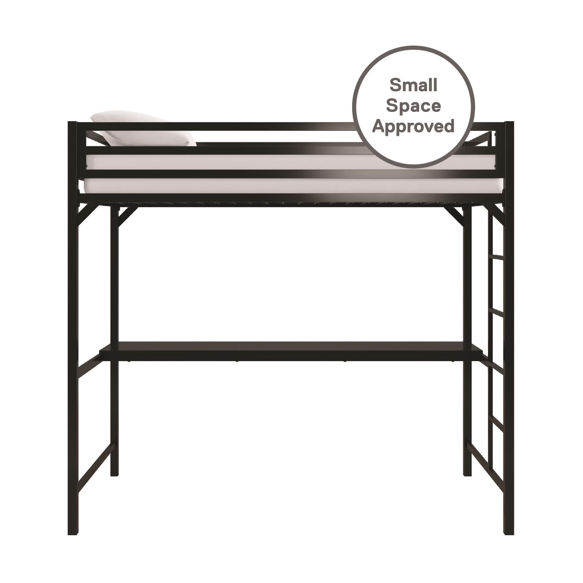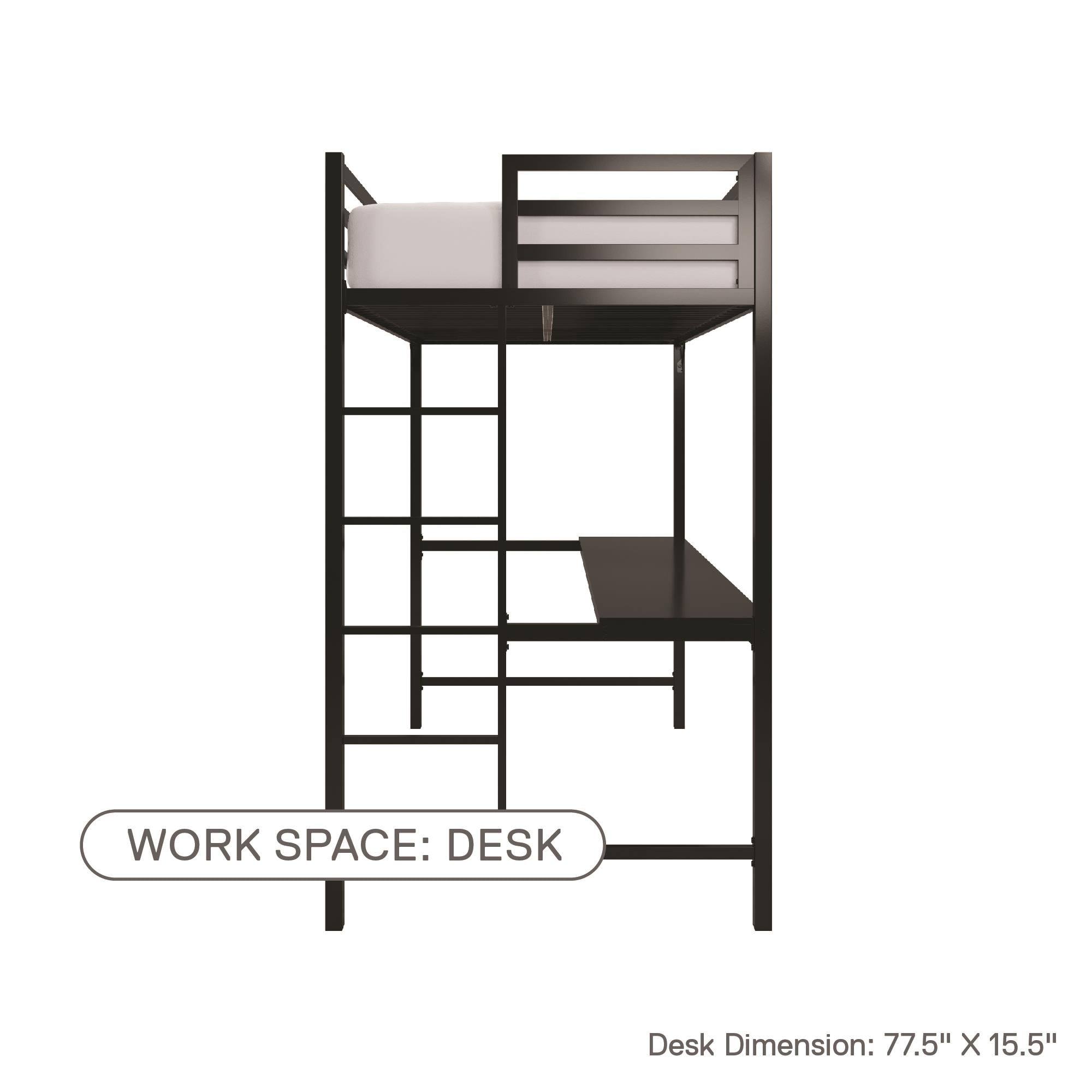 DHP Miles Metal Twin Loft Bed with Desk, Black