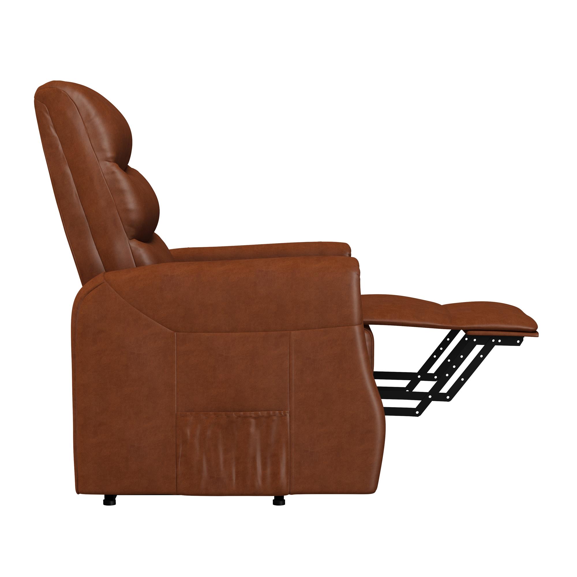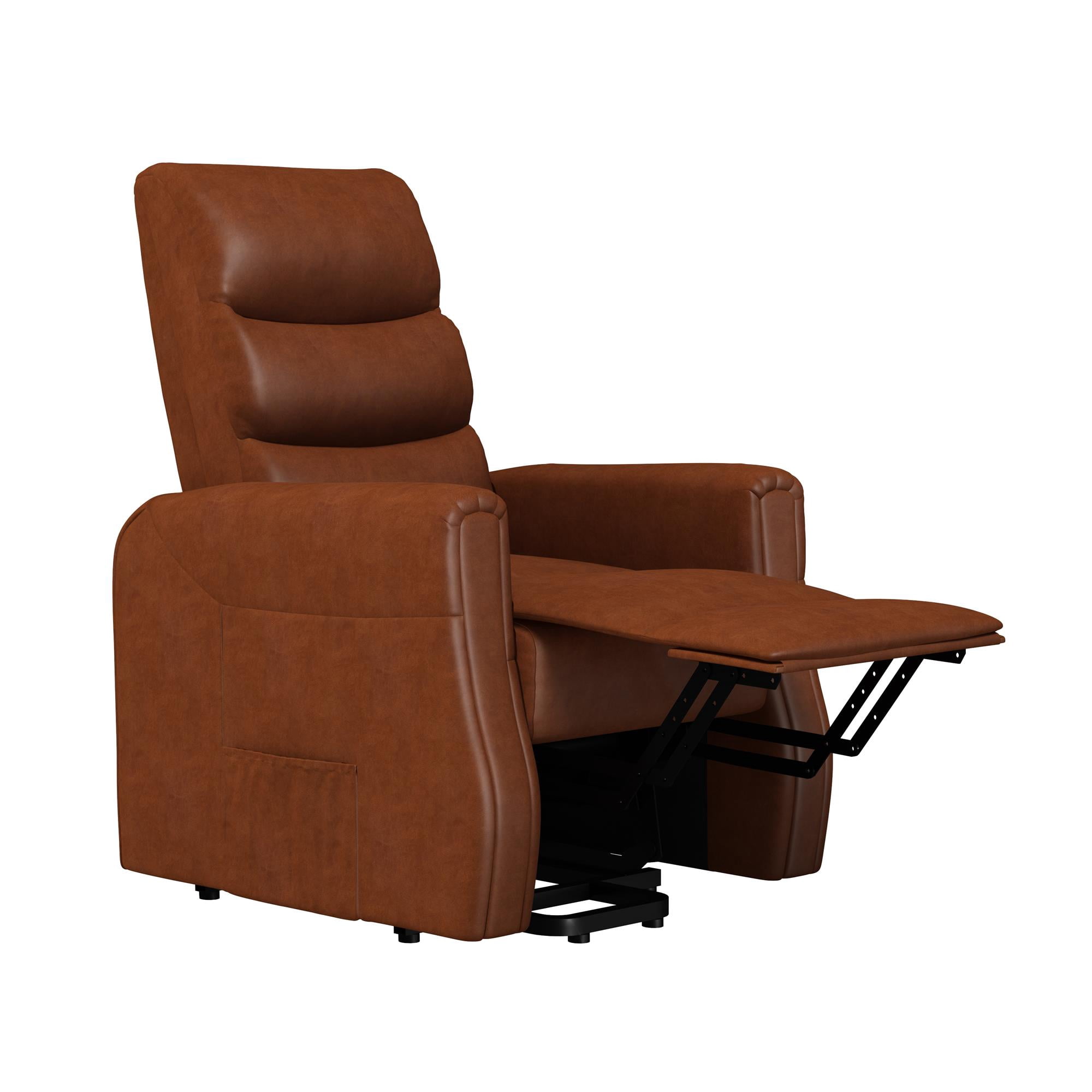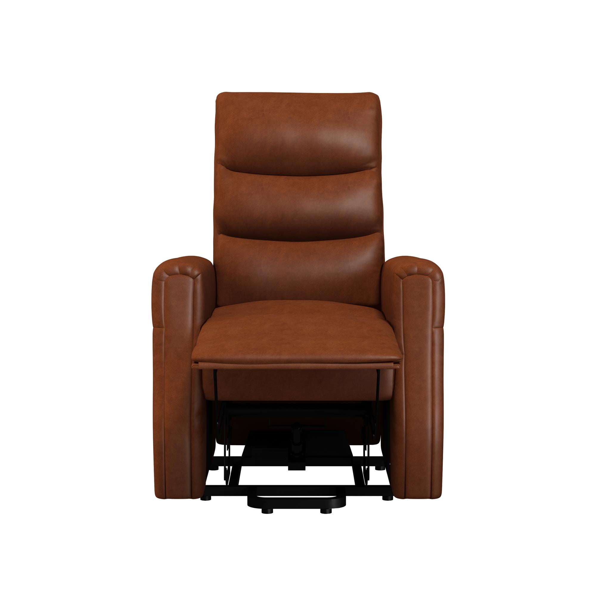 Modern recliner with plush backrest with horizontal tufting. Power lift mechanism and multi-recline function controlled by a conveniently stored user-friendly remote control and powered by a quiet engine. Includes side pockets for added storage. Perfect recliner chair to complete your home theater. Ships in one box. Quick and easy assembly required. 1-year limited warranty. Sitting dimensions: 35.5″L x 28.5″W x 42″H. Reclining dimensions: 64.5″L x 28.5″W x 34.5″H. Weight limit: 250 lbs. Net weight: 90 lbs. Shipping dimensions: 33″L x 30″W x 28″H. Gross weight: 101 lbs.