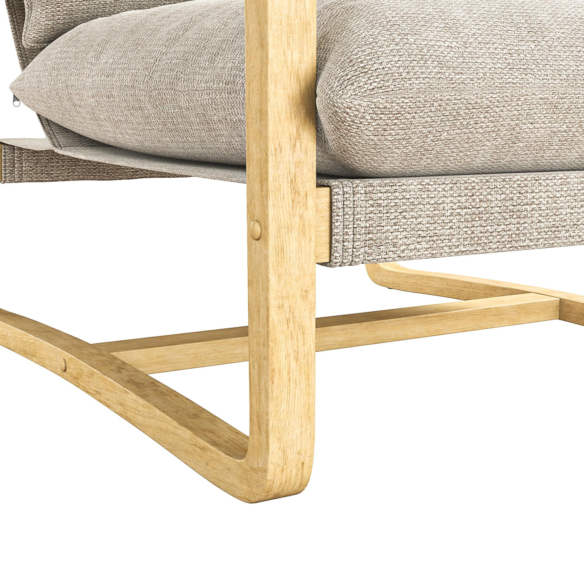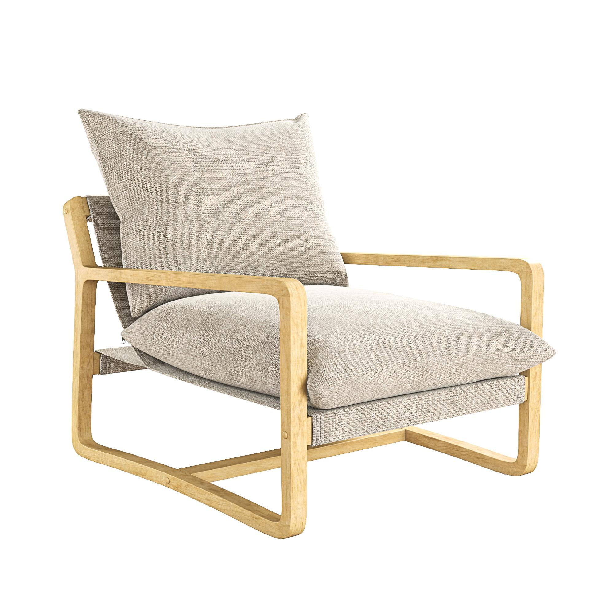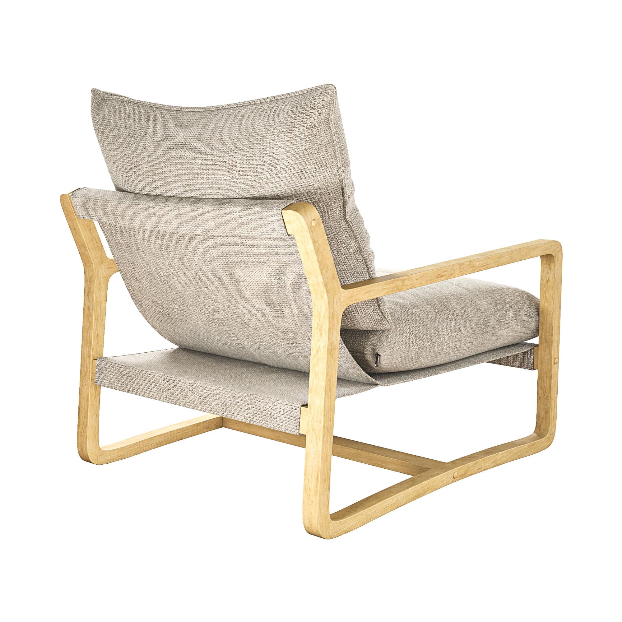 Sling Style: Sink into cradled seating that offers low-slung comfort and modern curved edges with our solid wood frame crafted accent chair featuring soft-touch linen look upholstered cushions filled with plush foam for desired firmness and support Ultimate Lounging: The steady reading lounge chair grants living room, family room, bedroom, and office multifunctionality with armchair base gliders that enable scratch-free movement on floors and a roomy seat that lets you stretch out and unwind Coastal Look: Finely balanced between traditional beauty and build, our sturdy wooden accent chair has a beachfront weathered finish and the smooth nautical color fabric back and seat cushions are reversible, allowing you to maintain a pristine space Fast Assembly: Designed to be quickly assembled under 30 minutes with all necessary parts, tools, and easy-to-follow instructions included in box, saving you time and hassle. Simply wipe upholstery material with a damp cloth to clean spills or stains