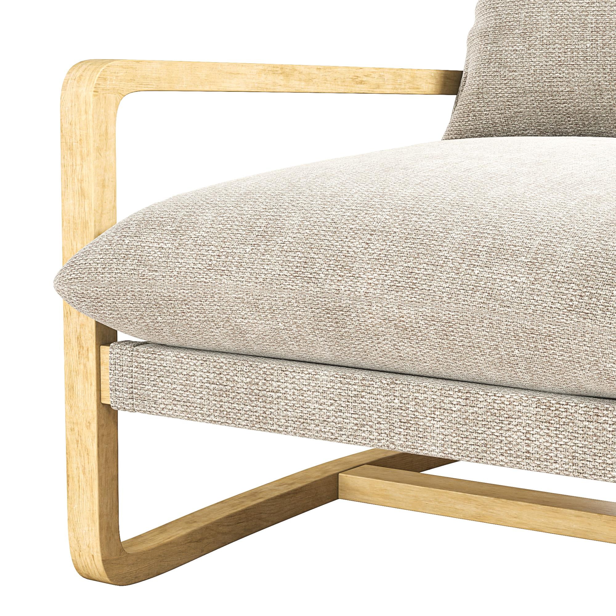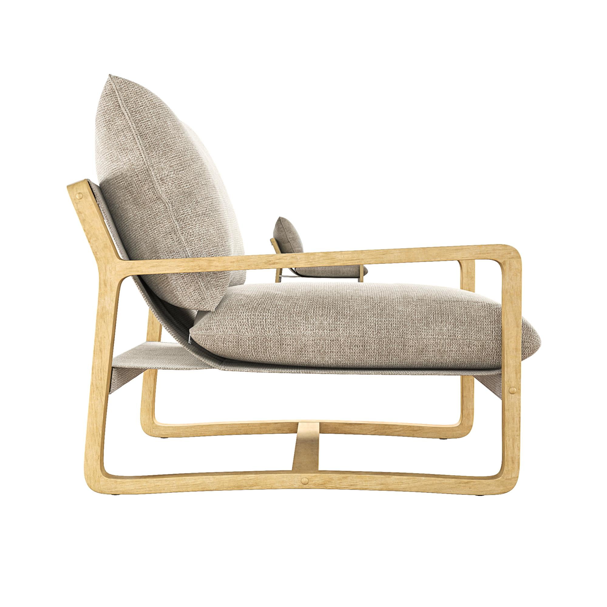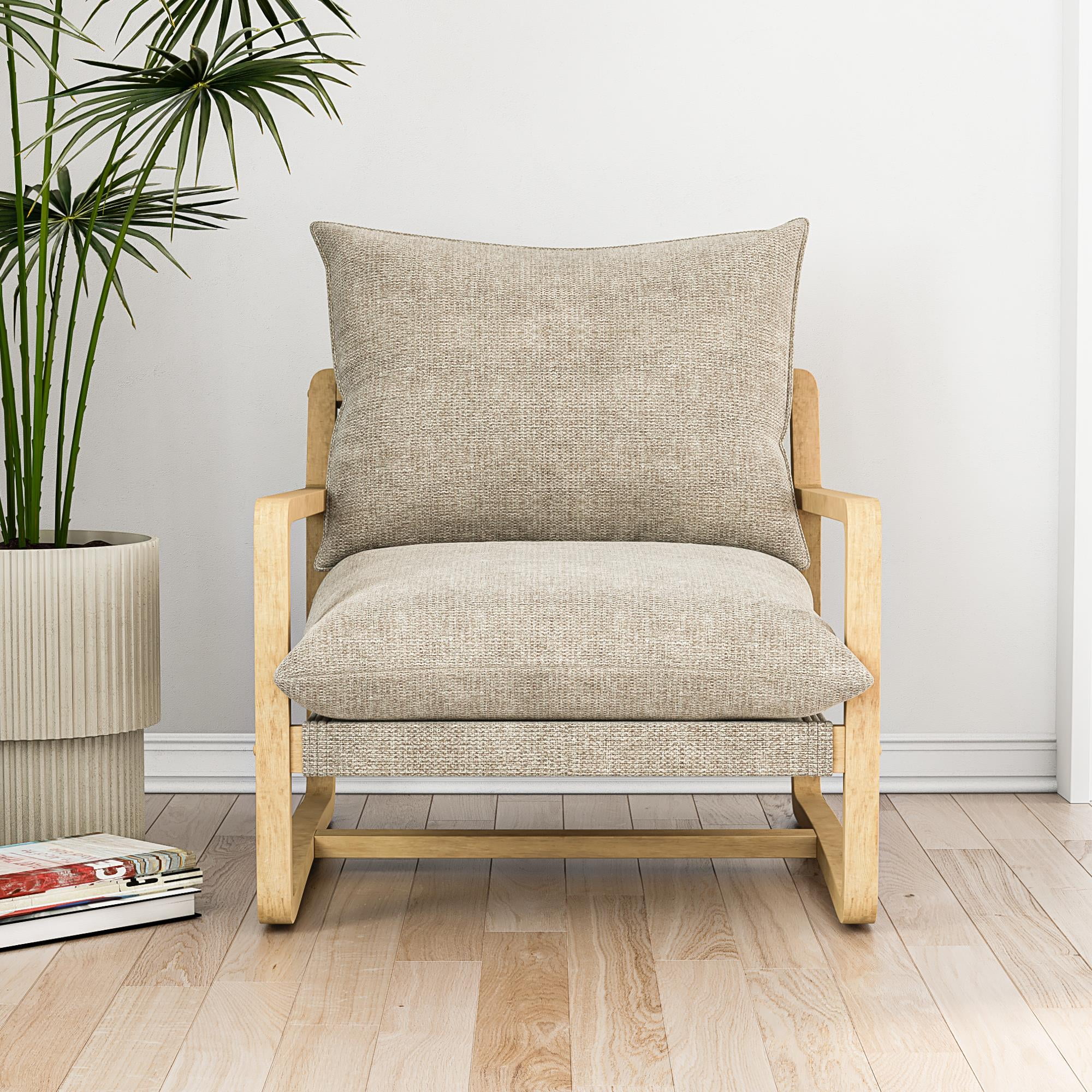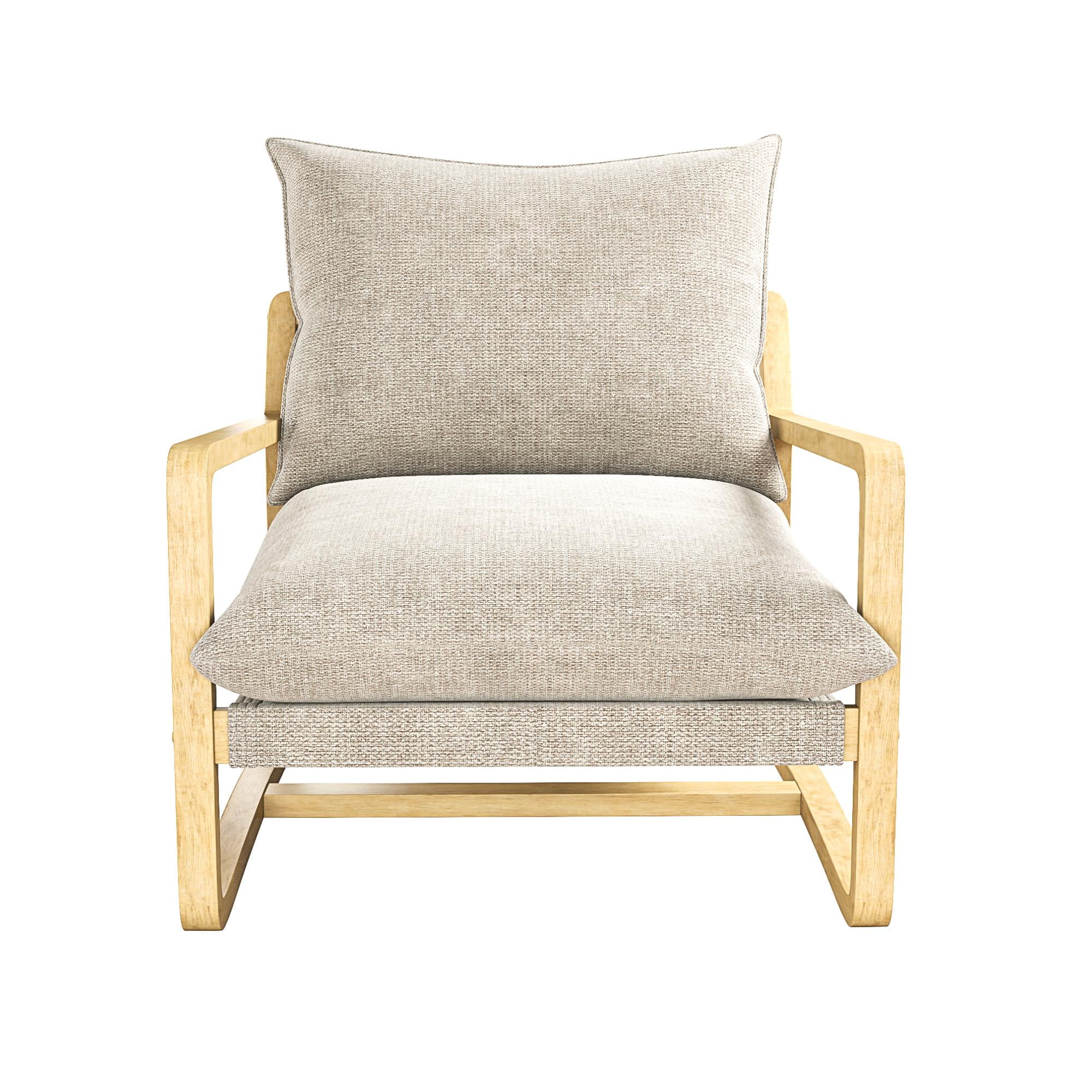Sling Style: Sink into cradled seating that offers low-slung comfort and modern curved edges with our solid wood frame crafted accent chair featuring soft-touch linen look upholstered cushions filled with plush foam for desired firmness and support Ultimate Lounging: The steady reading lounge chair grants living room, family room, bedroom, and office multifunctionality with armchair base gliders that enable scratch-free movement on floors and a roomy seat that lets you stretch out and unwind Coastal Look: Finely balanced between traditional beauty and build, our sturdy wooden accent chair has a beachfront weathered finish and the smooth nautical color fabric back and seat cushions are reversible, allowing you to maintain a pristine space Fast Assembly: Designed to be quickly assembled under 30 minutes with all necessary parts, tools, and easy-to-follow instructions included in box, saving you time and hassle. Simply wipe upholstery material with a damp cloth to clean spills or stains