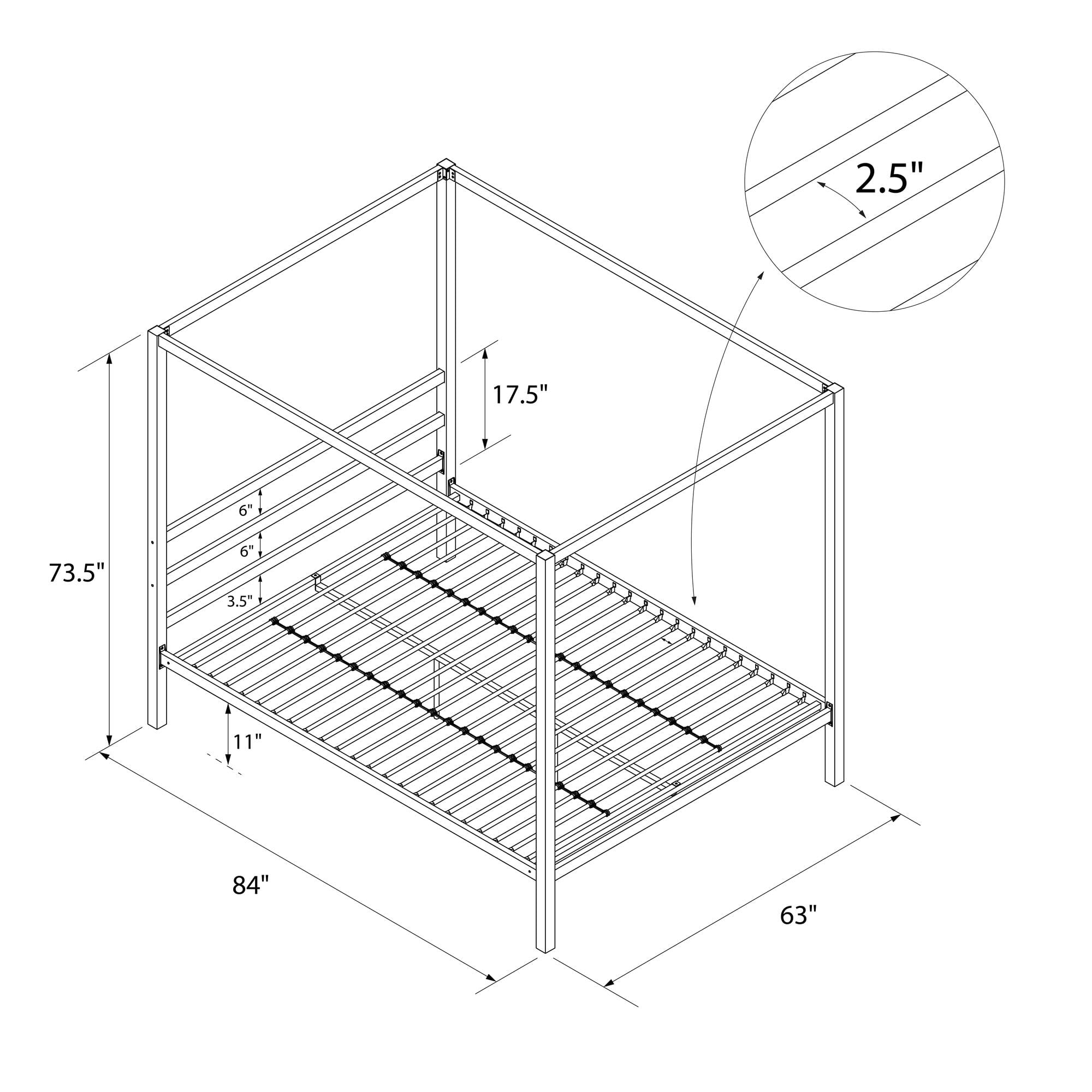DHP Modern Metal Canopy Poster Bed, Queen, Gunmetal Gray