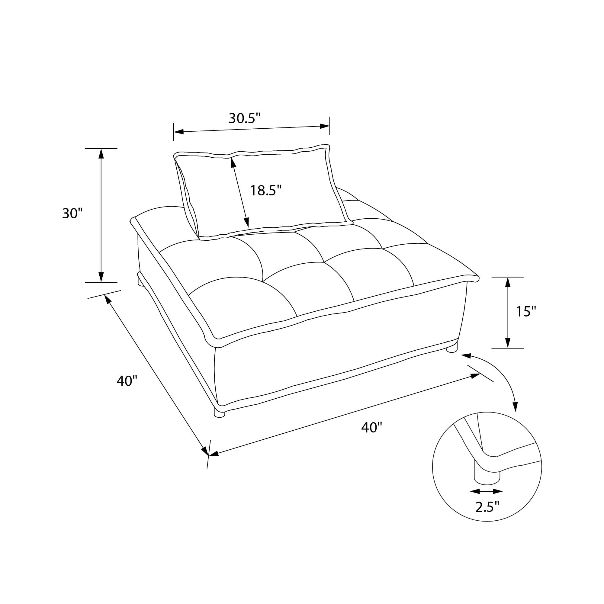 LEISURE & LOUNGE CHAIR: Lay back and stretch out on a large modern accent chair that sports a low-profile design with plush sofa seating for off-the-floor couch comfort and features a removable bolster pillow with non-slip cushion for lumbar support RELIABLY RELAXED: Upholstered in subtly textured polyester fabric, our soft and flexible floor chair with square tufted seat and flange detailing lets you sit fashionably and transforms into a trendy ottoman table or footrest for multifunctional use OVERSIZED LOOK: Enjoy the luxe feel of thick foam padding, the stability of sturdy plastic legs, and the strength of a hardy wooden frame with an armless chair that offers the best living room, bedroom, or office style payoff for big and small spaces FAST 15 MINUTE ASSEMBLY: Everything you need, including parts, tools, and easy-to-follow instructions, are provided in box for simple set-up. Turn the single couch chair into a modular layout by adding on extra corner chairs (each sold separately)