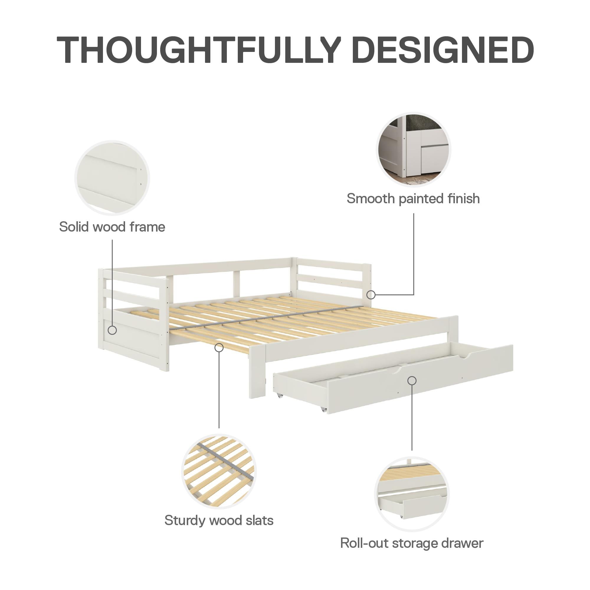 DHP Rhodes Twin to King Wood Daybed with Storage Drawer, White