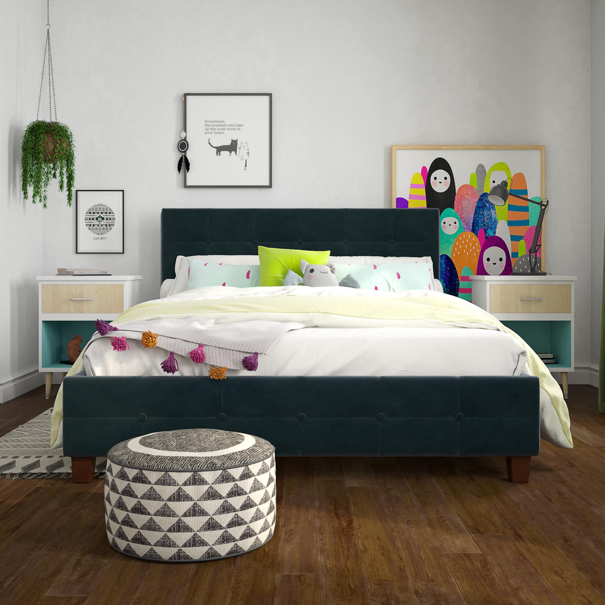 DHP Rose Tufted Upholstered Platform Bed Frame, Queen, Blue Velvet
