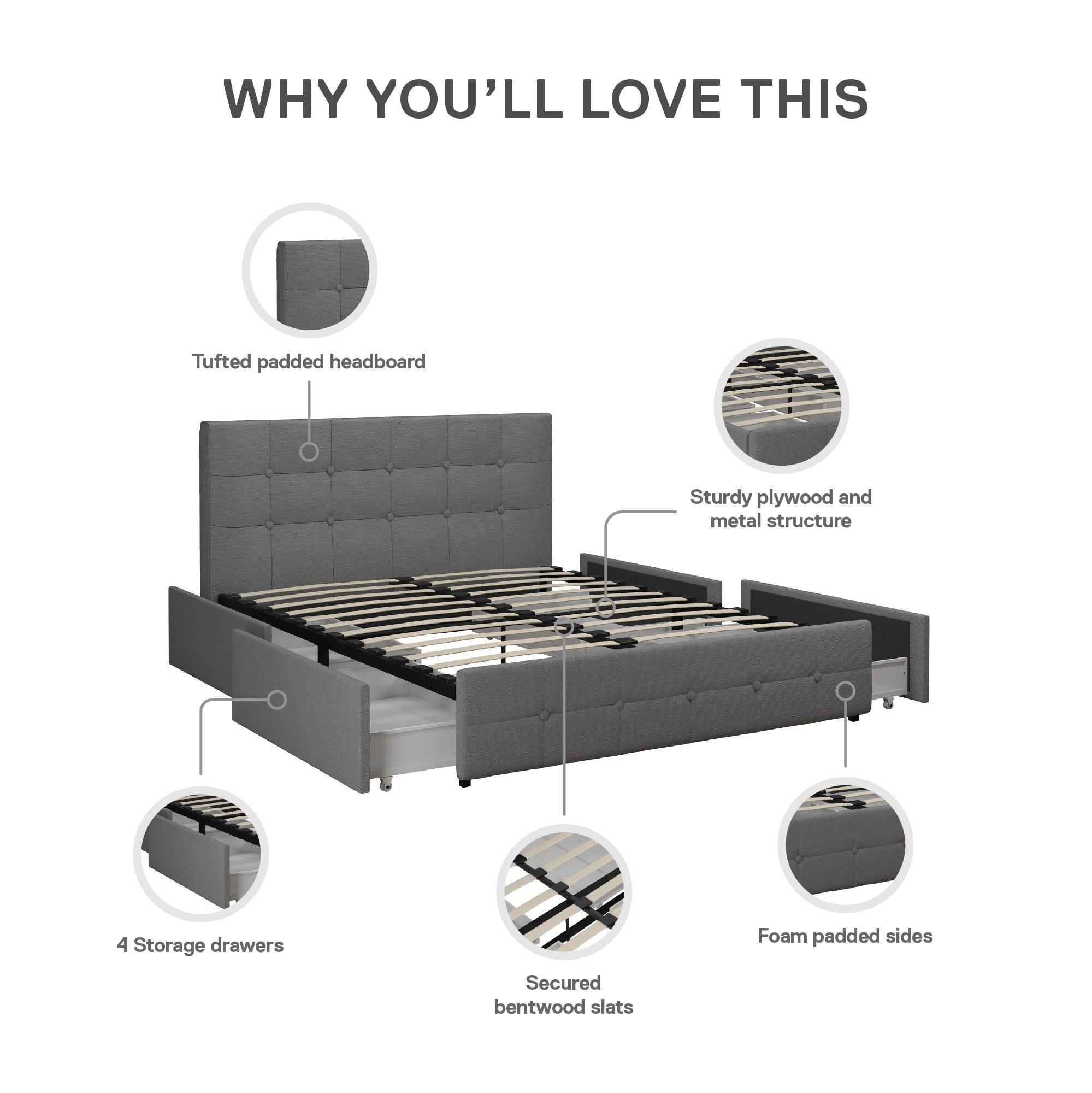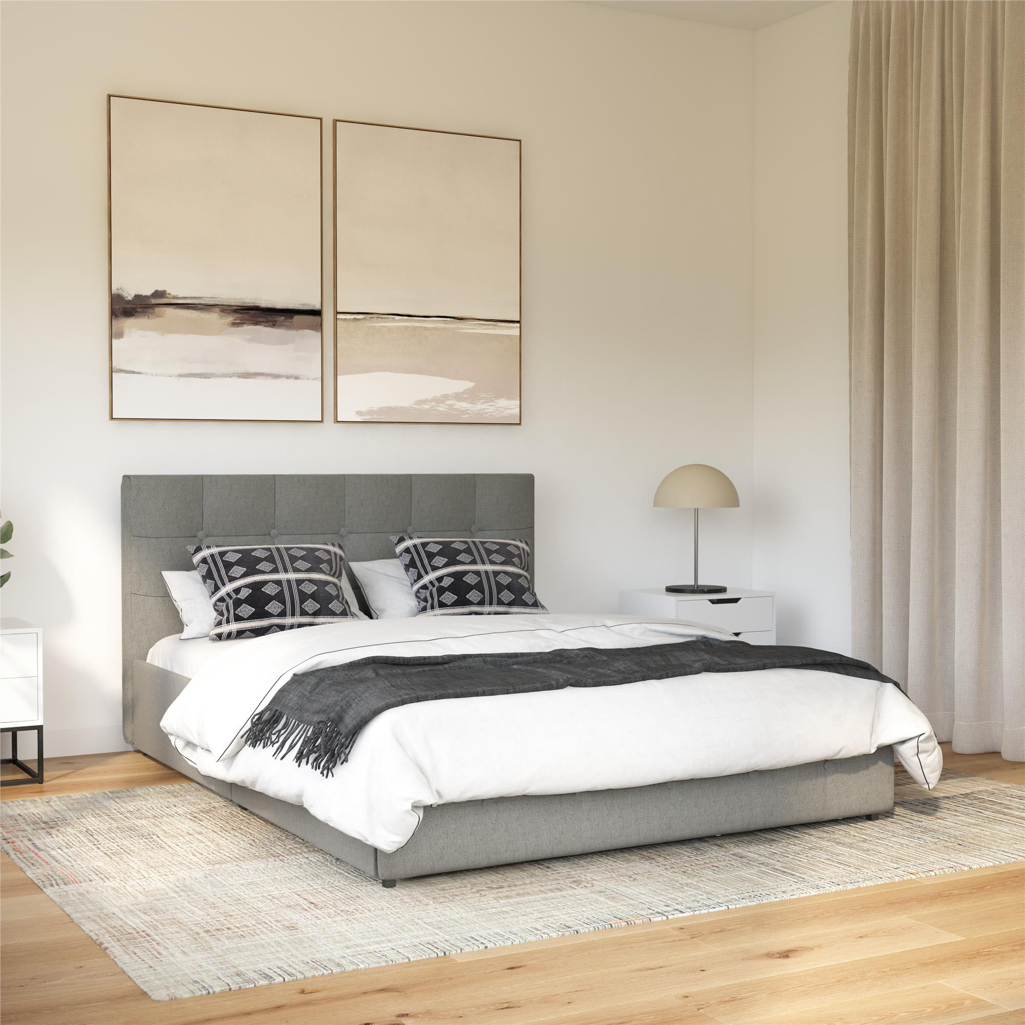 DHP Rose Tufted Upholstered Storage Bed Frame, Full, Gray Linen