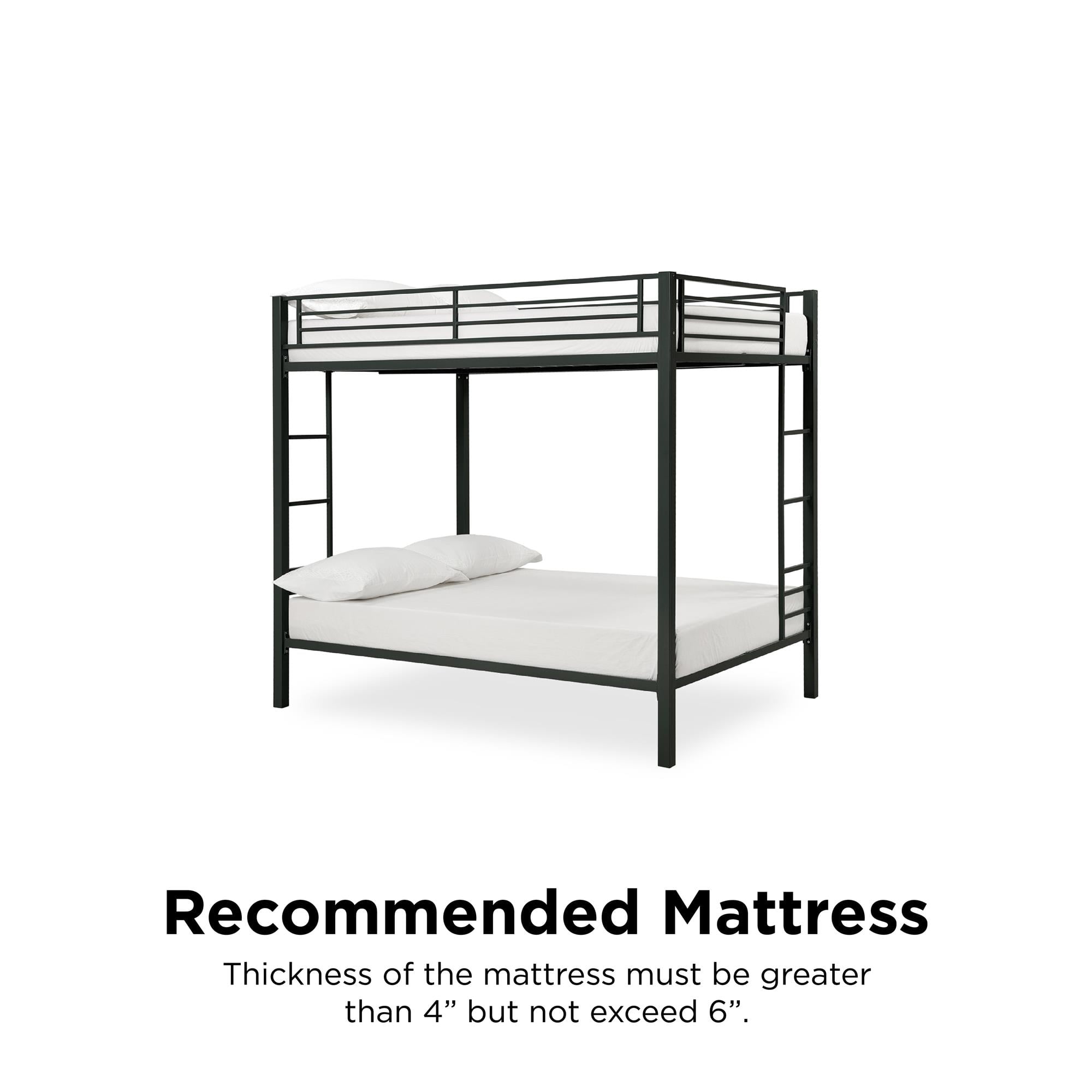 Complete your kid’s room with DHP’s Sidney Full-Over-Full Metal Bunk Bed. With square posts and simple design, this bunk bed will complement any room decor. The bunk bed includes metal slats for support and durability, and can be used without a box spring or bunky board. It also includes full length guardrails for upper bunk and a sturdy integrated ladder for safety. Functional and space-saving, this Full-Over-Full Metal Bunk Bed is perfect for kids sharing a room or for sleepovers. Children must be at least 6 years old to use the top bunk and 3 years old to use the bottom bunk.