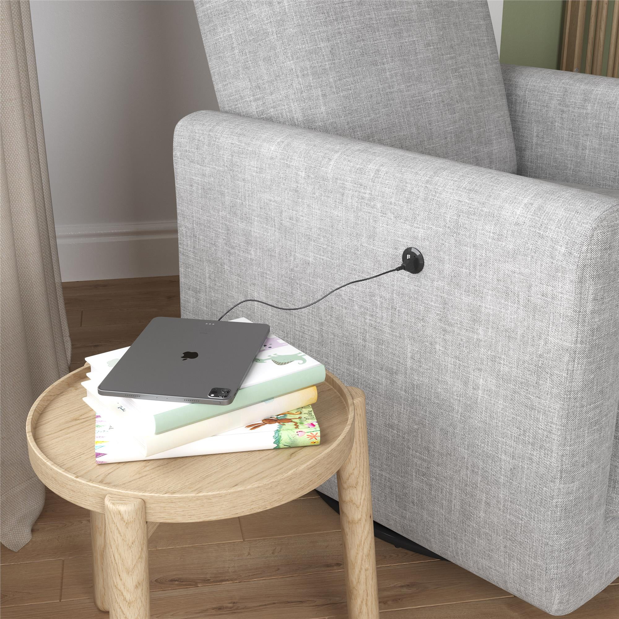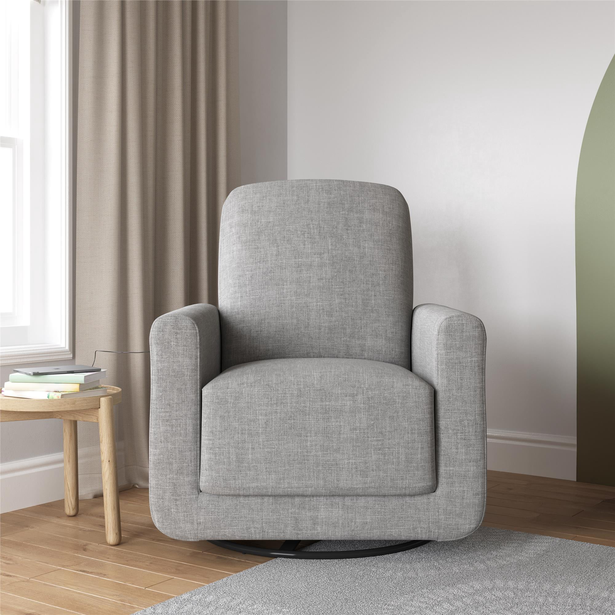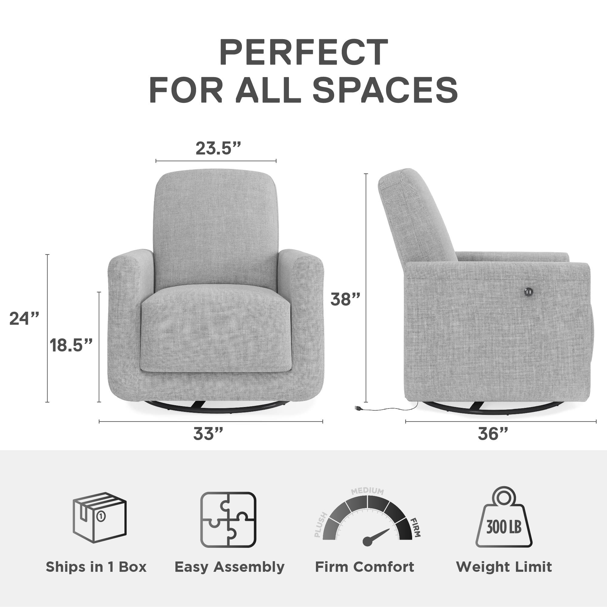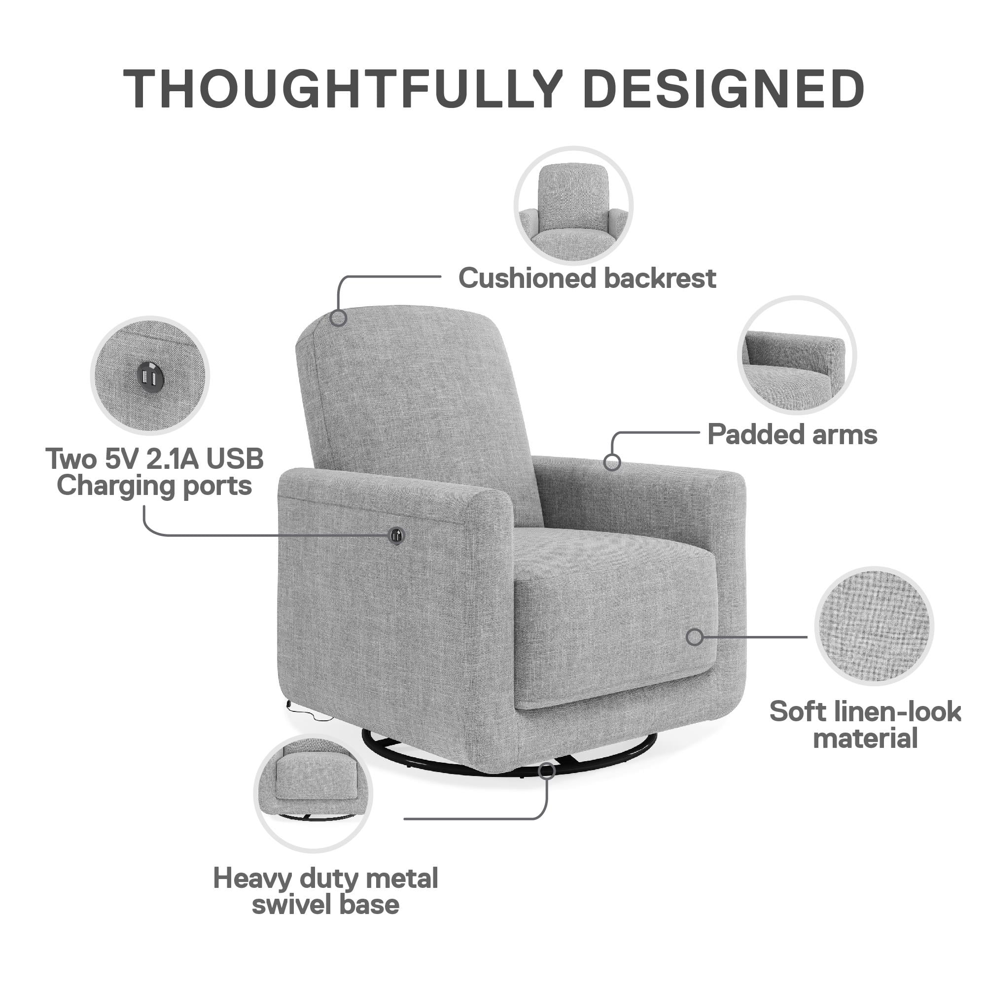MODERN CONTEMPO COMFORT: Cuddle up in our silky soft linen-look fabric 360-degree swivel accent chair with rounded padded armrests and backrest which includes dual USB charger ports and ultra-thick seating to simplify your daily routine in high-style LIVING ROOM MUST-HAVE: Favorably quiet all-around swiveling action allows rested movement when reaching for TV remotes or engaged in conversation. Outer arm located 2 Type-A USB connectors let you power up phones and tablets for instant info access CRAFTED WITH CARE: The swivel chair looks equally flawless in the bedroom or home office and is durably made with a plywood frame, black metal base, sag-free sinuous spring foundation, and an uber-cozy 12-inch-deep foam cushioned pocketed coil seat ASSEMBLES QUICKLY: All parts, tools, and instructions are included in box for fast assembly in 15 minutes. Easy to clean 100% linen-look polyester is a resilient material – simply wipe spills or stains away with a damp cloth. Power adaptor included RELIABLY SAFE: Chair dimensions: 33″L x 36″W x 38″H. Weight limit: 300 lbs. Net weight: 74 lbs. 1-year limited warranty. Flame retardant chemical free and TSCA Certified for formaldehyde. Power supply cord: 5V DC 2A/2000mA. Output power: 10W