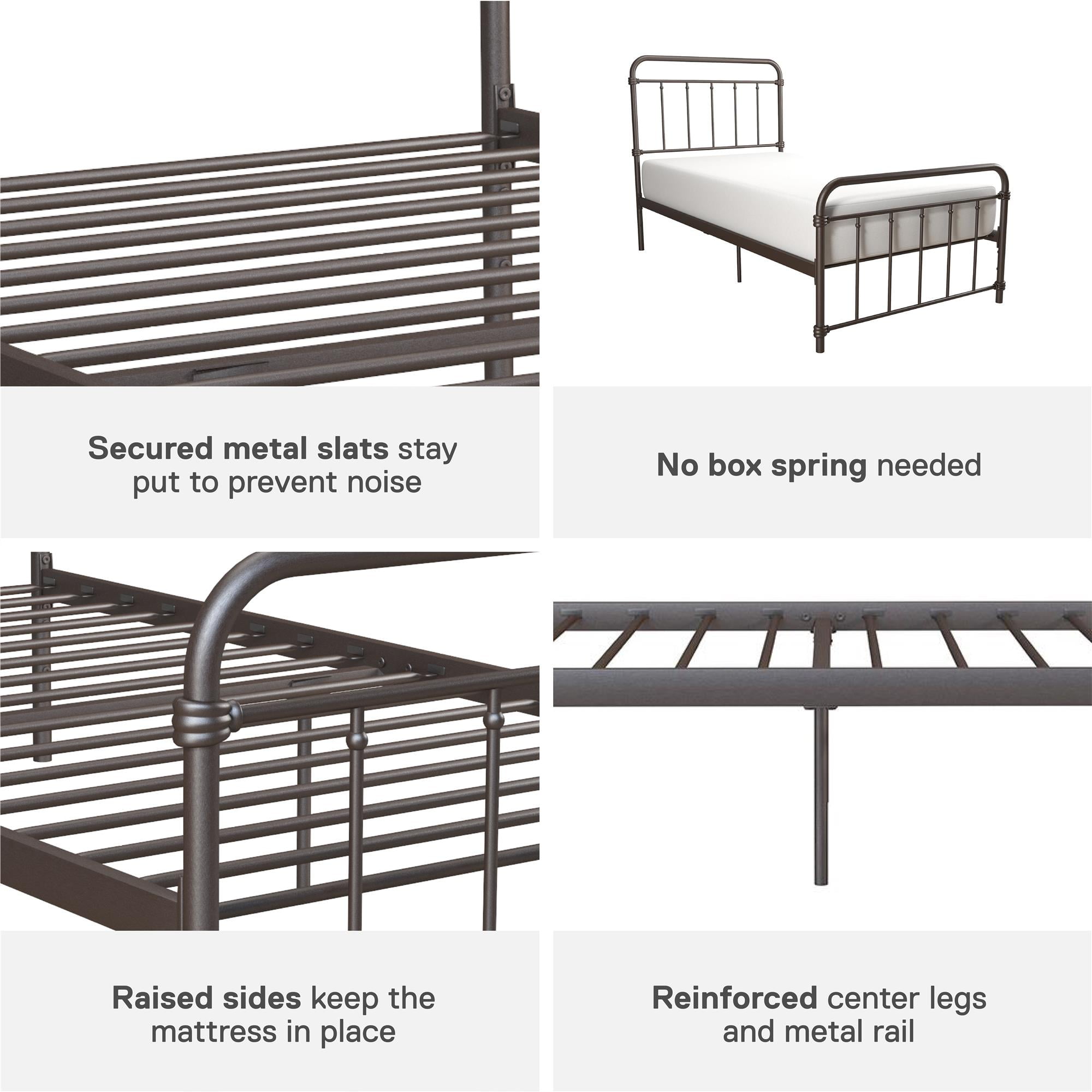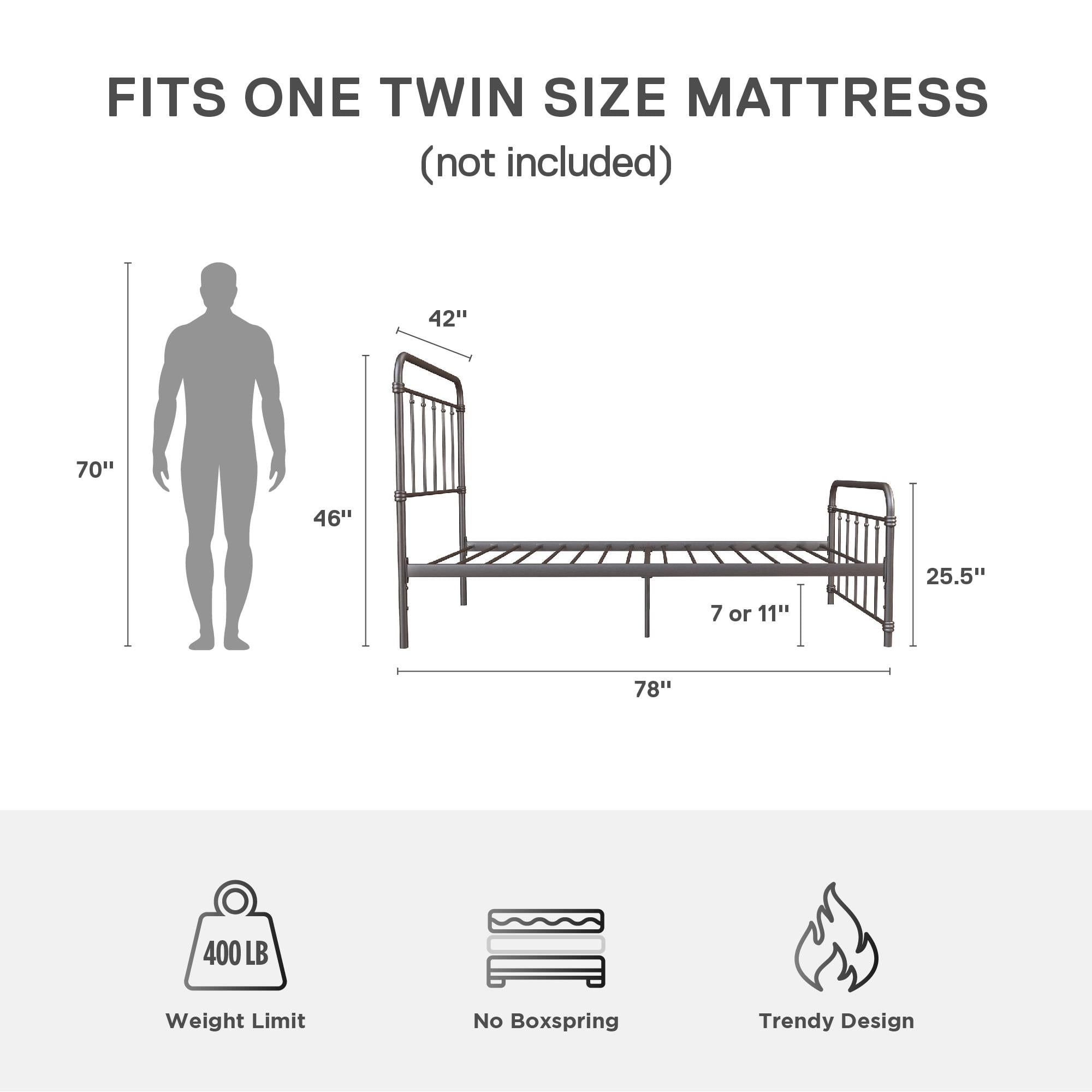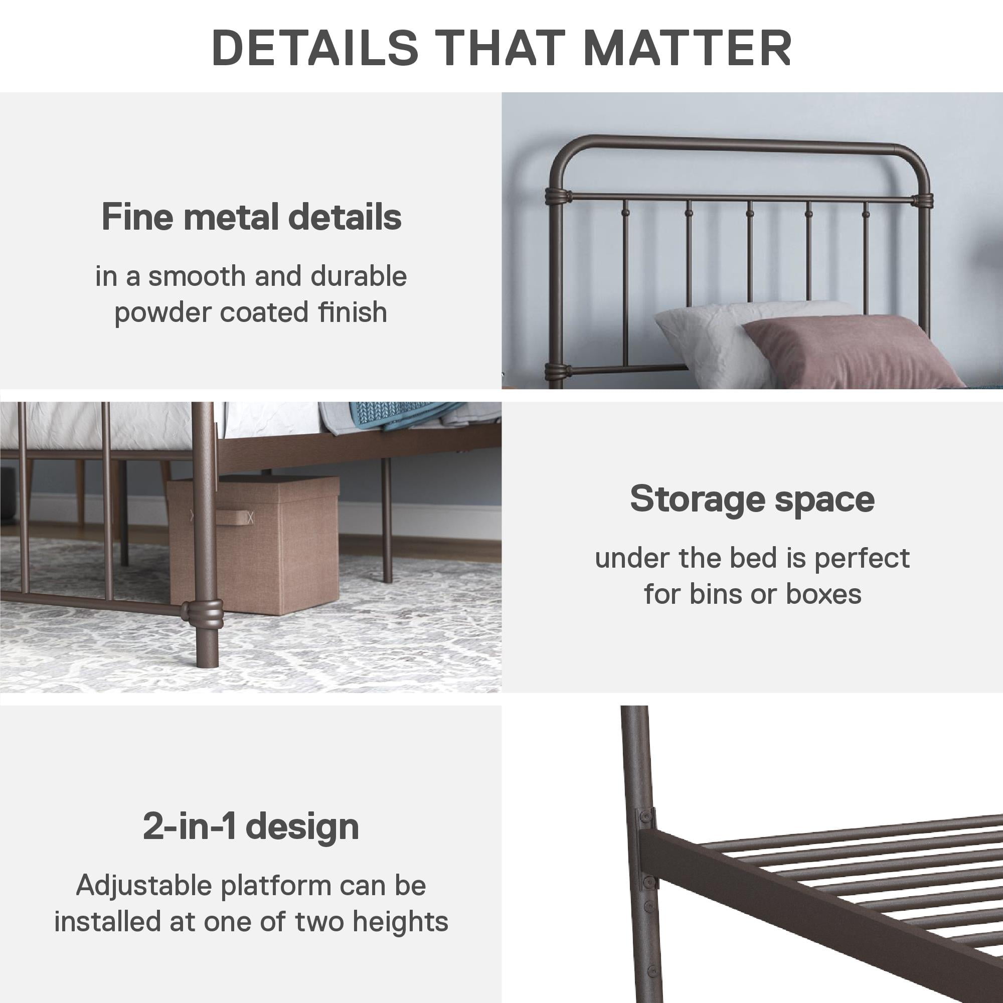 DHP Wallace Metal Platform Bed Frame with Headboard, Twin, Bronze