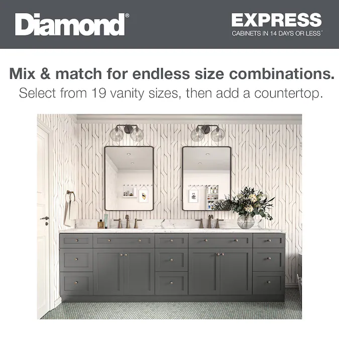 Diamond Express offers quality cabinets fast! With all plywood construction, soft-close doors and drawers, upgraded painted finish, and free home delivery, the value of a Diamond Express cabinet cannot be beat. Plus, with delivery to your home or jobsite in 14 business days or less, you will be on your way to completing your project in no time.