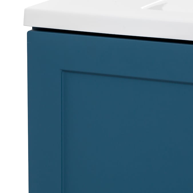 - 30.5-in W x 18.75-in D x 32.89-in H Shaker-style bright admiral blue bathroom vanity with a white single-sink vanity top