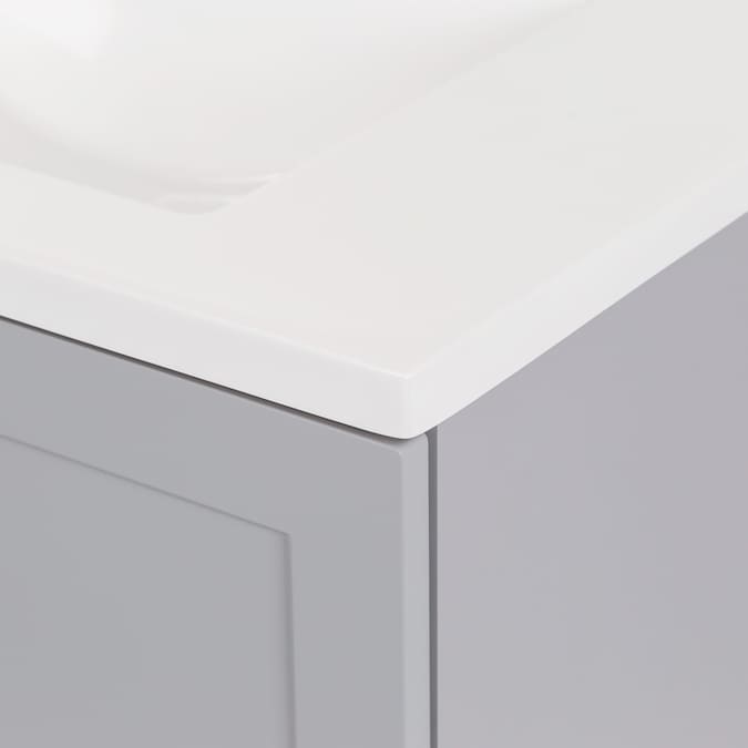 - 30.5-in W x 18.75-in D x 32.89-in H Shaker-style pearl gray bathroom vanity with a white single-sink vanity top