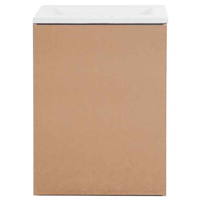 - 24.25-in W x 18.75-in D x 32.89-in H contemporary bathroom vanity in a dark brown Milano oak woodgrain finish with a white single-sink vanity top