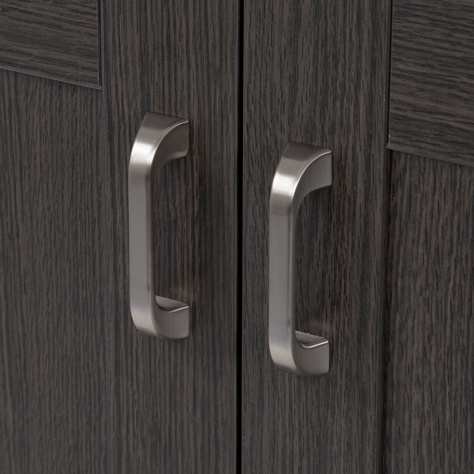 - Full-overlay recessed-panel doors and flat-panel drawer are accented by satin nickel hardware for added style and convenience