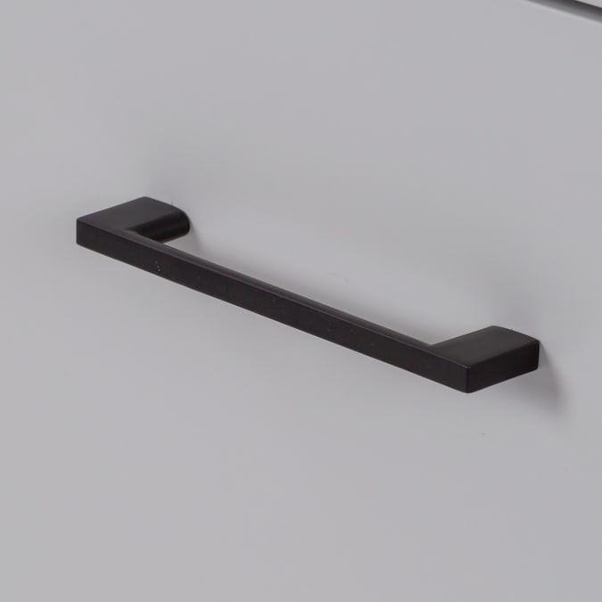 - Inset flat-panel door and drawer are accented by matte black hardware for added style and convenience