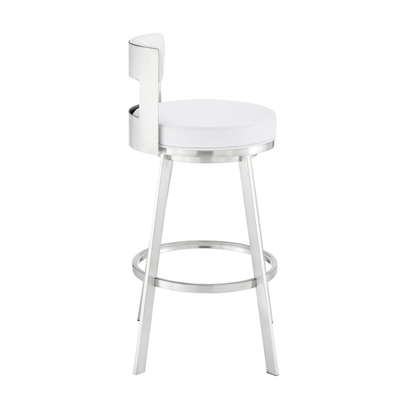 Elevate any corner with the chic style and linger-worthy comfort of our Diana Upholstered Swivel Bar or Counter Stool. The stylish bar stool utilizes bentwood construction to sculpt a stunning barrel back to envelope you in comfort. Its graceful curves are complemented by bentwood legs and a metal ring that acts as a footrest for added comfort and functionality. Finished off with a padded seat and stunning tufting detail on the back, our counter stool allows you to enjoy meals and conversations at a bar or high-dining table with style and comfort. It is available in both faux leather and fabric upholstery to provide an easy-care material for your home. This wood bar stool features a modern and versatile design ideal for your kitchen island, pub table, home bar, or adjustable desk. With durable and sturdy construction, our bar stool can be used anywhere from a kitchen to a home office. It is fitted with a wonderful 360-degree swivel function with a smooth gliding system, allowing you to change direction and follow conversations with ultimate ease. The Diana swivel bar or counter stool easily incorporates into any home and is available in your choice of 26-inch or 30-inch seat height in a walnut wood finish with gray, cream, and black faux leather upholstery, and black wood finish with gray faux leather and light gray fabric upholstery.