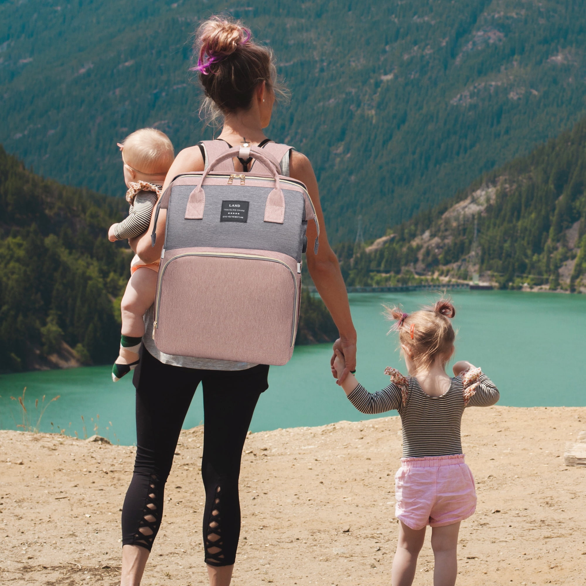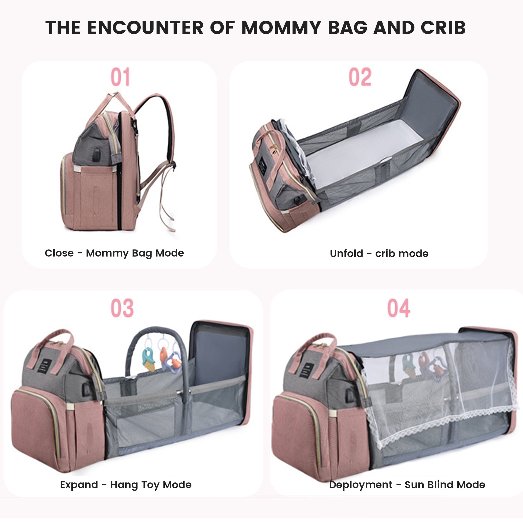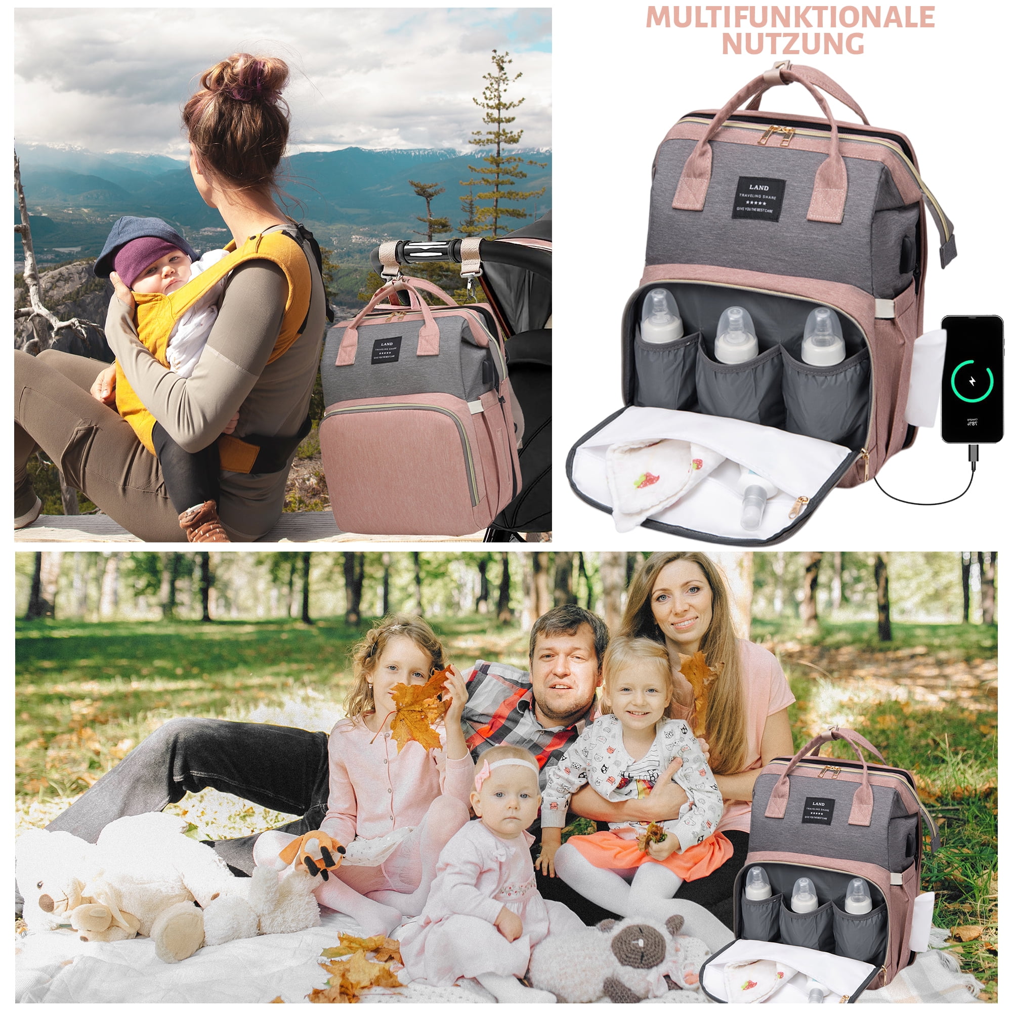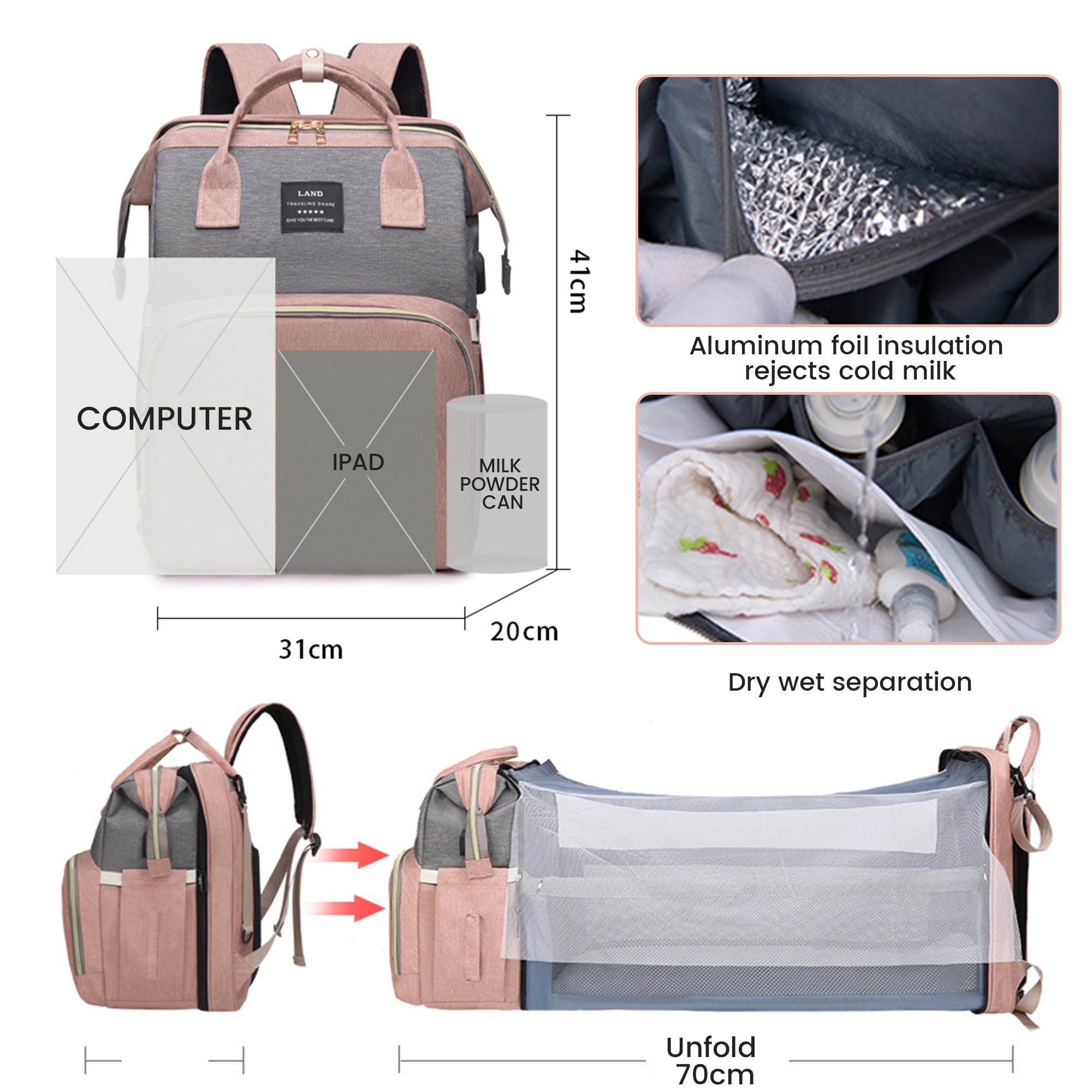 Diaper Backpack, Baby Diaper Bag Backpack for Boys& Girls, Large Capacity Baby Changing Bag w/ Foldable Crib & Insulated Milk Bottle Pocket – Waterproof and Stylish (Pink)