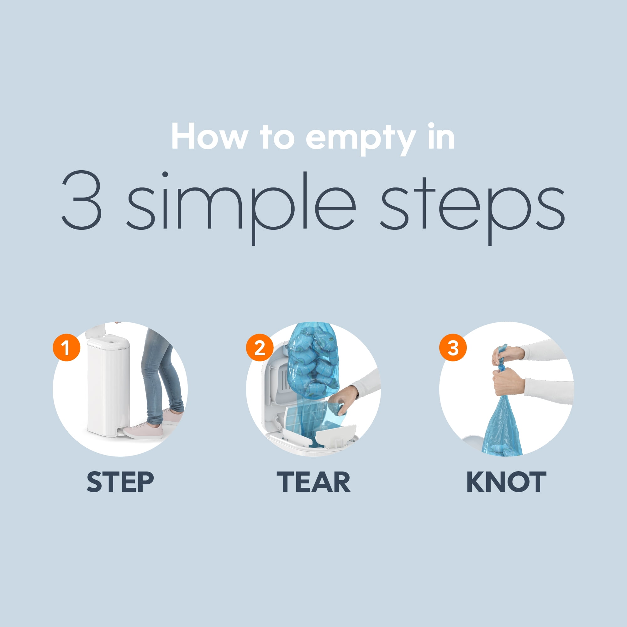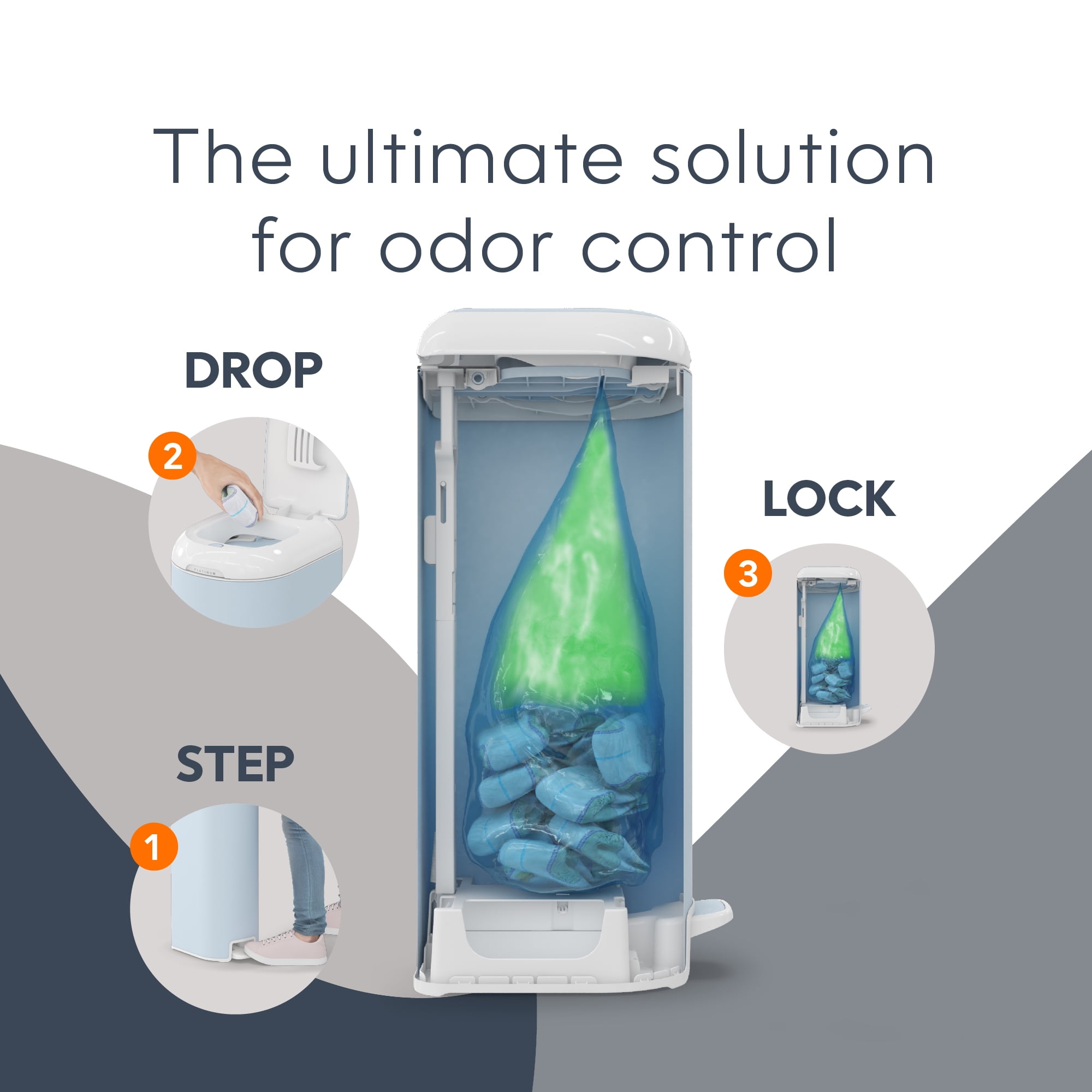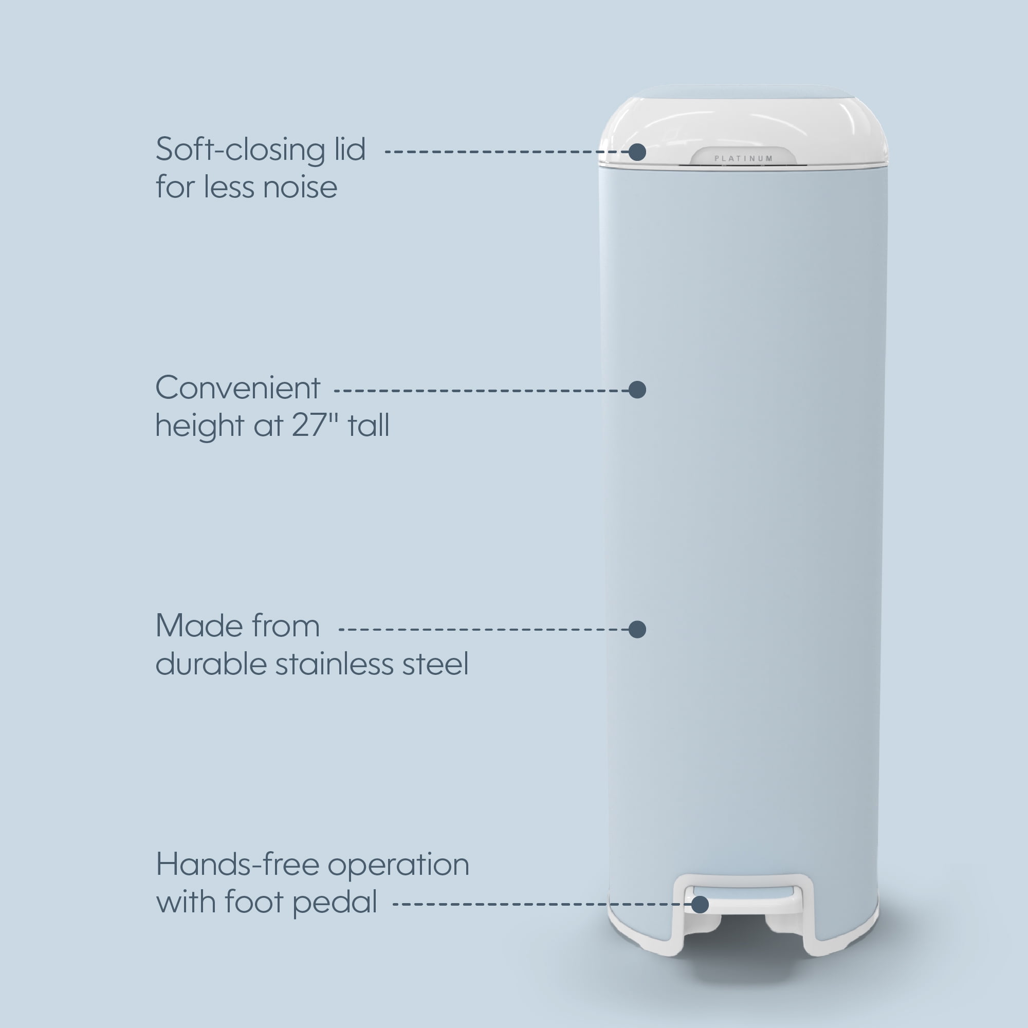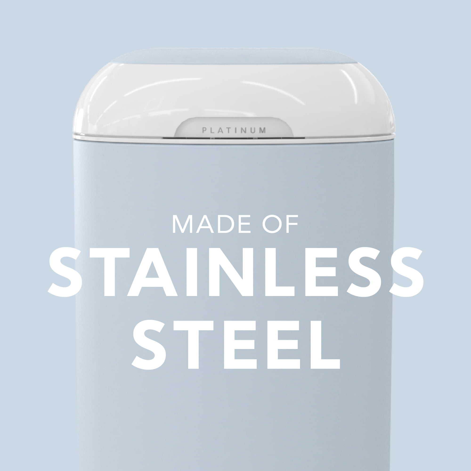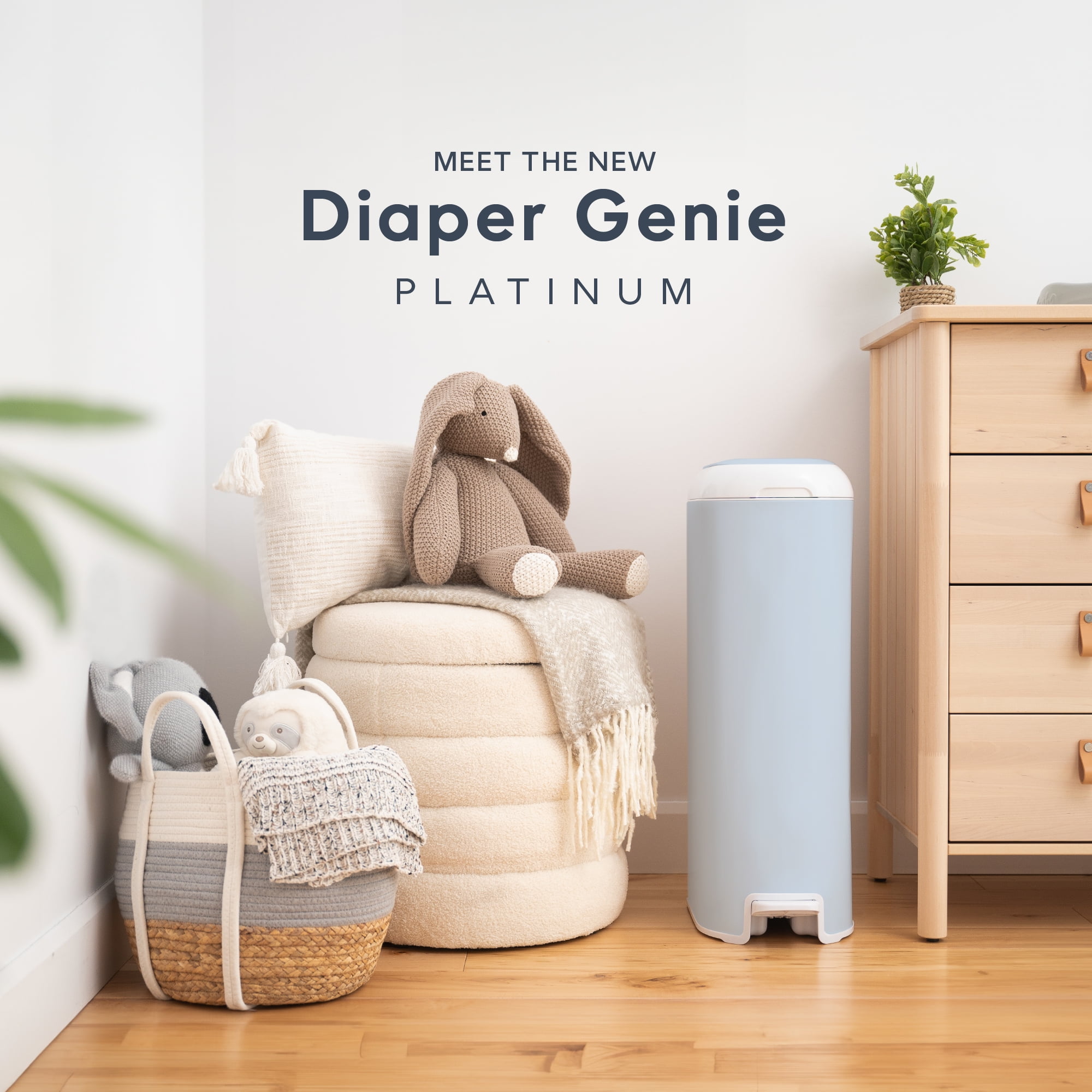 Diaper Genie Platinum Pail, Stainless Steel Diaper Pail, Includes 18 Refill Bags, 5 Month Supply, Glacial Blue Keep your nursery smelling fresh – our new pail has odor-locking clamps that help prevent odors from escaping for ultimate odor control. Durable – Made of stainless steel. Soft-closing lid – less noise in the nursery while baby is sleeping. Ultimate convenience – pail has a foot pedal for easy one-handed operation. Wide disposal opening and capacity of up to 47 newborn diapers. Long lasting refill – pail comes with Easy Roll™ refill that holds up to 846 newborn diapers and lasts up to 5 months. Easy tear off bags – one Easy Roll™ refill contains 18 bags that are perforated, on a roll for convenient use and disposal. Better for the environment – one Easy Roll™ refill is equal to 3 Diaper Genie® round refills, which means less plastic being used. Available in 4 different colors. Compatible With: Easy roll refill