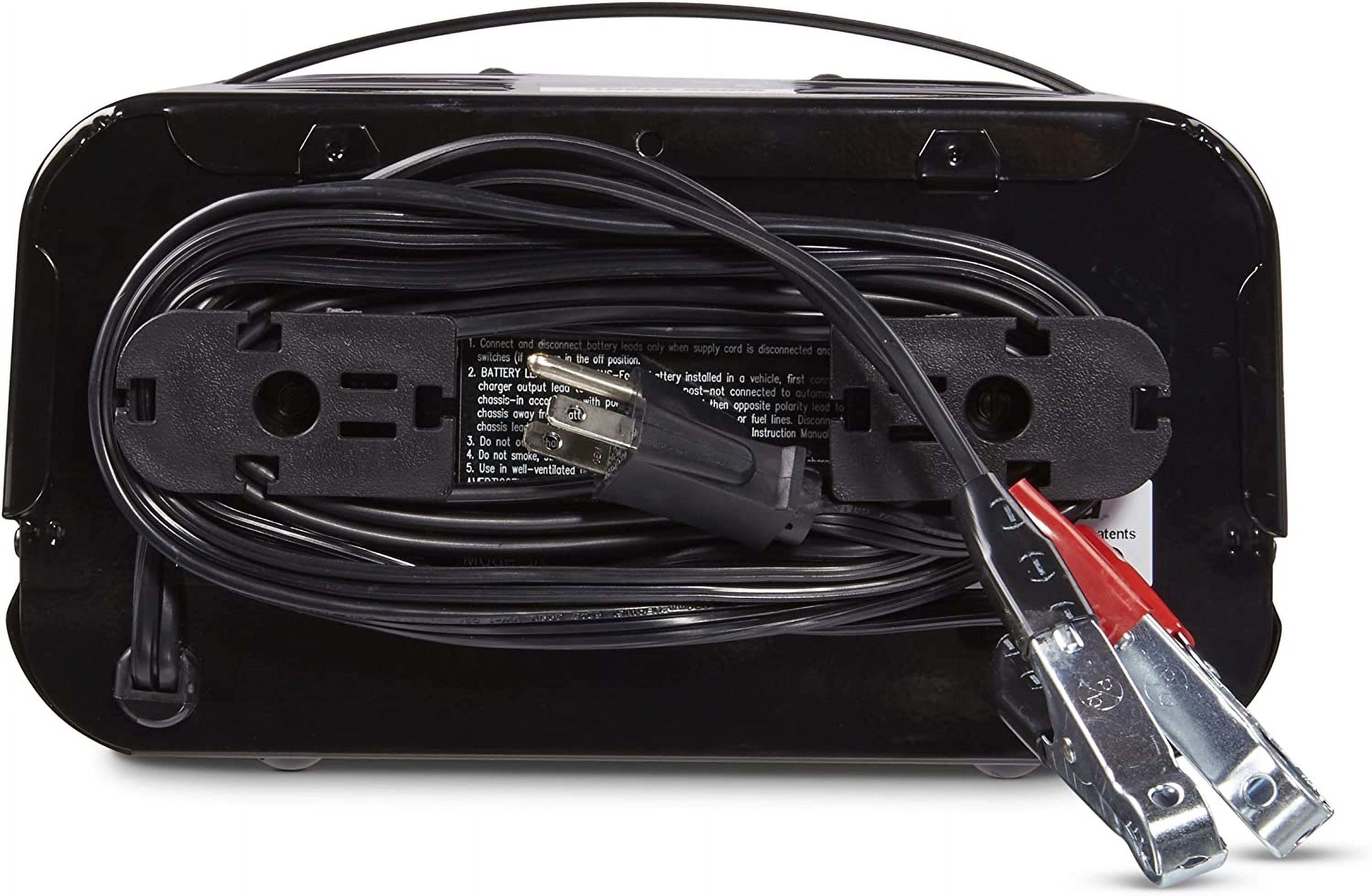 This easy-to-use, portable charger uses Intelligent Charge Technology, ensuring high performance for all your 12-volt battery charging needs. LED indicators and LED buttons allow you to conveniently select your rates. Plus, its fully automatic, microprocessor-controlled, multistage charging features provide added precision and monitoring for safety and extended battery life. This charger has a rugged steel case that stands up to outdoor use. It features Reverse Hookup Protection to automatically shut off the charger if clamps are incorrectly connected. Get going right away with 50 amps of jump-starting power, and speed up the battery charging process with the 10-amp quick charge function.