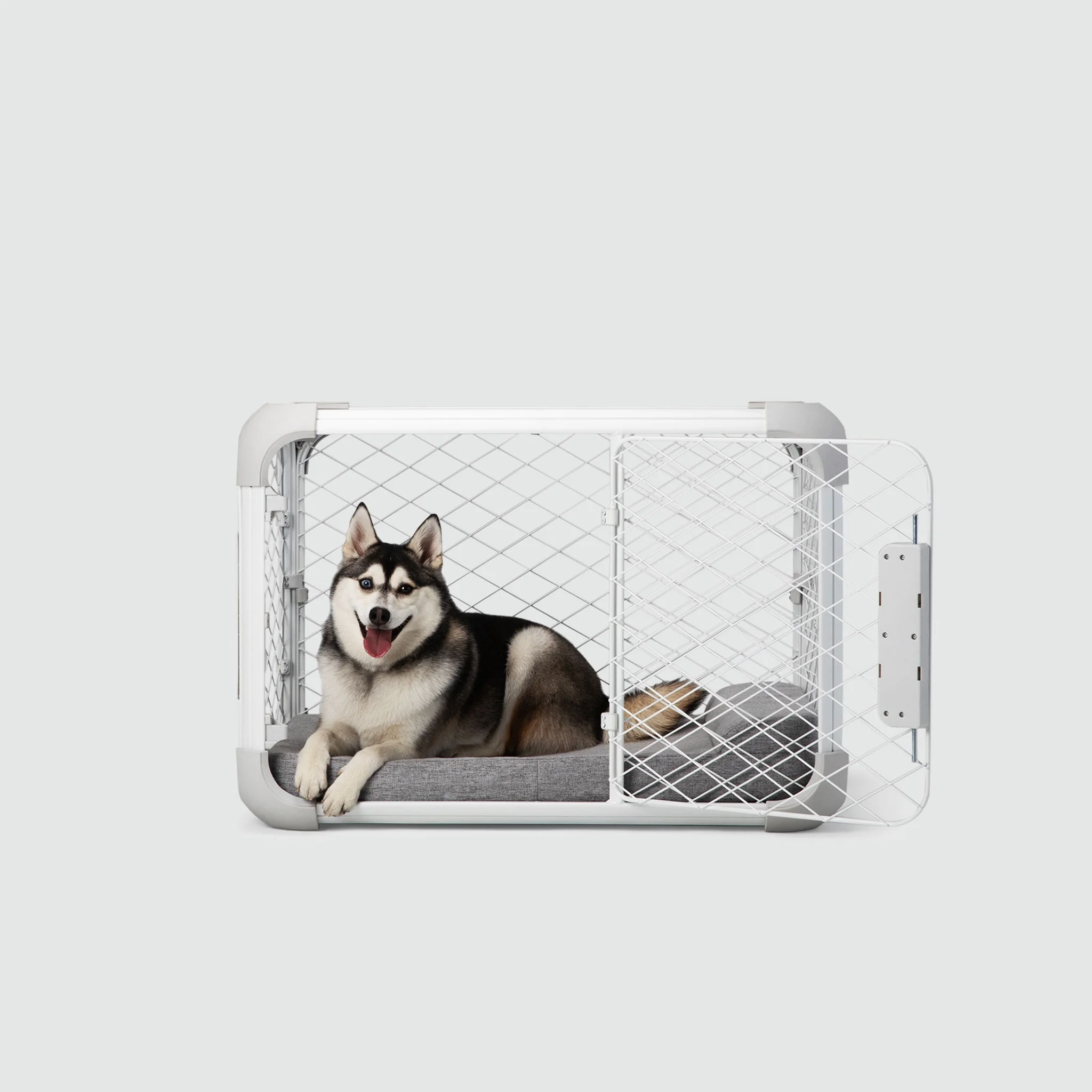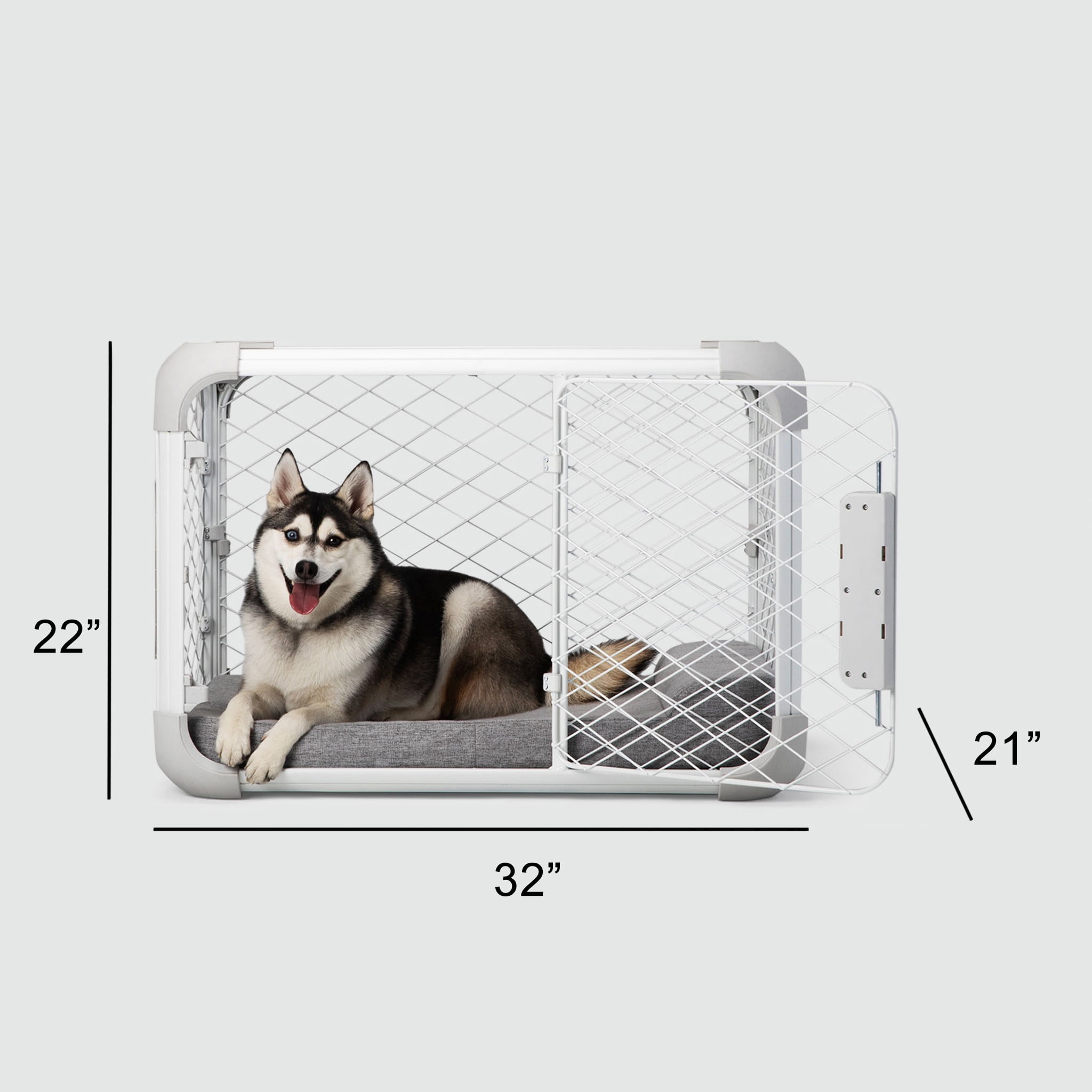 PREMIUM INDOOR DOG CRATE: Evolv is a slim, modular dog crate with a customizable design that seamlessly blends into any home decor, offering both a functional indoor dog crate and a stylish piece of dog crate furniture. MODULAR fCRATE: Evolv features an innovative, customizable design that gives pet parents the option to reposition up to 4 doors to fit any space or give your pup more freedom as needed. Purchase includes 2 doors; additional doors sold separately. PERFECT FOR ALL LIFE STAGES: Evolv includes a puppy divider, allowing you to adjust the crate’s size as your furry friend grows. This ensures a comfortable, right-sized space at every stage while preventing accidents and supporting effective crate training. SAFE AND RELIABLE: Evolv pet kennels feature dual lock doors that keep your furry friend securely inside while being finger-friendly for pet guardians. Our signature diamond-shaped mesh helps prevent pinching and jaw and paw entrapment, and rounded corners eliminate sharp edges. Evolv is also free from phthalates and heavy metals for added peace of mind.