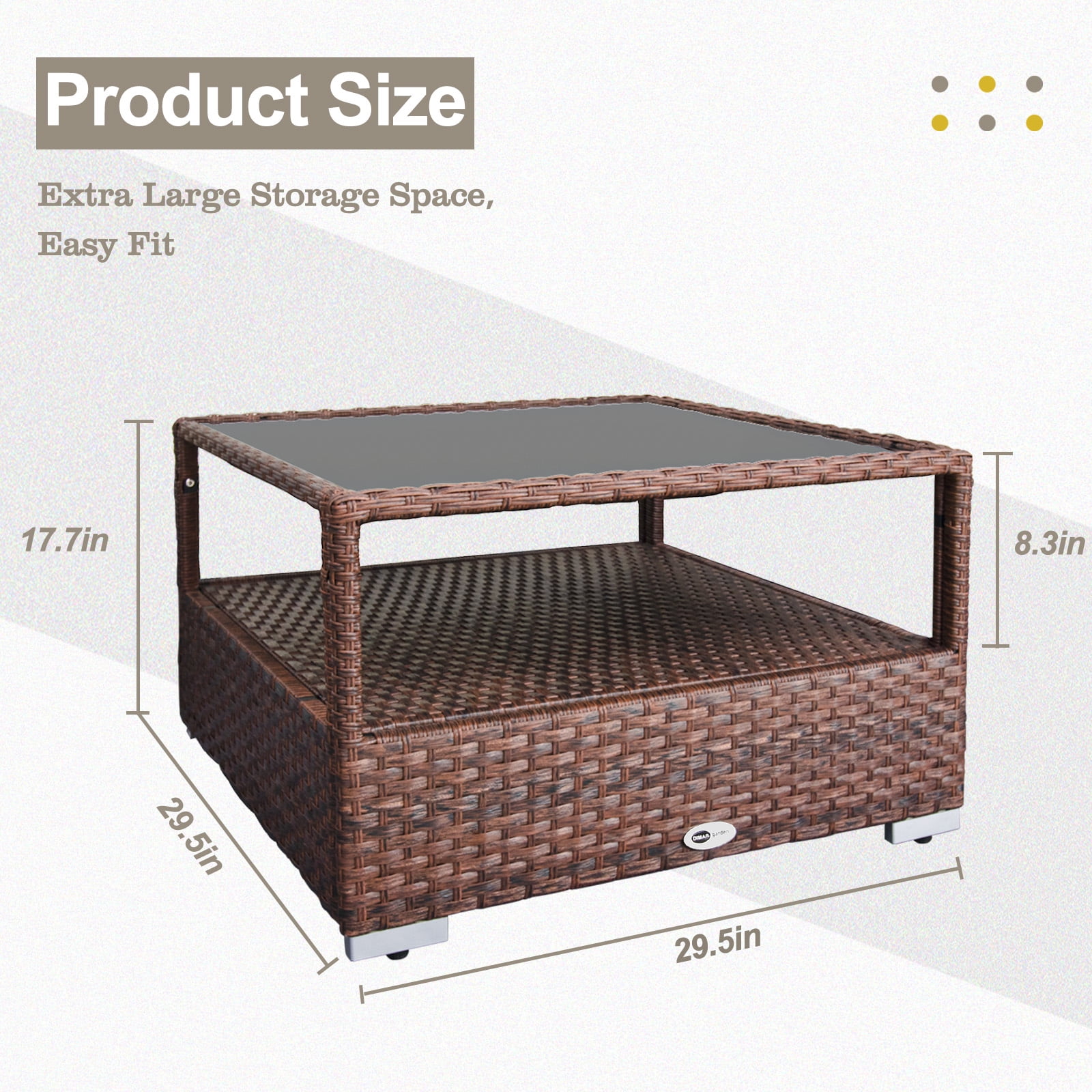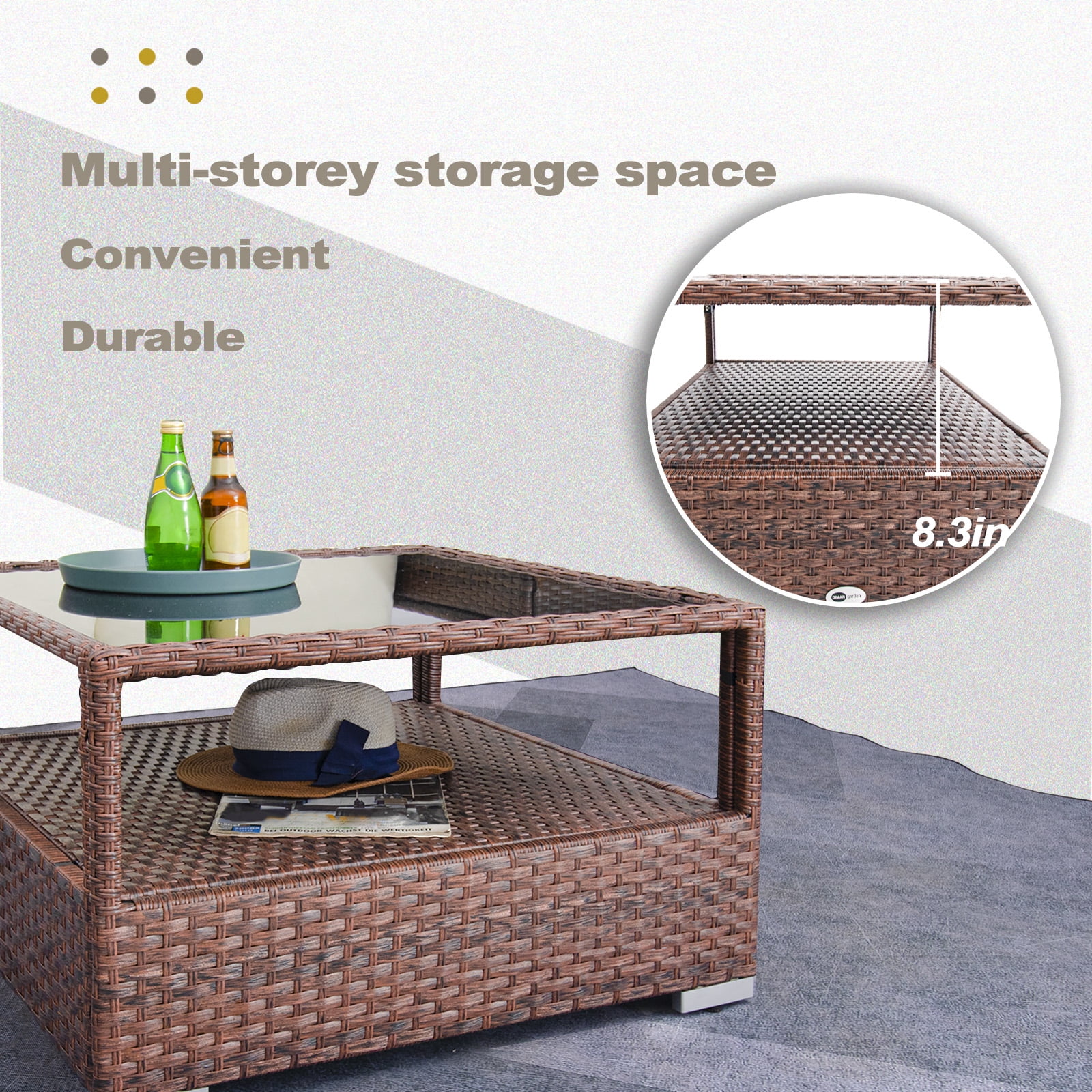 DIMAR GARDEN Outdoor Wicker Coffee Table with Glass top and Storage, Mixed Brown