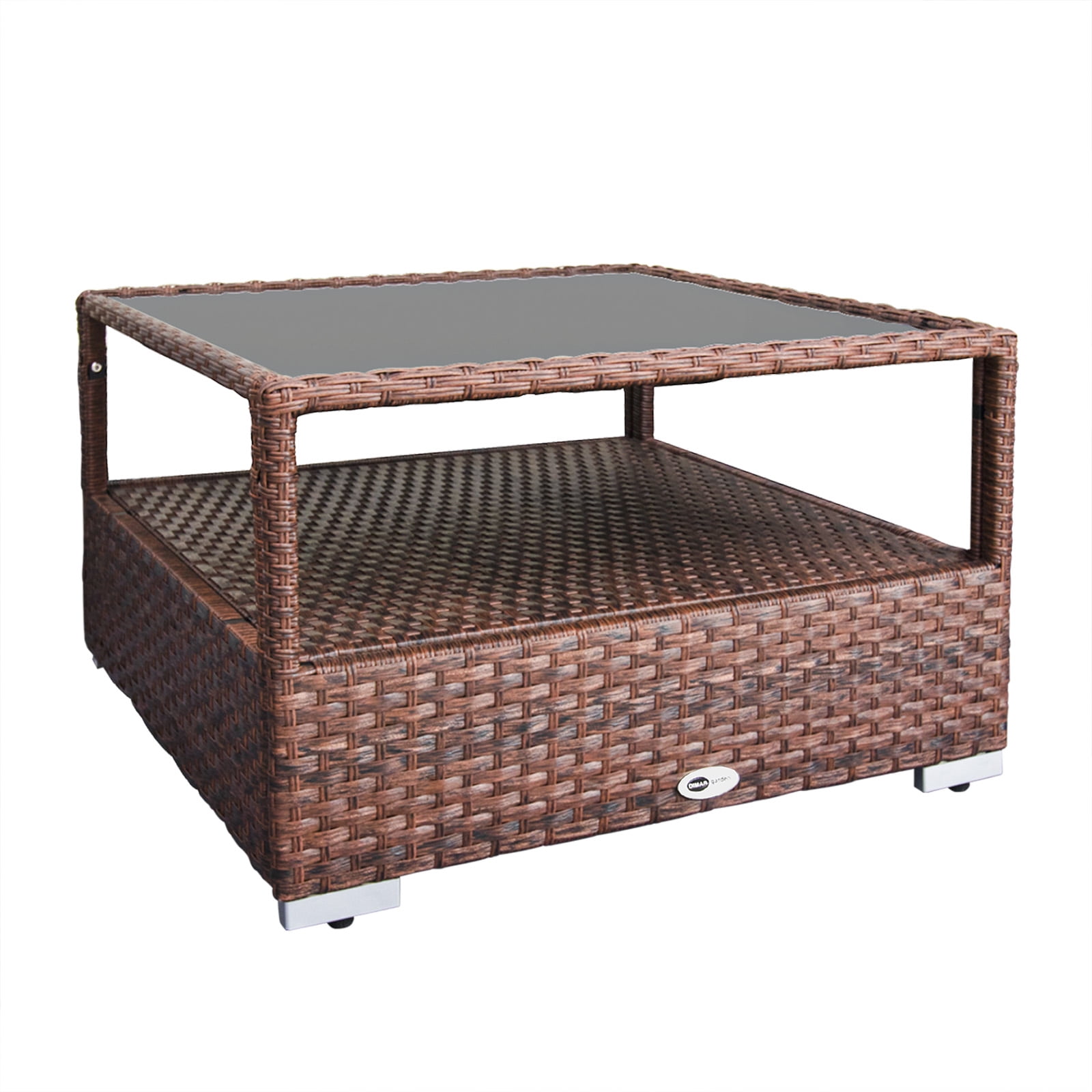 Product specification: Product Size: 29.5L x 29.5W x 17.7H Inch Product Weight: 28.5lbs Weight Capacity: 50 lbs Color: Mixed Coffee/Black Material: PE Wicker, Steel Frame Finish: Rust-resist powder-coated Wicker Finish: Natural Product Feature: [High Quality Material]: outdoor patio wicker coffee table with brand new PE rattan wicker, high quality stainless steel of screws, UV-Resistant for 2000 hours, Rust-Resistant over 2000 hours, all-Weather patio rattan furniture. [Multiple Functions]: outdoor rattan furniture coffee table is suitable for outdoor/indoor terrace, lawn, yard, backyard, porch, garden, poolside and balcony. [Easy to assemble and Maintain]: outdoor coffee table with the assembly instruction, it is easy to assemble and maintenance. [Free combination]: outdoor coffee table suits perfectly to outdoor sofa, chair set, chaise lounger. [Extra Storage] Double Levels Design for extra spaces
