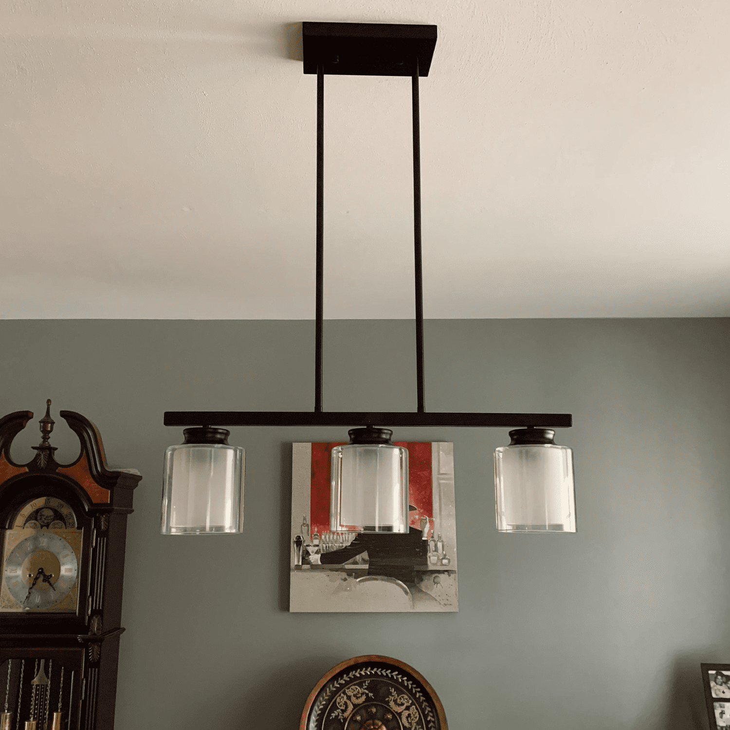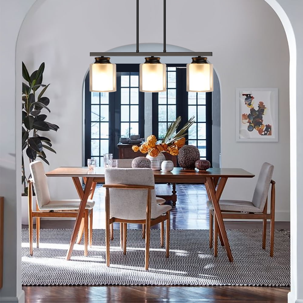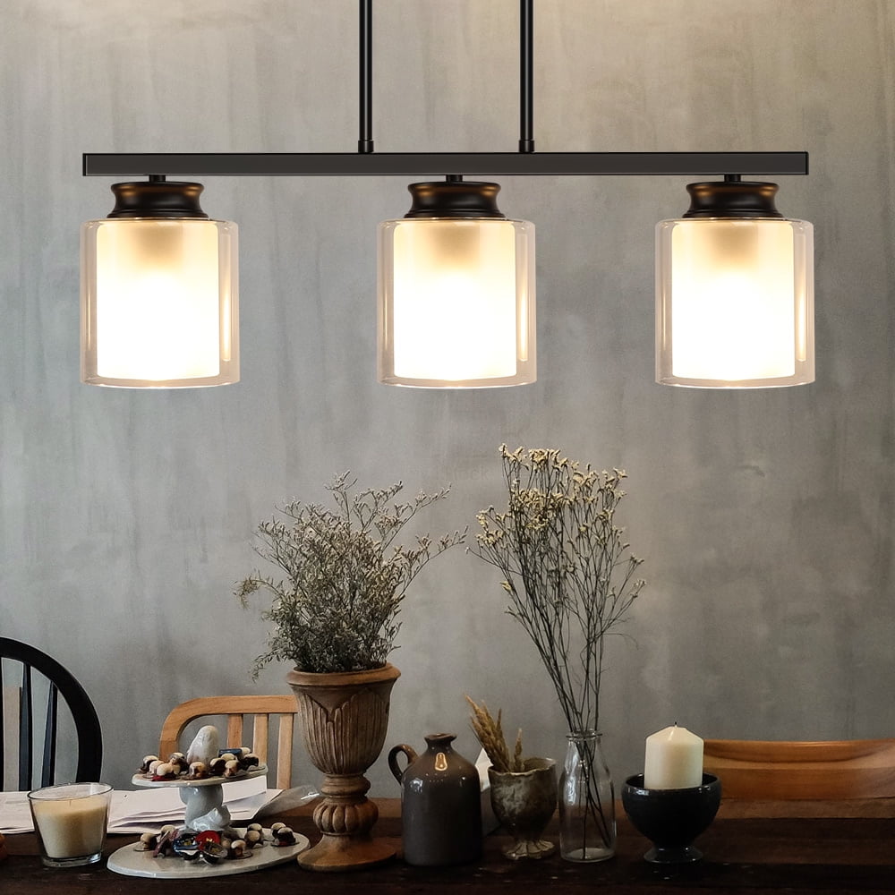 DingLiLighting 3 Light Industrial Kitchen Island Lighting Glass Linear Chandeliet Black Track Pendant Light Fixture for Kitchen Island Living Room Dining