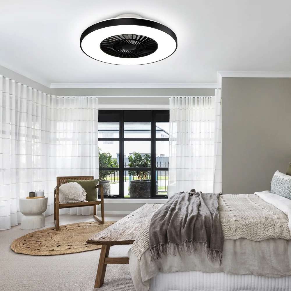 DINGLILIGHTING Modern Bladeless Ceiling Fan with LED Light and Remote, Black, Contemporary, Indoor