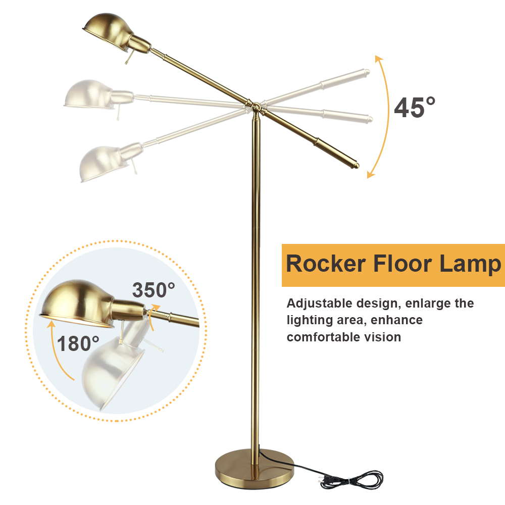 Why choose US Focus on LED Lighting over 12 years, owned factory, professional R&D and support team High Quality performance Super Bright but Energy Saving High Color Reflection, reflect real color and Protect your eyes Quick Response Customer Service Elevate your living space with the DingLiLighting Pharmacy Floor Lamp. This adjustable lamp features a sleek, mid-century design, complements a variety of home decor styles. Crafted from high-quality metal, sturdy and rust-resistant construction for long-lasting use. The included 9W LED bulb provides a warm, ambient glow while saving up energy costs compared to traditional bulbs. With an adjustable height from 33.3″ to 56.69″, this versatile lamp can be easily positioned to suit your needs. Backed by a 12-month warranty and professional customer service, this floor lamp is a stylish and practical addition to any room. Swing Arm Design: The adjustable floor lamp combines modern design and retro inspiration, making this mid-century modern floor lamp not only illuminate your space, but also add an artistic touch to your life. Adjustable Floor Light: The low-profile design in an antique brass finish has a boom-style arm that can be adjusted to cast light at a variety of angles. A sleek metal shade creates ample downward illumination in your space. Height Adjustable: This gold floor lamp could adjust height from 33.3″ to 56.69″. Product Dimension, Base is 8″ wide. Lamp head is 8.07″ wide x 32.75″ high. Weighs 11.72 lbs. High Quality Material: Constructed of high-quality metal, sturdy and rust-resistant for years of use. The heavy metal base ensures its stability, preventing it from being knocked over by kids or pets. Soft Lighting: E26 socket bulds Include(universal socket). This floor lamp provide comfortable warm glowing for your interior design, to your family, protects the health of your eyes and your family. Energy Saving: Compared with traditional bulbs, LED bulb can save more energy, providing you a significant savings on your electrical bill. Wide Application: The floor lamp easily tucked behind or on the side of the sofa, your bedside, to add a variety of styles including art and high-end country style to your home. Customer Service: We provide a 12-month warranty and professional customer service,If you have any questions about our product or our service, please feel free to contact us. Upgraded Package: Our packages adopt foam shock-absorbing packaging, in order to reduce damage caused by transportation. If you received damage package or damage item, please contact us. We will provide solution as soon as possible. Product Details: Brand DingLiLighting Color Golden Material Metal Style Modern / Farmhouse / Industrial Light fixture form Ceiling