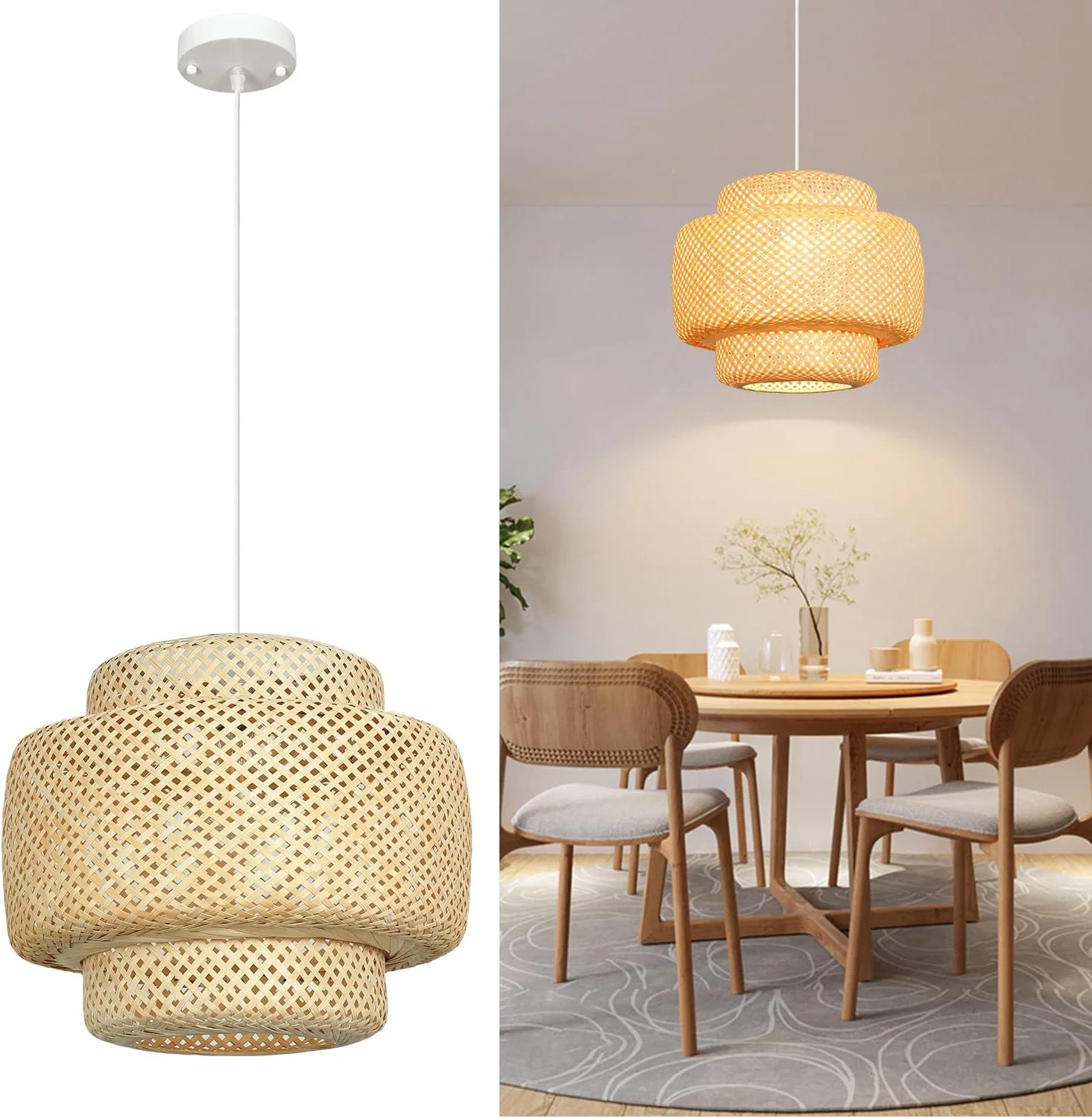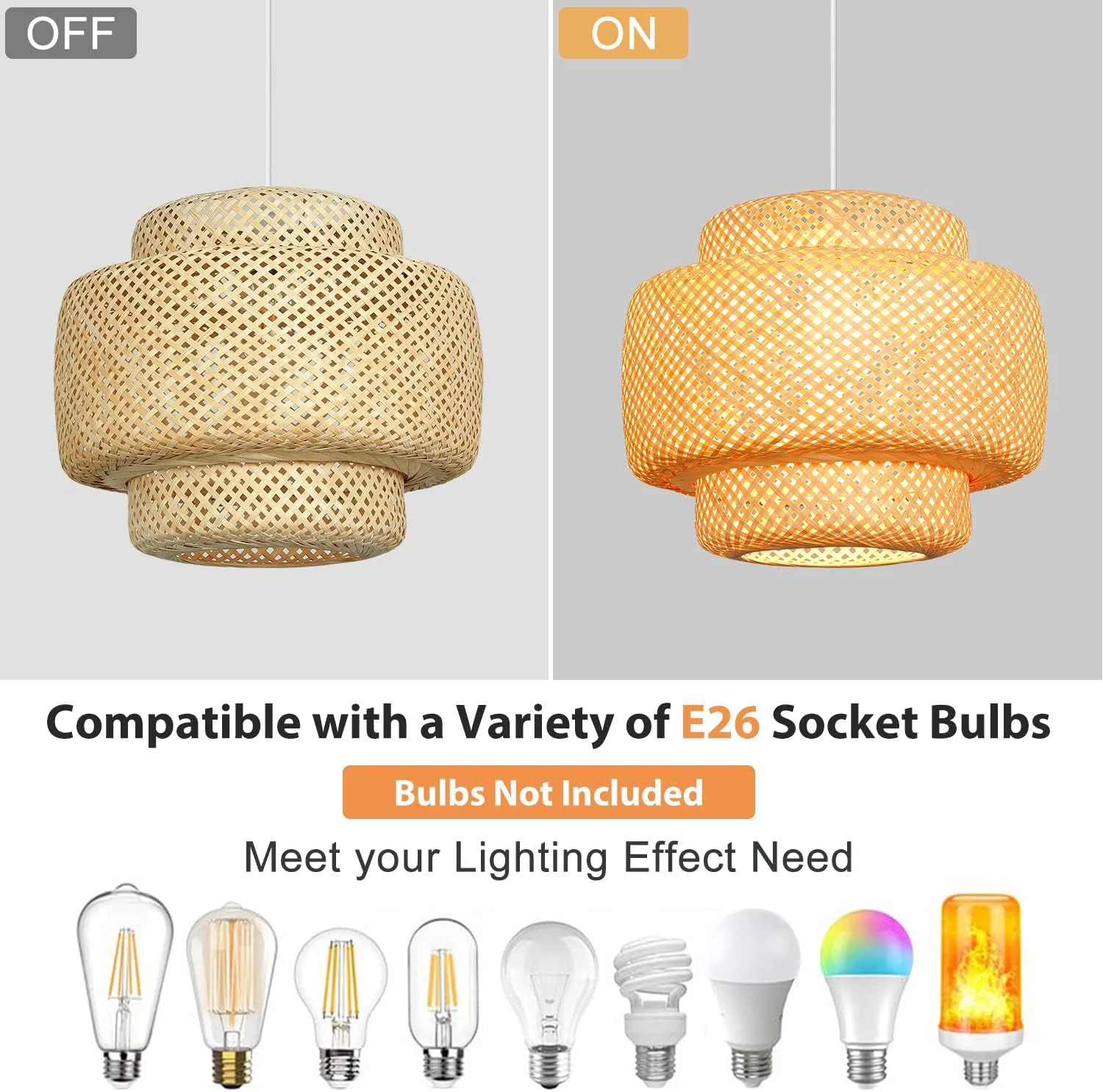 DingLiLighting Rattan Pendant Light Wicker Ceiling Fixtures Weave Chandelier Pendant Shade for Dining Living Room Kitchen Island Vintage 1 Light, E26 socket