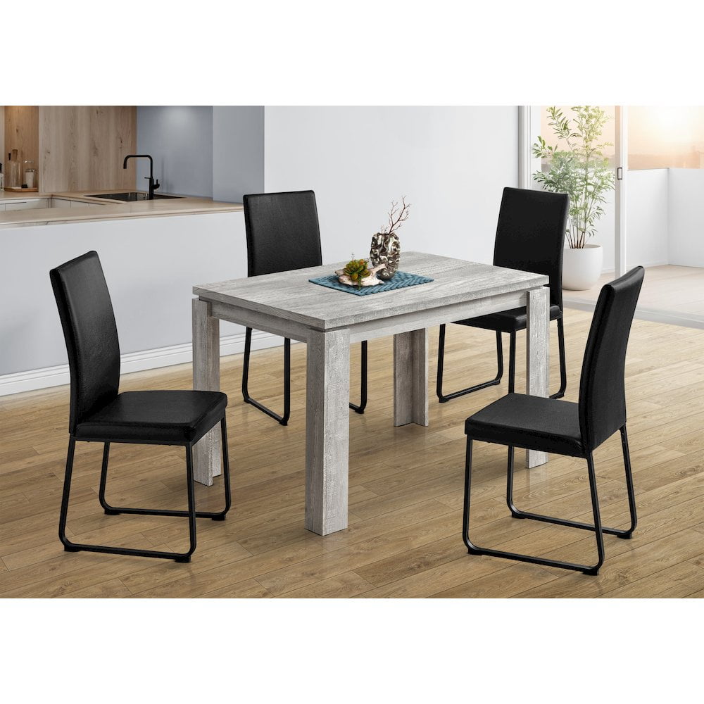 Looking for rustic? Looking for contemporary? How about both? This grey thick-paneled kitchen table features a unique reclaimed wood surface to offer you the perfect farmhouse style for your new place. The modern dining table also features open block shaped legs to keep everything nice and sturdy. When it’s time to make a statement in your home, count on this kitchen table to do the job in a casual or formal dining setting. Chairs sold separately. Features: Finish: Gray Materials: Particle Board, Hollow-Core, Laminate, and MDF Reclaimed wood look dining table in a trending gray wash finish with thick, block-style legs to keep everything in its place during your large gatherings The robust panel construction of the gray reclaimed look table top makes for the perfect farmhouse dining table Sit comfortably on this kitchen table that seats up to 4 people Compact size dining room table fits perfectly in a casual or formal dining area in small homes, apartments or condos Specifications: Product Dimensions: 30.5″ H x 47.25″ W x 31.5″ D Product Weight: 44 lbs Top Dimensions: 1.25″ Thick Weight Capacity: 132 lbs