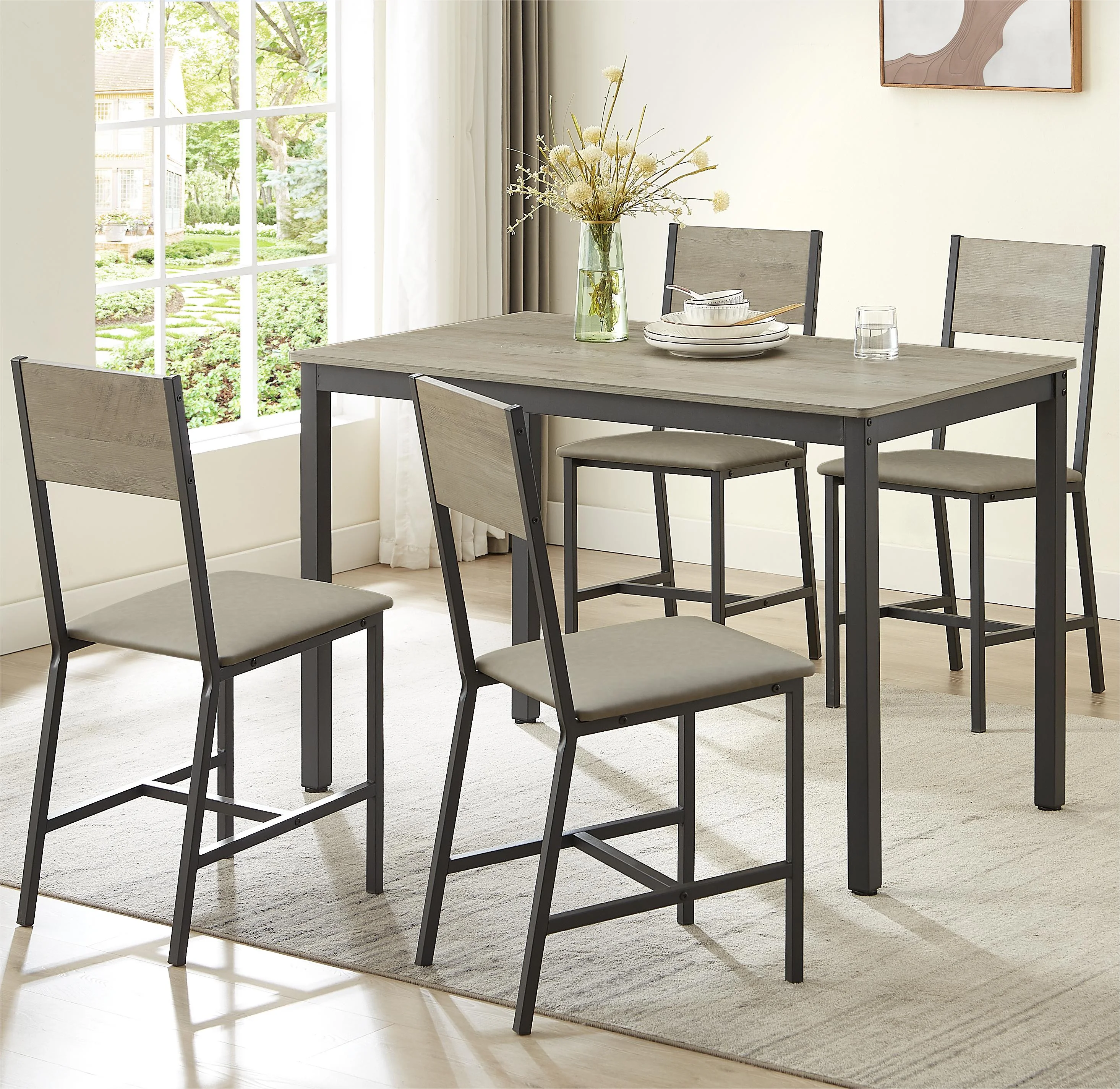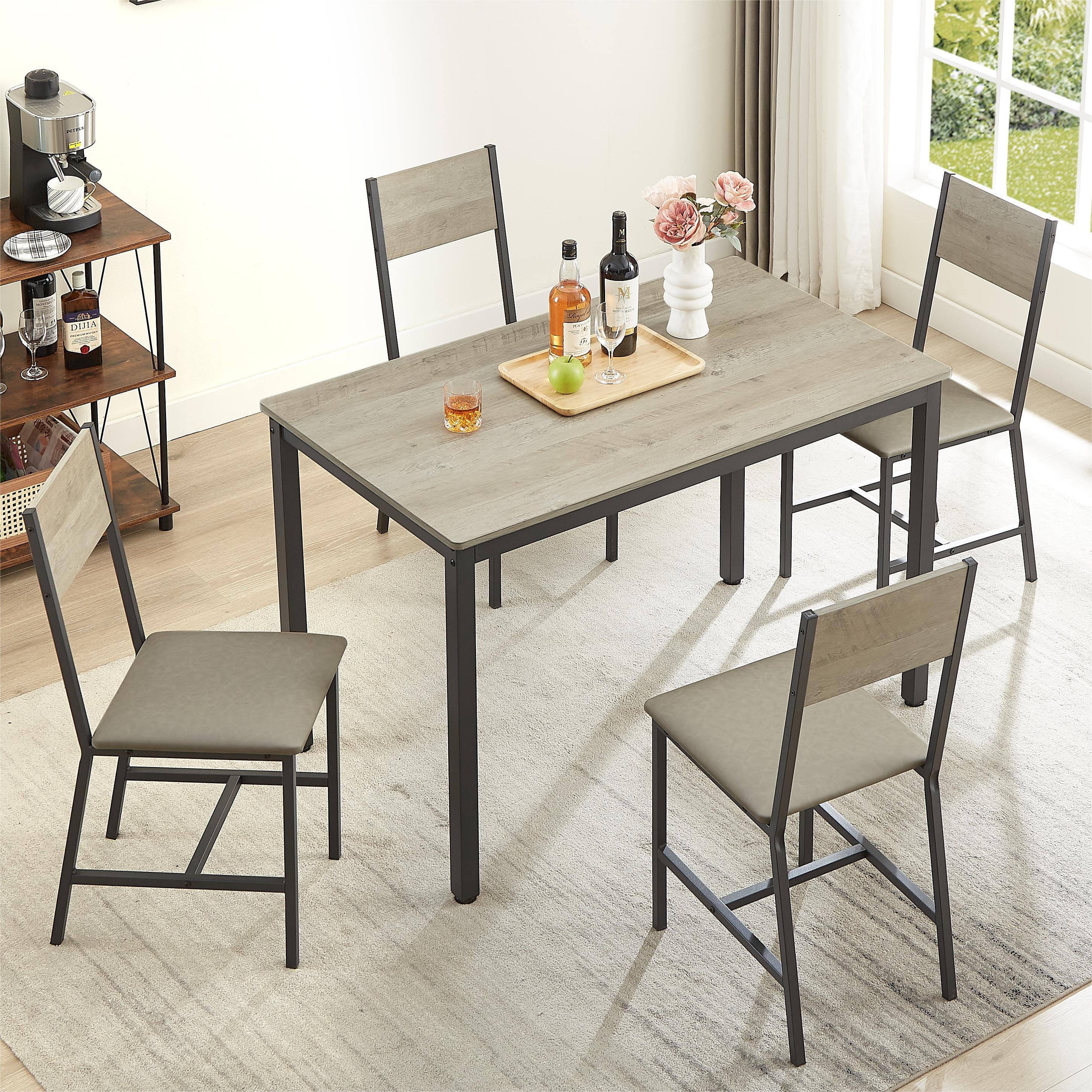 Dining Table and Chairs Set of 4, 5 Pieces Kitchen Table Set with 4 Upholstered Chairs for Small Space, Apartment,Grey