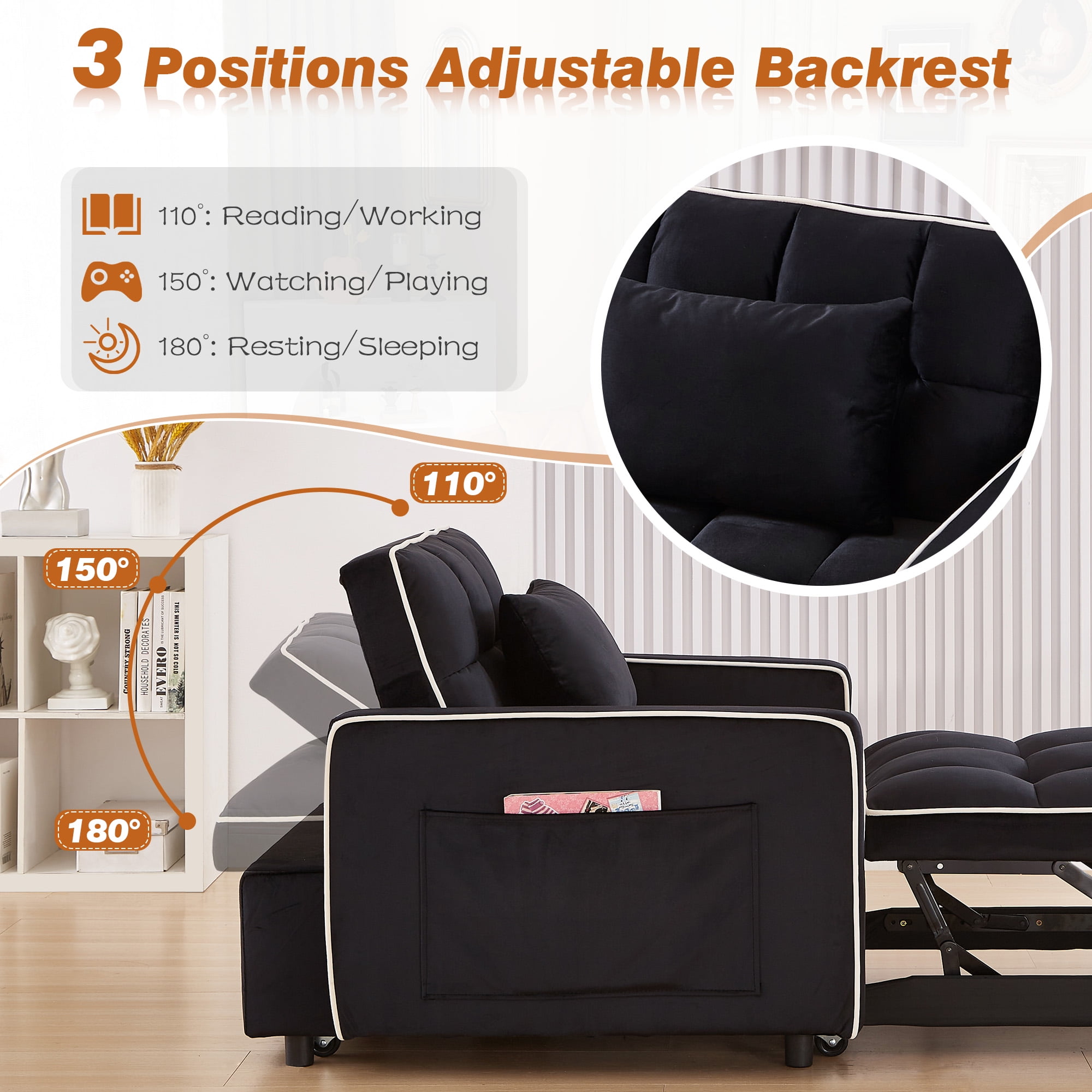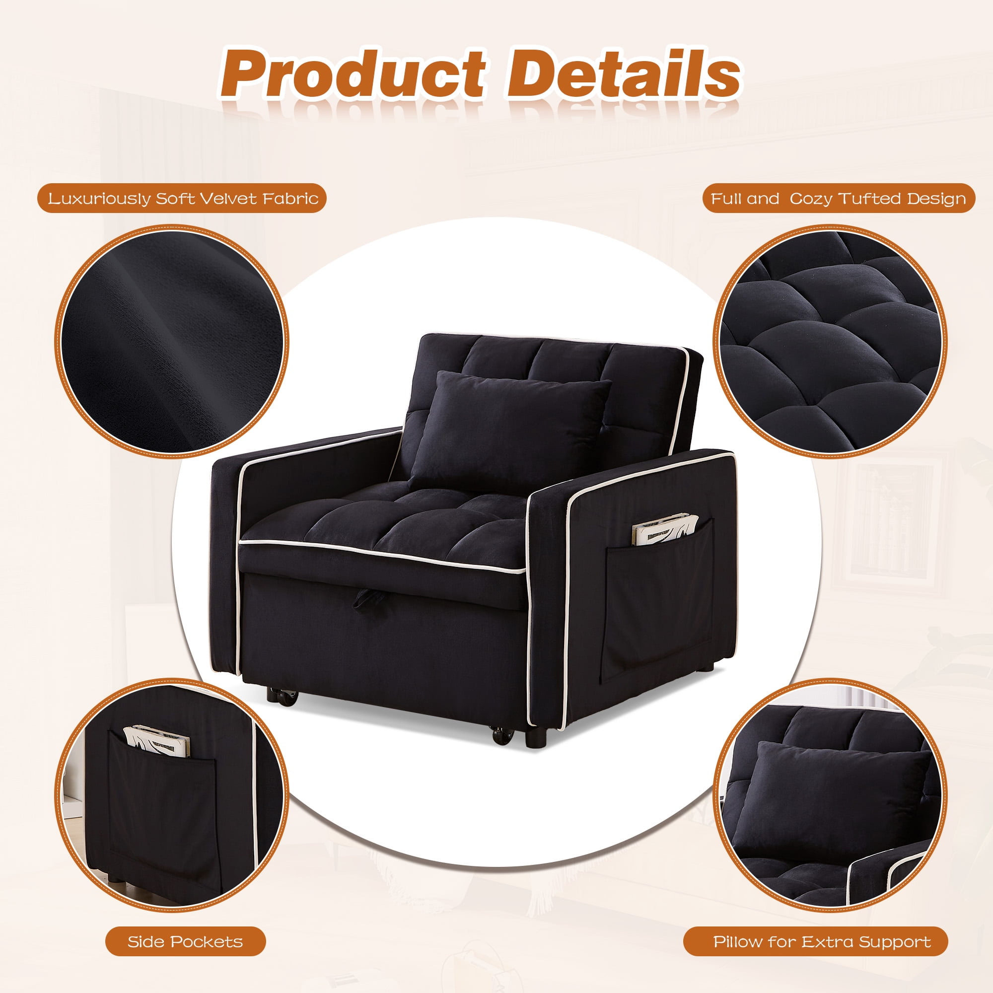 Dinosisco 3-in-1 Convertible Chair Bed, Sleeper Chair Lounge Chair Indoor, Modern Single Pull Out Couch for Living Room, Black Velvet