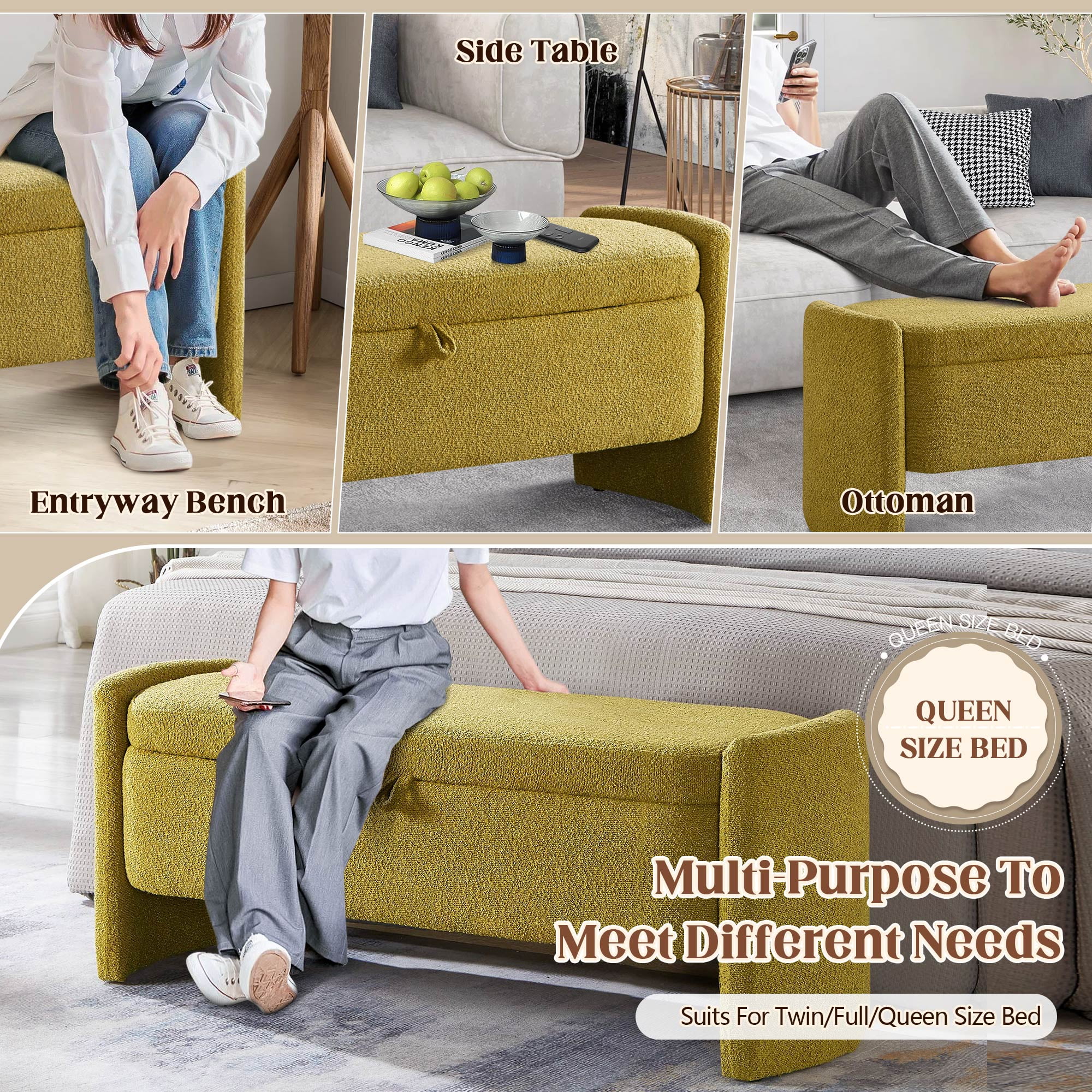Lunale 41.73″ End of Bed Storage Bench, Teddy Upholstered Storage Ottoman Benches for Bedroom, Green