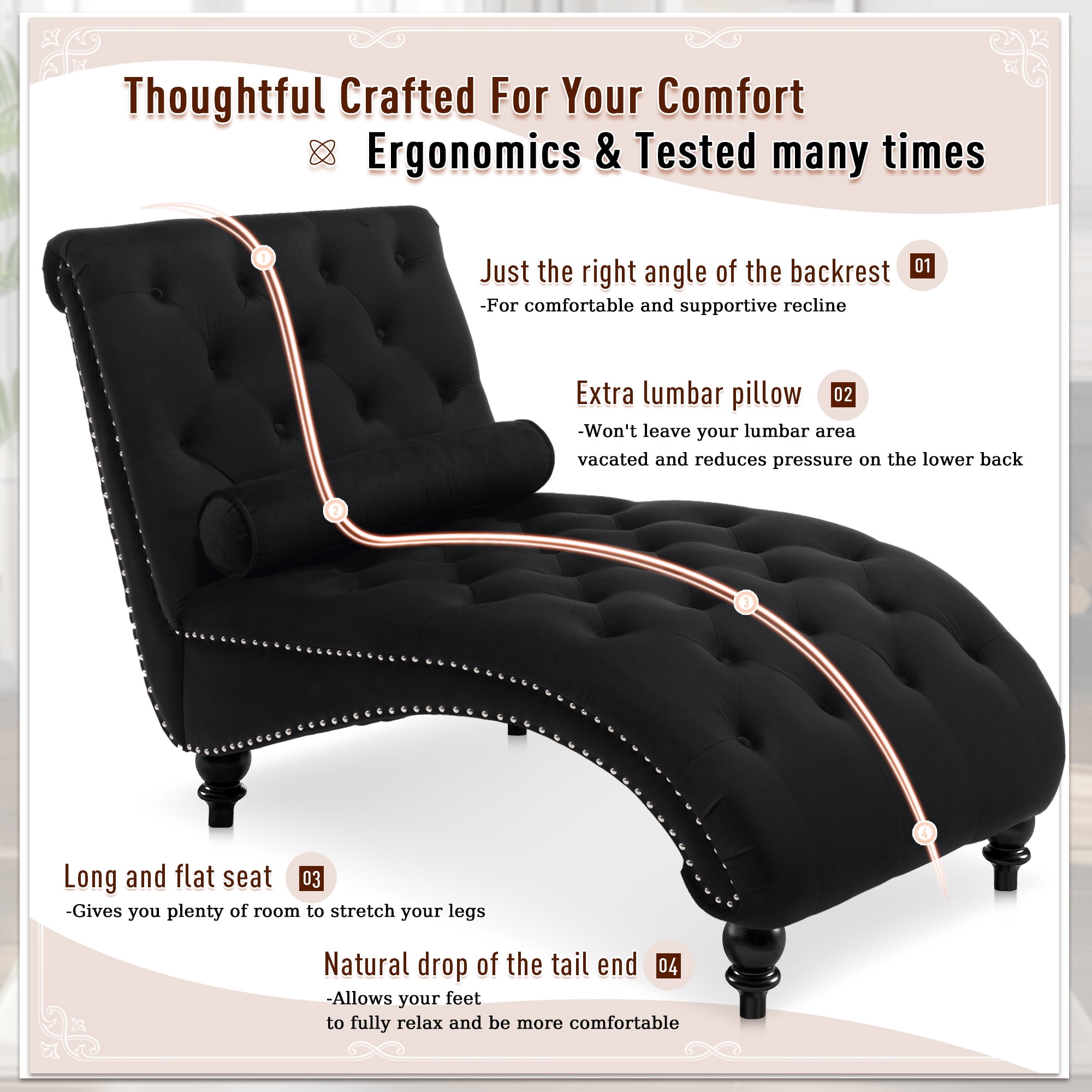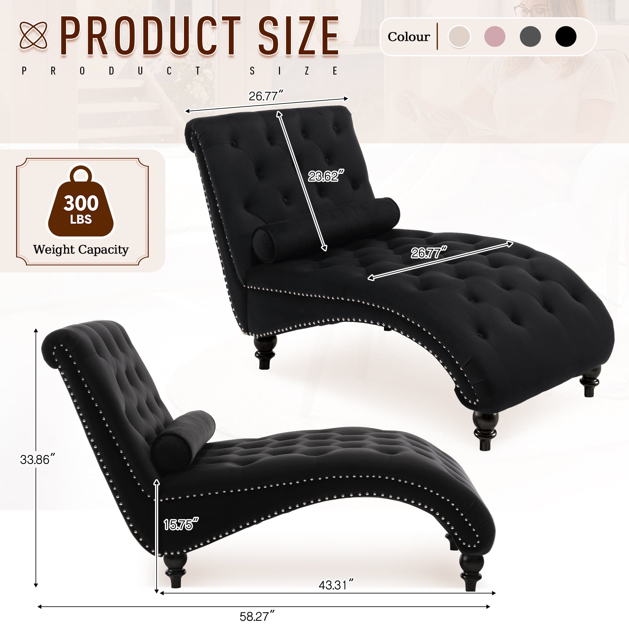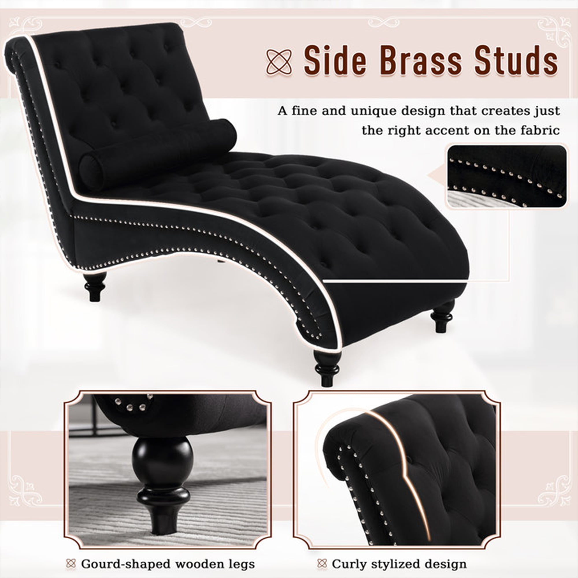 Lunale Chaise Lounge Indoor, Tufted Upholstered Accent Chair for Living Room, Black Velvet