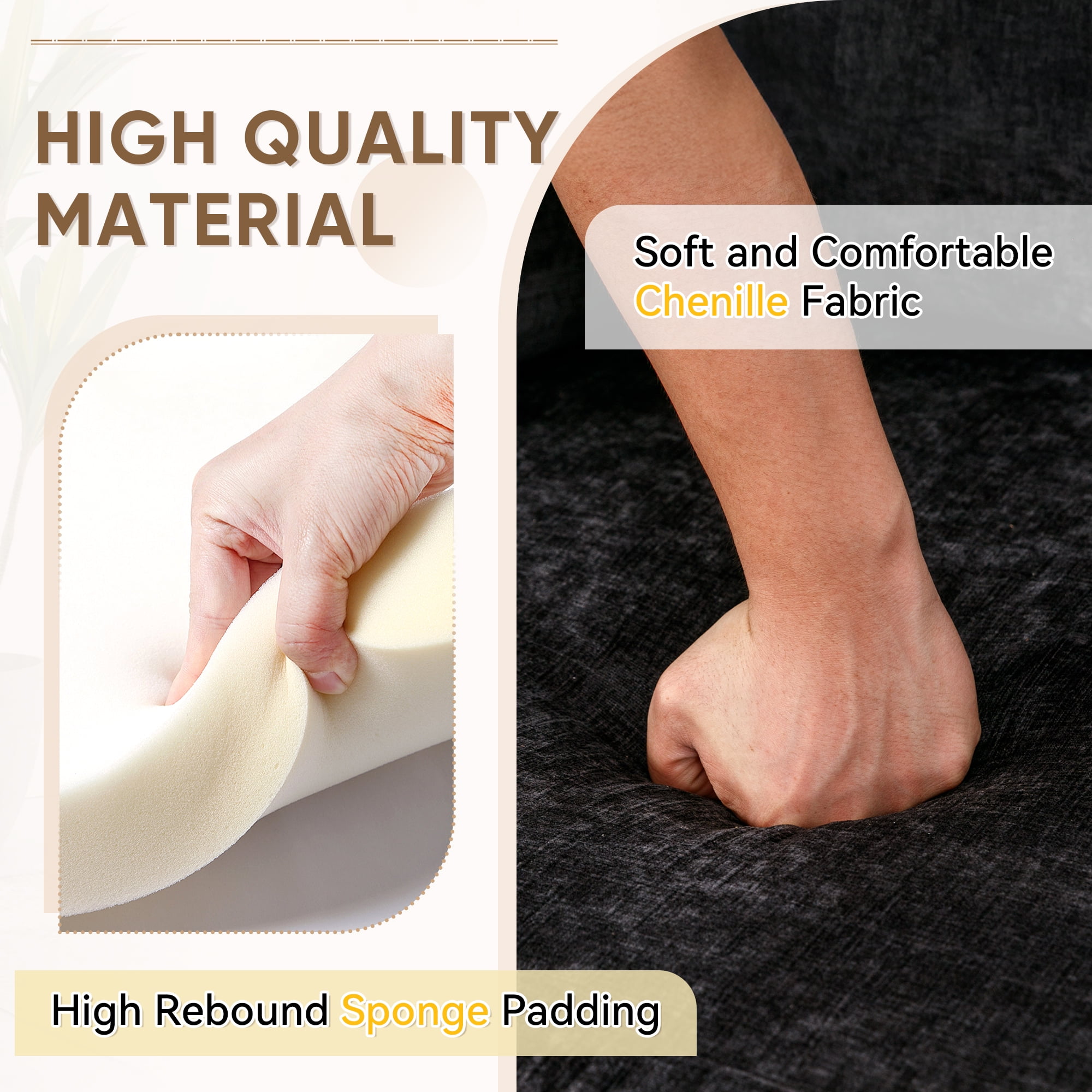 Features: Made of high quality, skin-friendly and soft chenille fabrics 360 degrees free and smooth rotation, adding fun to your home life Extra wide seating area allows you to enjoy and relax as you wish Equipped with storage ottoman, let you sit more comfortable at the same time can also be used to store small objects Thick cushion filled with high rebound sponge, not tired of sitting for a long time Sturdy wooden frame and metal base, strong support and not easy to deform Three pillows, seat cushion and backrest are removable for easy cleaning Easy to install, comes with installation instructions and necessary tools Specification: Dinosisco Swivel Barrel Accent Chair with Ottoman Included: Three Pillows and One Storage Ottoman Color: Gray/Black/Yellow/Green Upholstery: Chenille Frame Material: Wood + Metal Seat Padding Material: Foam Removable Seat Cushion: Yes Product Care: Weekly light brushing with a vacuum cleaner or brush, avoid direct sunlight to avoid color fading. Product Size: Overall: 36.6″L x 39.8″W x 34.3″H Seat Depth: 26.8 in Seat Width: 29.5 in Seat Height: 18.1 in Seat Cushion Thickness: 5.7 in Backrest Pillow: 18.1″H x 22.5″W Side pillows: 12.6″H x 12.6″W Weight Capacity: 440 lbs