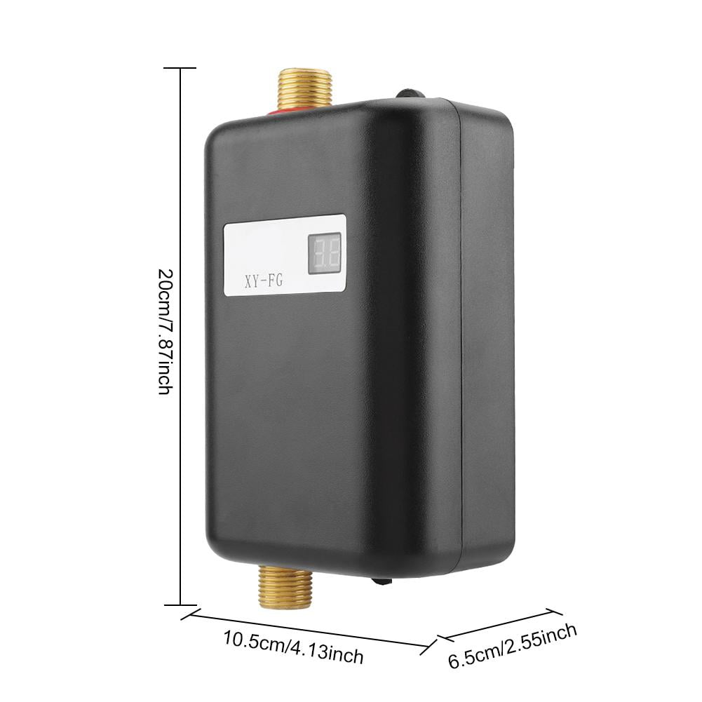 Features: This is a water heater for the application of changing the cold water into hot water and it will meet your various needs such as used in kitchen, bath room, public restroom, etc. It is a high efficient water heater with compact size to produce the hot water very quickly. LCD digital temperature display. Freely adjust water temperature by water , simple operation. Safe heater, electricity saving, water saving, no pollution, no exhaust gas. Stainless construction with mini design, it is durable, elegant and fashionable. Specifications: Material: Stainless Steel Shell Color: Black, Golden, Red(optional) Power: 3000W Current: 25-32A Voltage: 110V Rated Frequency: 60HzRated Pressure: 0.4-0.6Mpa Waterproof Grade: IPX4 Temperature: 30-55℃(Considering the use environment in severe cold areas may not the maximum temperature of 55℃) Installation wire diameter: 1.5-2.5mm² copper wire Water pipe interface: G 1/2″ interfaceSize: Approx. 20 x 10.5cm / 7.87 x 4.13inch Package Included: 1 x Water Heater 2 x Fixing Screws 2 x Screws Protector 1 x Manual Note: 1. Please note this item should get the water first and then link the electricity when installing. 2. You’d better install this item vertically to ensure long service time. 3. Please kindly make a note if you need any adapter. 4. Monitors are not calibrated same, item color displayed in photos may be showing slightly different from the real object. Please take the real one as standard. 5. As the space of the inner tank of the water heater is relatively small, when the water is closed, the remaining temperature of the water in the inner tank is still rising. Turn on the water again, the temperature will be warmer, after a few seconds the temperature stabilizes again. 6. The heating of the product is adjusted by the water regulating valve or the faucet switch, the temperature is low when the water is large, and the temperature is high when the water is small. Therefore, the product can be used for bathing in spring, summer, and autumn, but the and temperature of bathing water in winter cannot be reached in some areas. Therefore, it is recommended that the product be washed in winter for hands, dishes, face, etc. 7. The temperature control of the water heater is controlled by the amount of water inlet. The larger the inlet water , the lower the temperature, and the lower the inlet water , the higher the temperature.