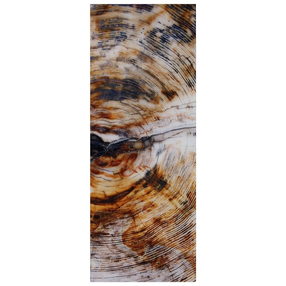 This artful detail of a fossilized wood cross-section shows how wonderful and beautiful natures’ creations can be. The tree this came from had been alive for literally hundreds of years and can decorate your walls for many more. Our Vetro de Arte collection is reverse UV printed on frameless free floating tempered glass. Each employs a unique pre-installed easy to use hanging assembly. Hang this work with its companion “Impact A”.