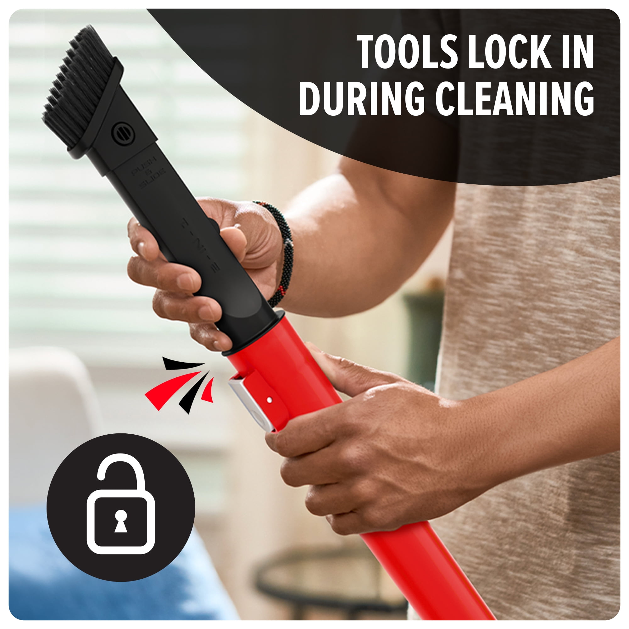 CORD REWIND: The 25 ft. cord automatically retracts with the touch of a button for easy storage REMOVABLE WAND: Provides continuous suction and extra reach to clean more than just floors POWERFUL MULTI-FLOOR SUCTION: Provides an efficient deep clean in every room POWERPASS™ TECHNOLOGY: Reduces vacuuming time by helping prevent dirt and dust from scattering across hard floors EXTENDED LIFE™ FILTRATION: Get longer-lasting powerful suction with the high-performance filtration system that reduces dirt and dust particles from being re-released back into the air CLICK-LOCK: Tools are securely locked into place, so they won’t fall off or come loose in the middle of cleaning. Dirt Devil Multi-Surface Rewind Bagless Upright Vacuum Cleaner, UD76810V, New, 14 lbs
