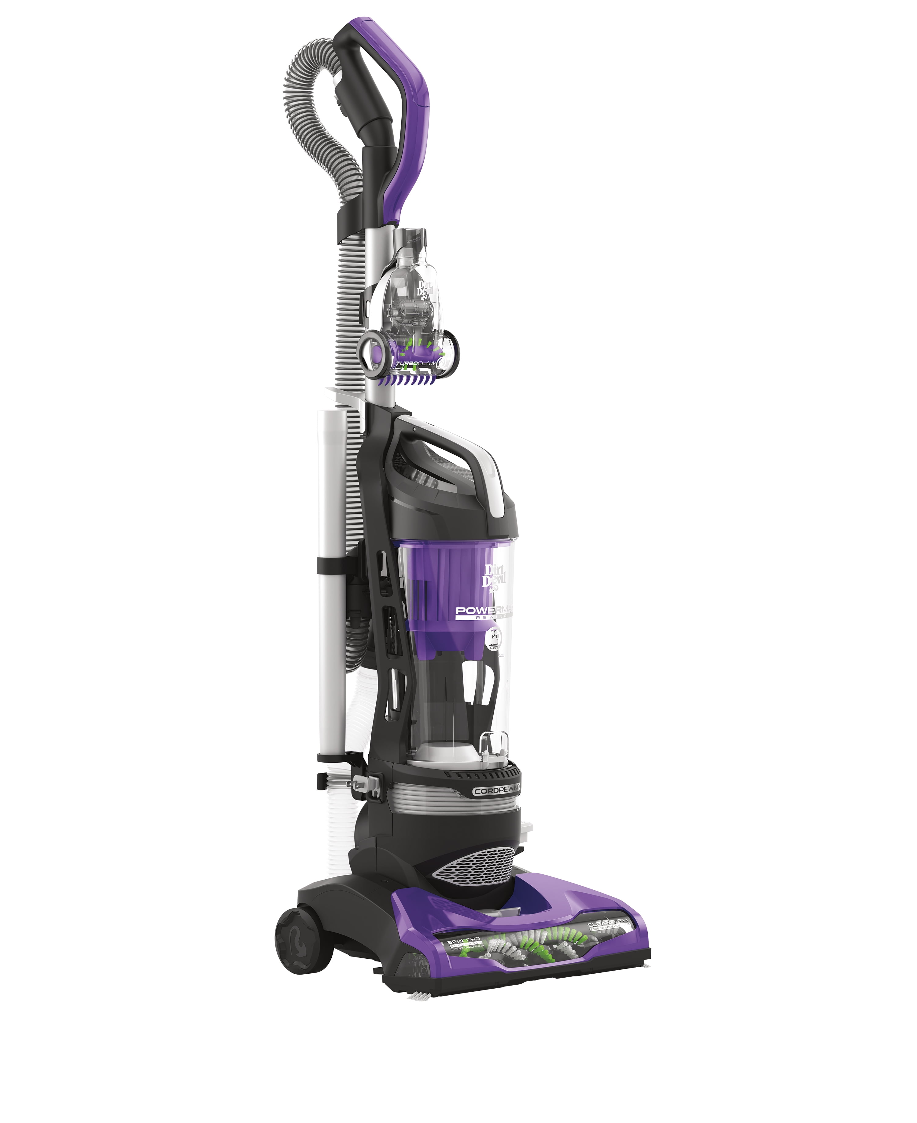 Dirt Devil Bagless Upright Vacuum, Power Max Rewind, MultiSurface with Turbo Claw Pet Tool, Powerful Suction, Dusting Brush, Extension Wand, Crevice Tool, Odor Reduction & XL Dust Cup, Purple UD78710