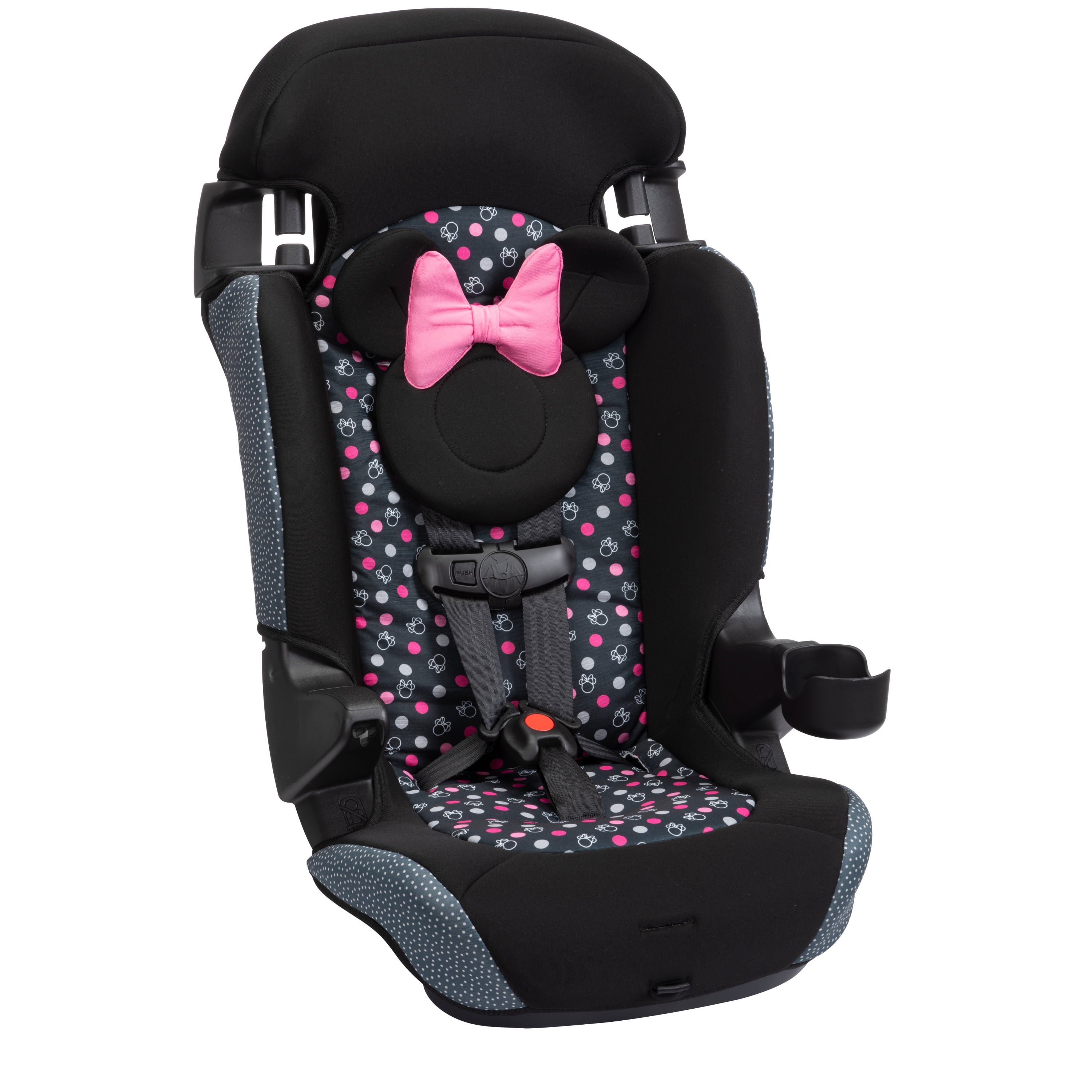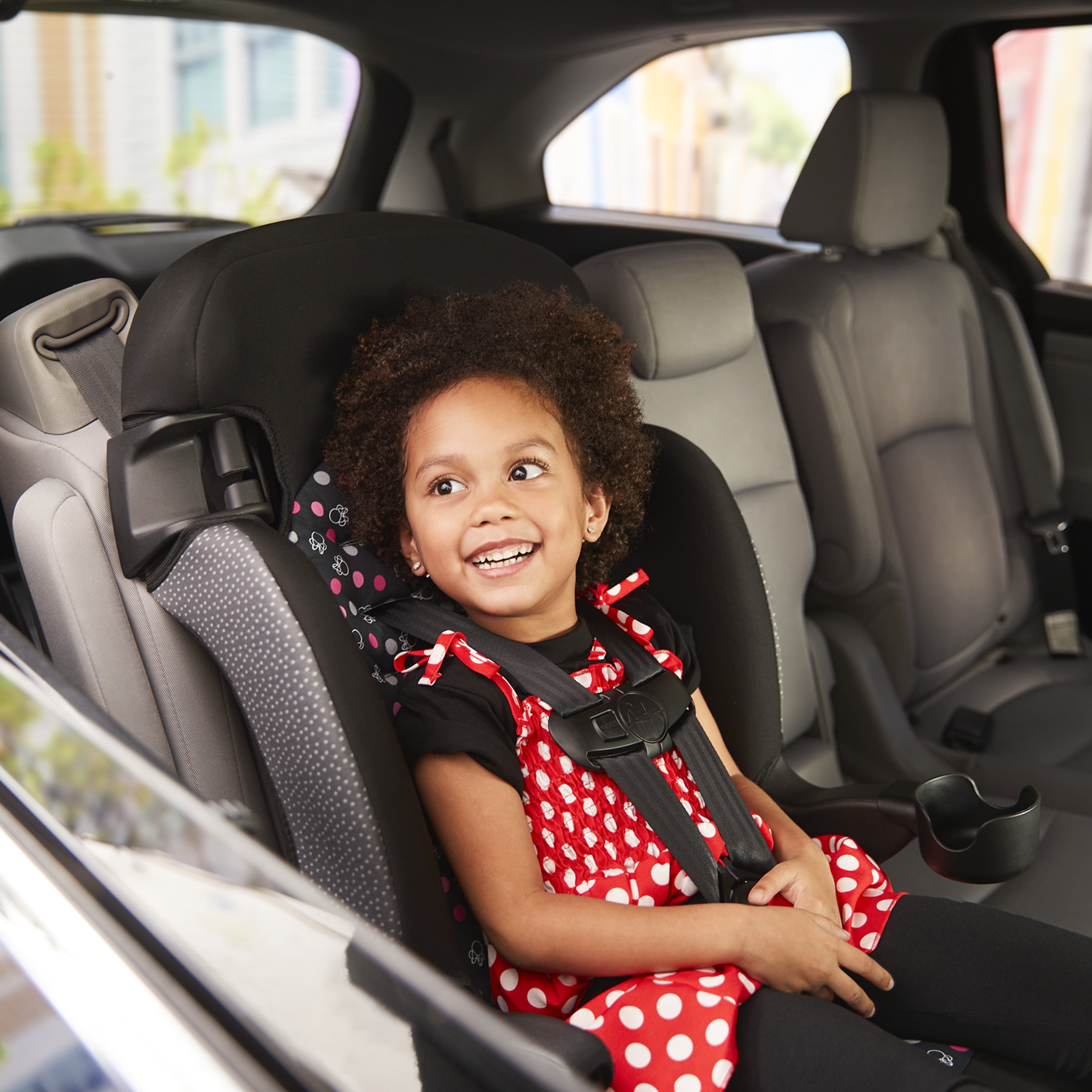 Designed for Disney fans–baby to big kid 2 in 1: forward-facing with harness 30–65 lbs. and 32″–49″ and at least 1 year old, belt-positioning booster 40–100 lbs. and 43″-52″ Designed to fit 3 across the back seat of most vehicles Lightweight and easy to move from car to car Dishwasher-safe cup holder detaches for use on either side of seat Machine-washable and dryer-safe fabrics Removable Disney mouse ears head pillow Exceeds federal safety standards IIHS Best Bet rating for use in booster mode